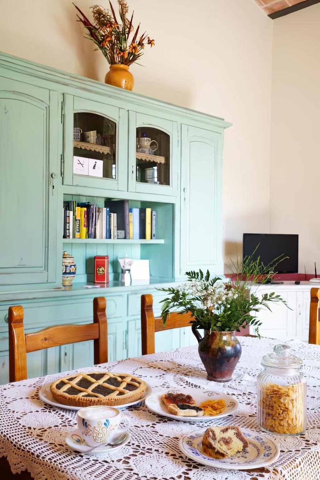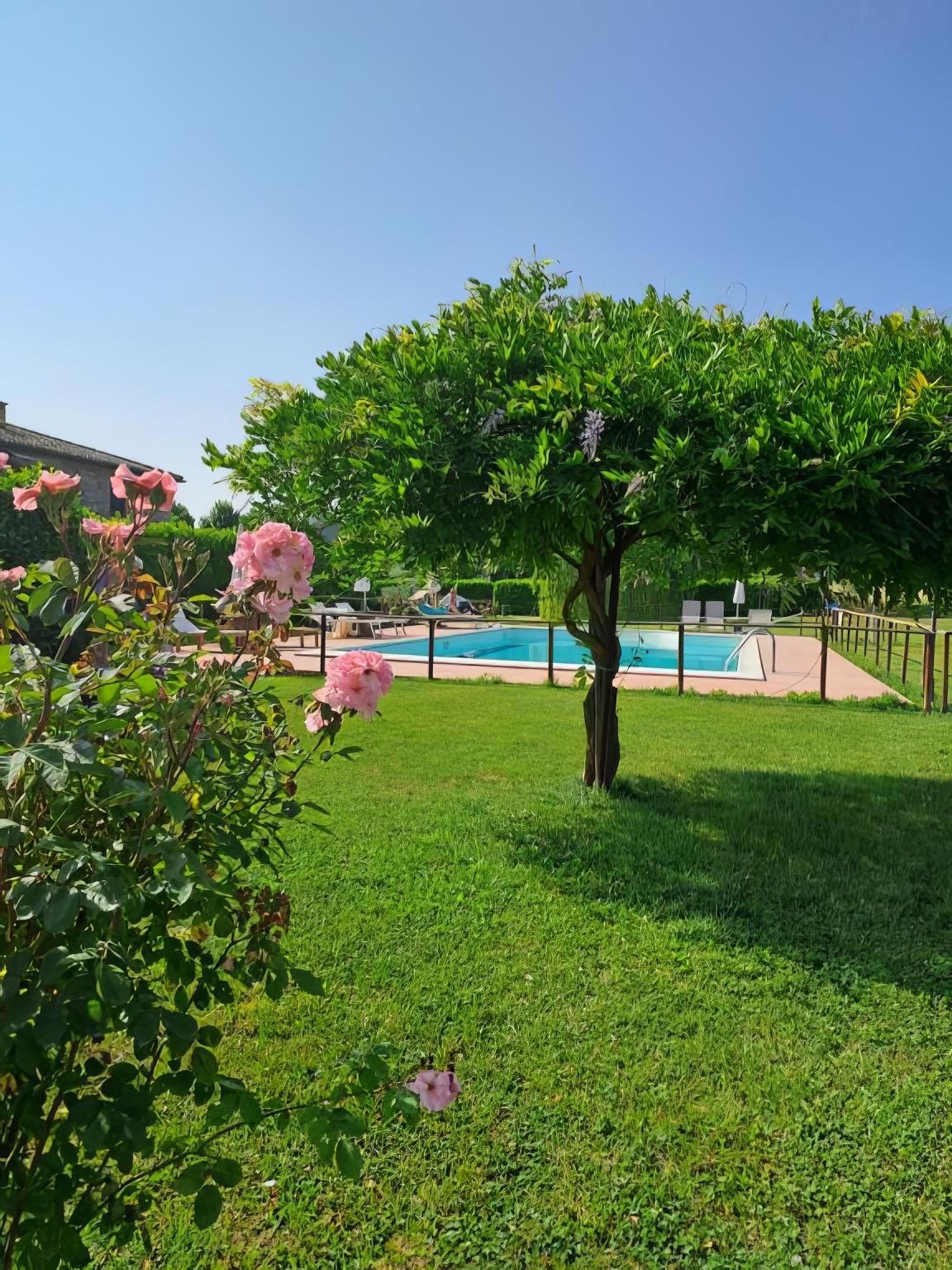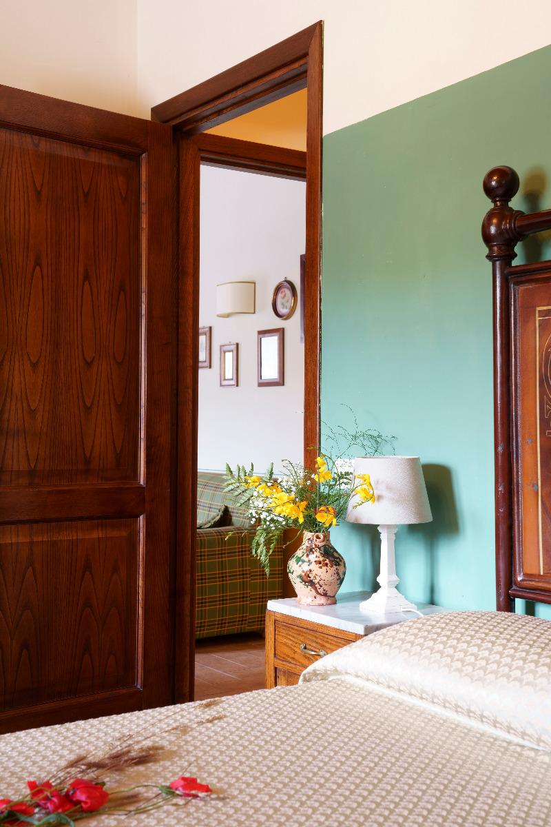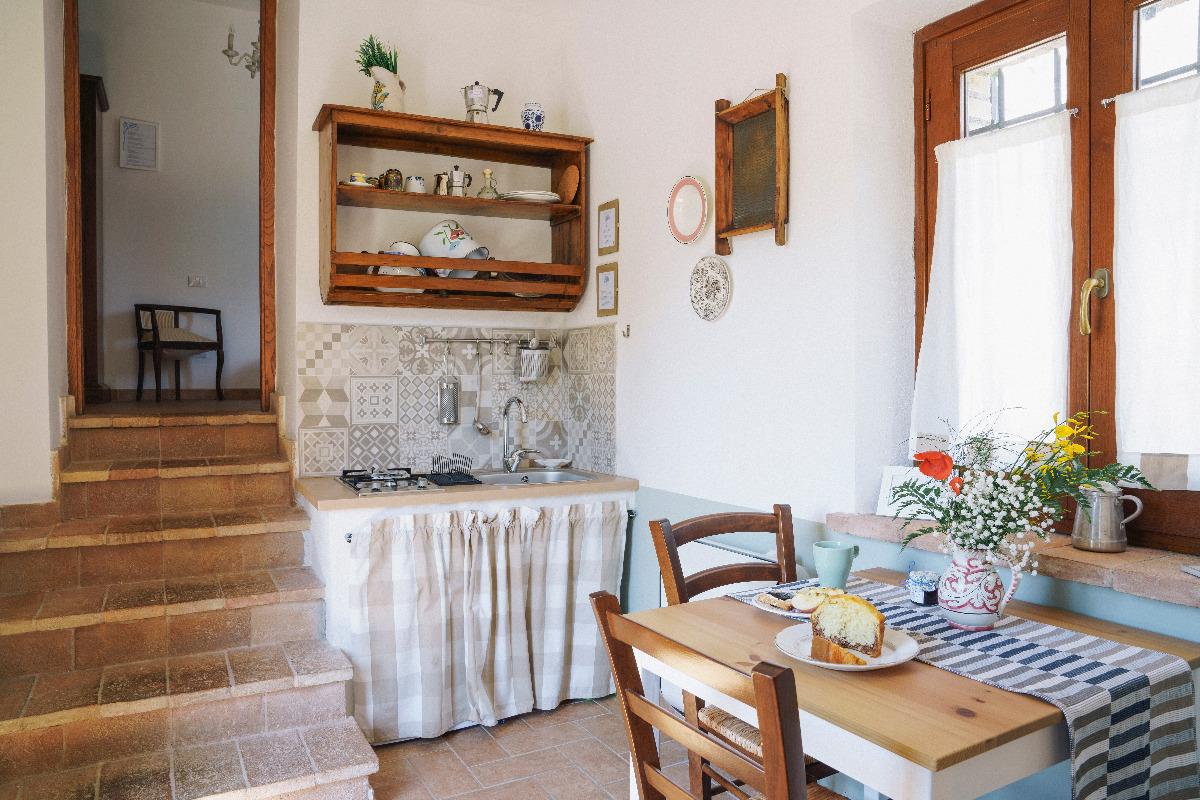 Run by Irene Urbani and her mother Vilma, the inn is designed for those seeking a tranquil vacation immersed in nature. The spacious and bright apartments feature kitchenettes, private bathrooms, and furnishings that blend simplicity with comfort. The Lavanda apartment, which includes two double bedrooms, two bathrooms, and a cozy living room with a fireplace, is ideal for families or small groups. The outdoor porch invites relaxation during the cooler hours of the day, while the panoramic swimming pool provides serene moments surrounded by greenery.