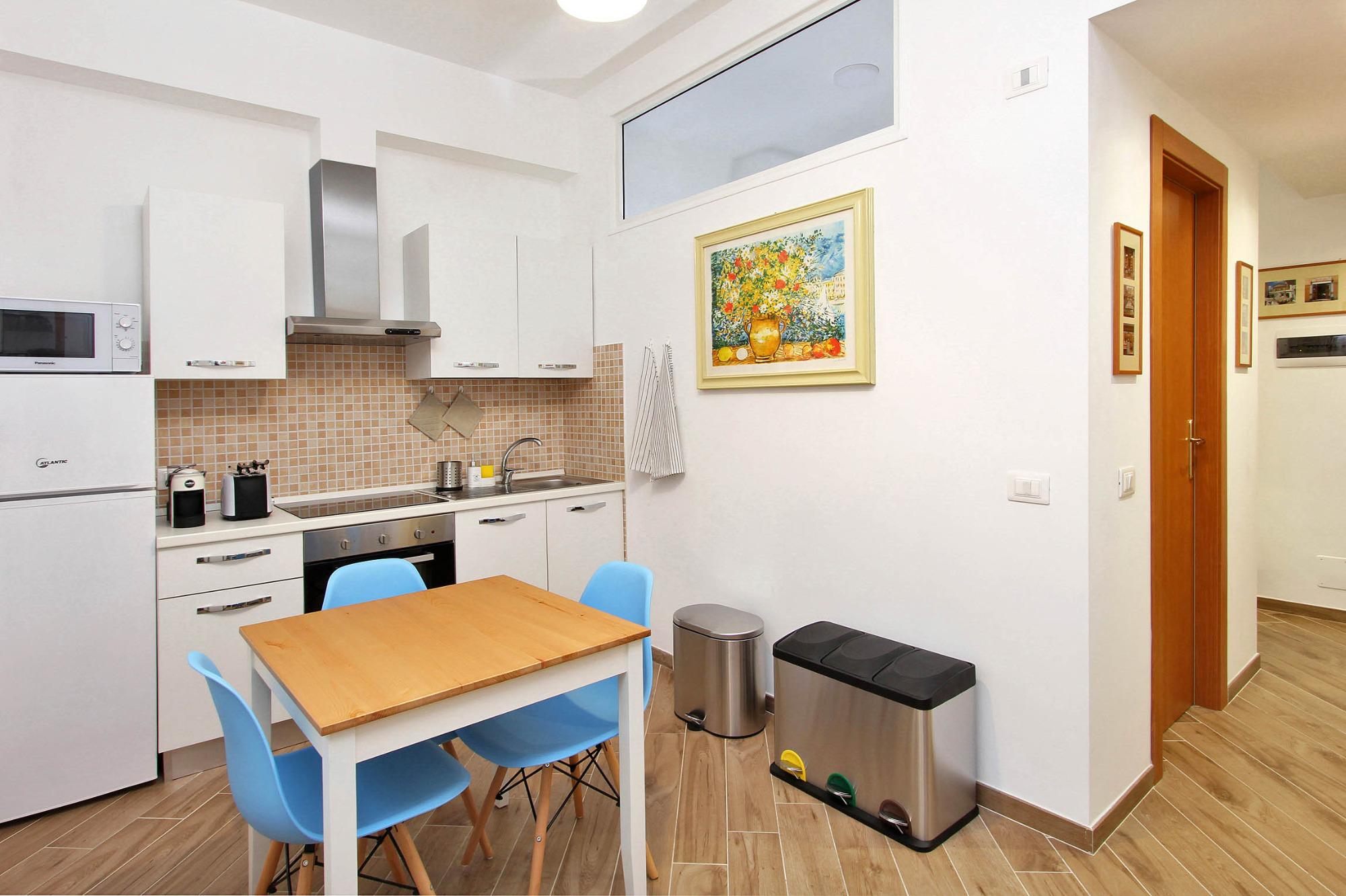 Cucina accessoriata, macchina caffé, bollitore, forno a microonde
