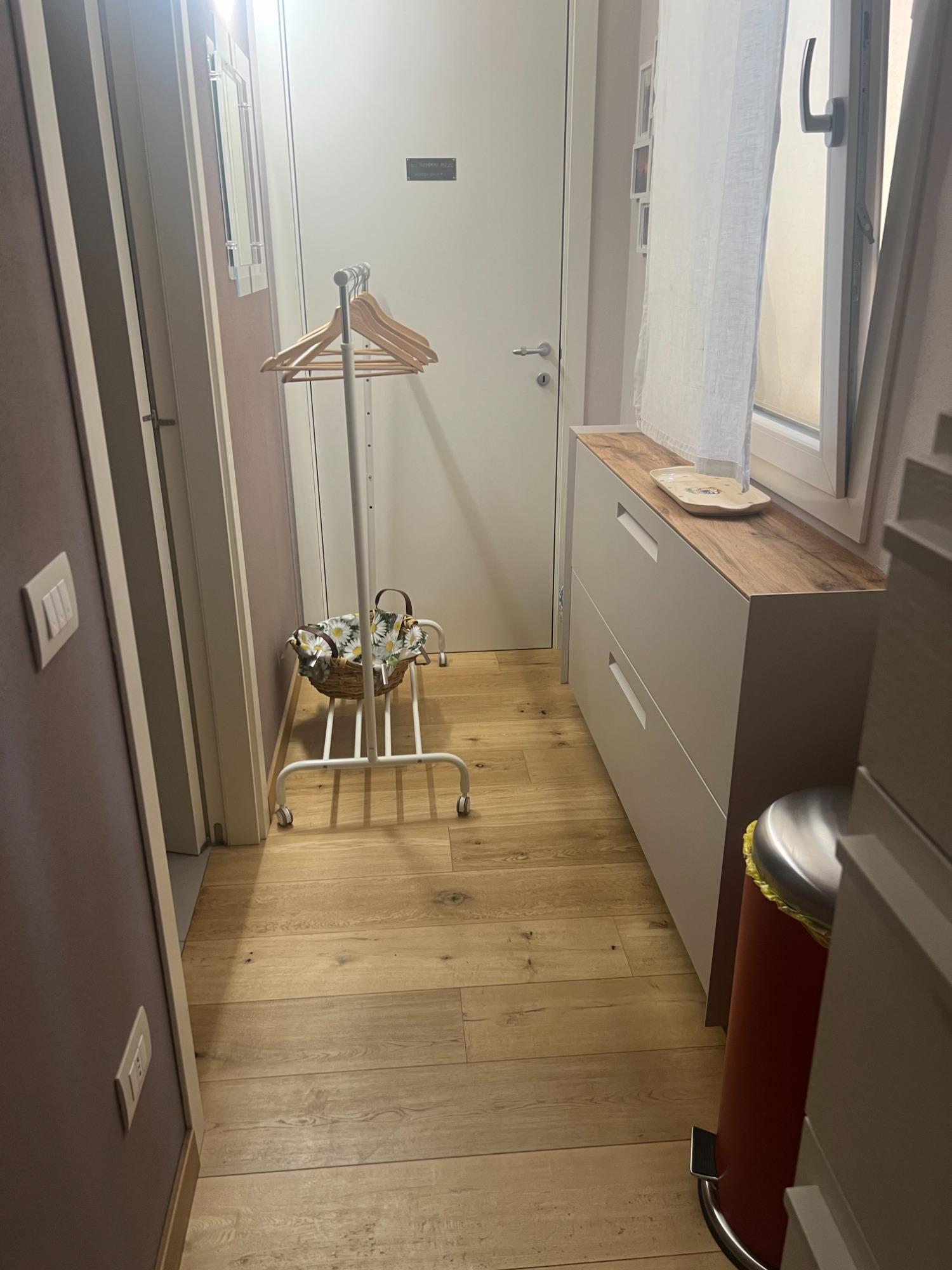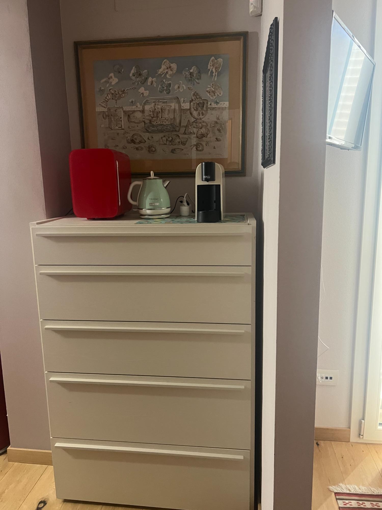 Cozy and small apartment located in a quiet area of Lugo, a short distance from the city center. The apartment is spread over two floors. On the ground floor, you will find a welcoming living room with a kitchenette and a comfortable double sofa bed. The kitchen is fully equipped with dishes, cutlery, microwave, refrigerator, kettle, and a coffee machine with pods. On the first floor, there is a double bedroom with access to a private bathroom, equipped with a wardrobe and a desk. The apartment is part of a lovely portion of a villa with a beautiful garden. It has an independent entrance and parking space for one car.