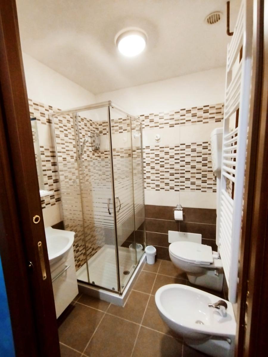 The room has a comfortable double bed and a third bed. Kitchenette and private bathroom. The following accessories are present: courtesy set, 32" flat screen TV, hairdryer, air conditioning, independent heating system, wifi connection and car park. Hot drinks are available to our guests. If necessary, a cot for newborns is available.