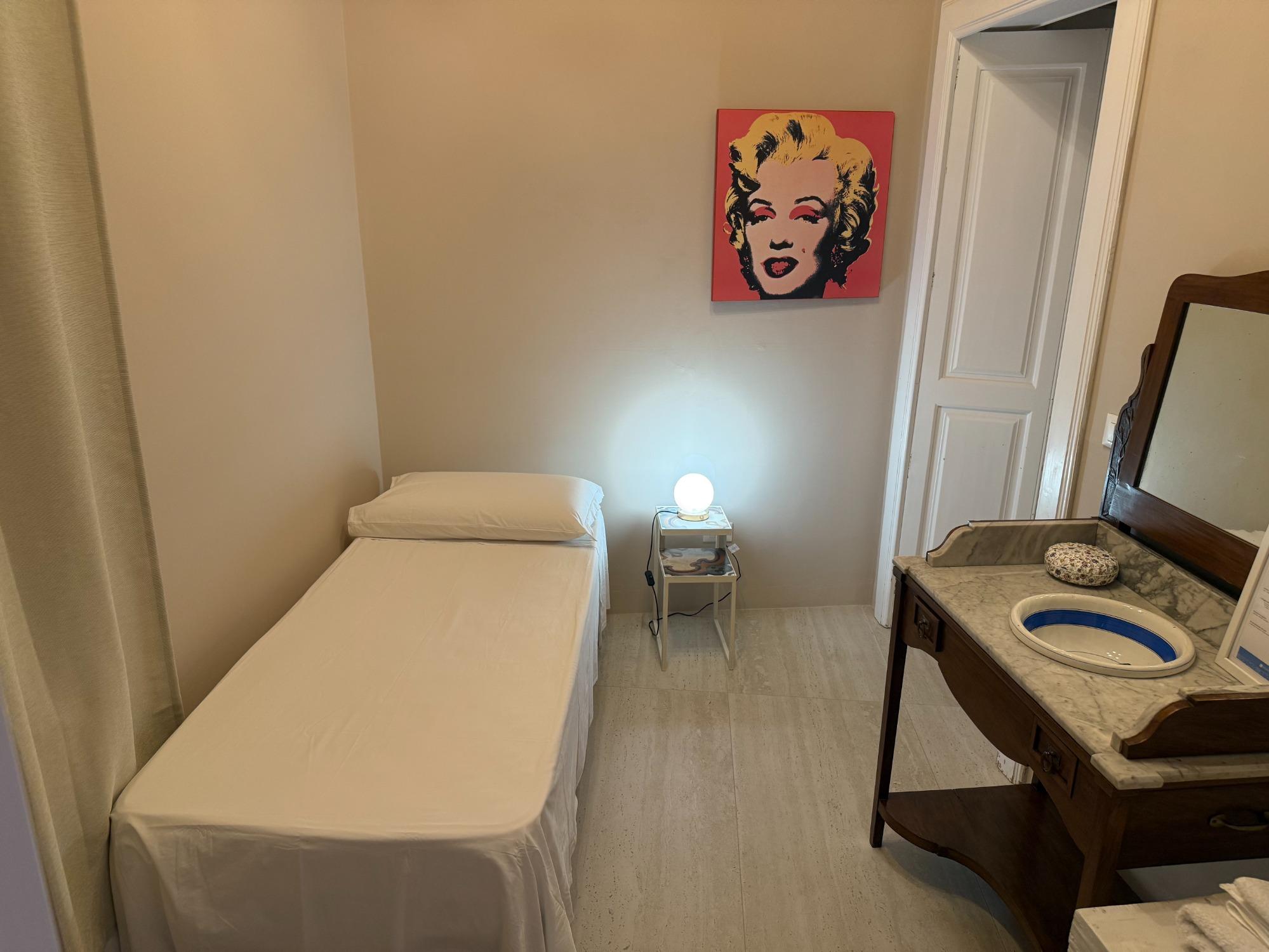 Das Zimmer im ersten Stock besteht aus einem Doppelzimmer, einem Einzelzimmer, zwei Badezimmern und einer privaten Terrasse.