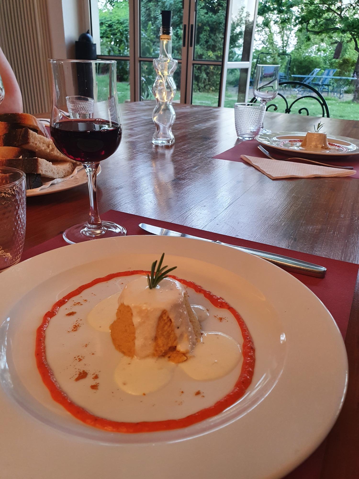 In the evening, upon reservation, guests can enjoy a homemade dinner featuring vegetables from the garden and local products. The menu, which changes daily, is based on seasonal ingredients and is served in an intimate setting, either outdoors with soft lighting or in the indoor dining area. It’s a genuine experience that reflects the essence of the home and the surrounding land.
