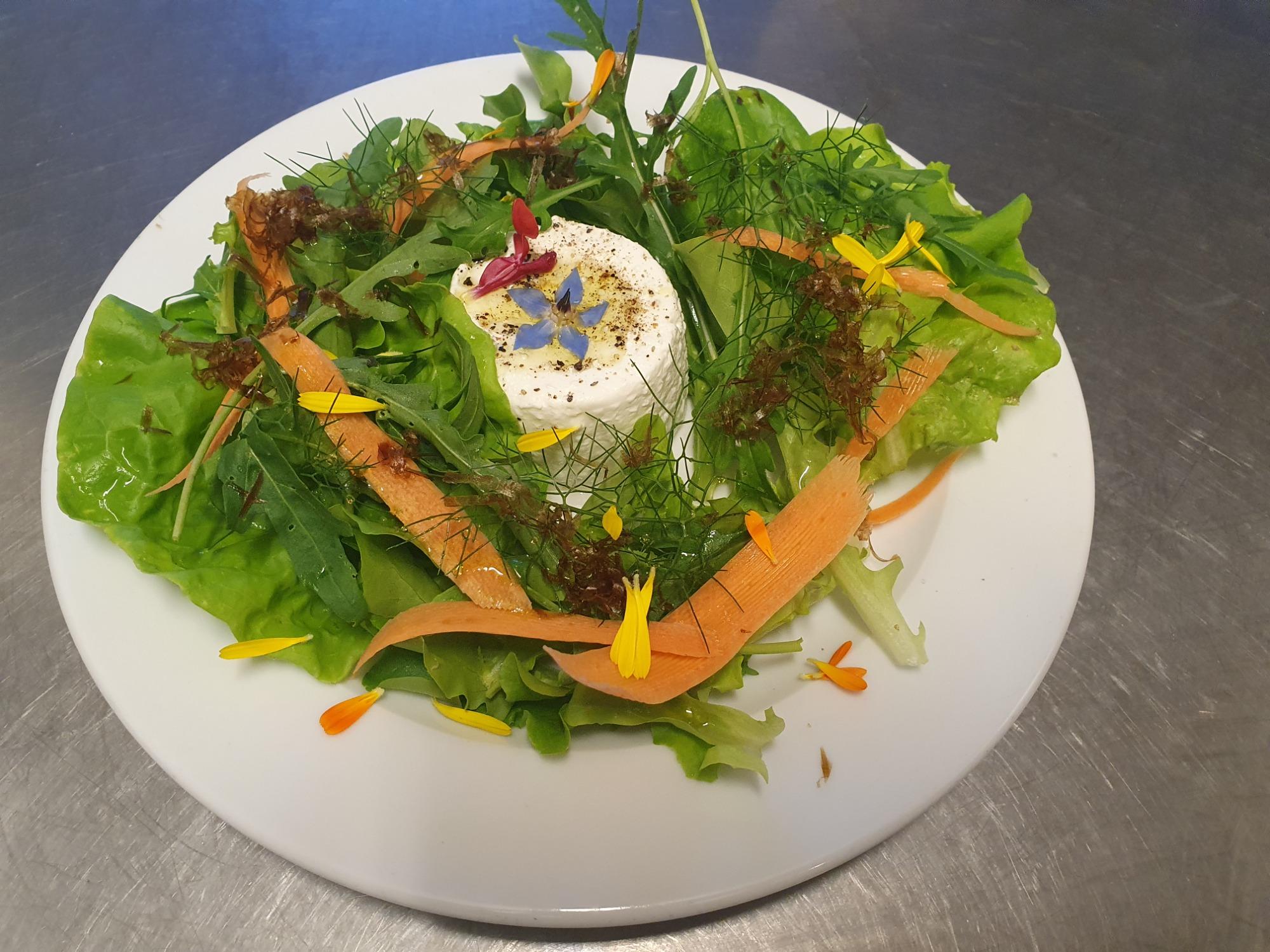 Every morning, a wholesome breakfast is offered, made with fresh, local ingredients. Sourdough bread, homemade jams, honey from the beehives, yogurt, carefully selected cheeses, and cured meats are served alongside coffee, tea, and seasonal fruit. Depending on the weather, you can enjoy it outdoors or in front of the fireplace in the indoor lounge.