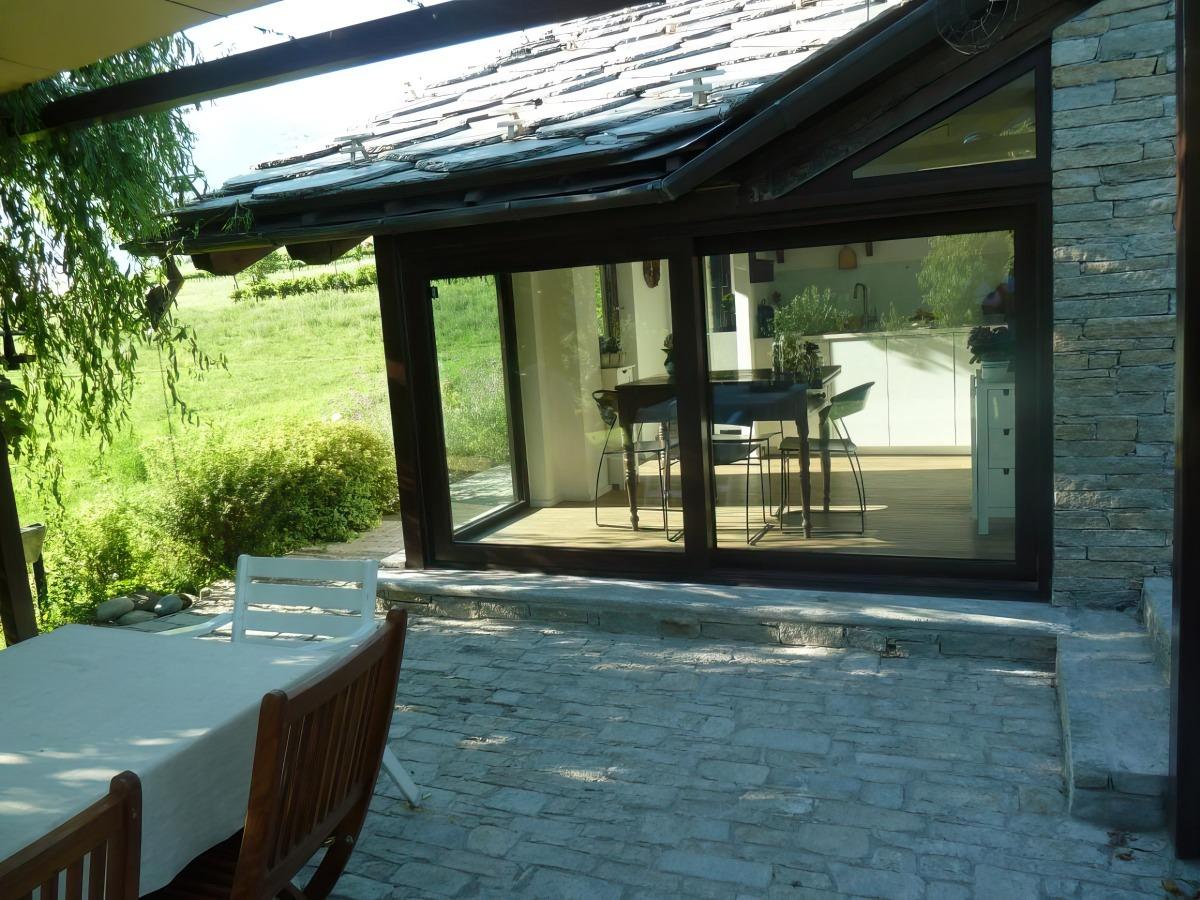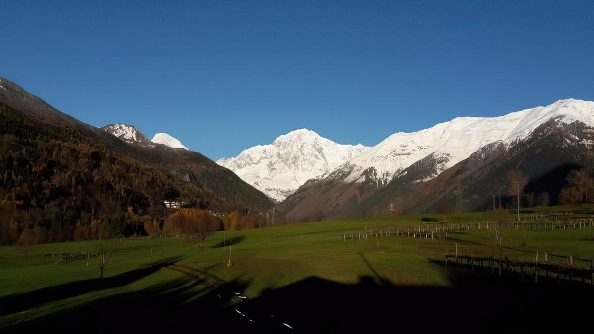 Il vous suffit d'ouvrir la porte-fenêtre et devant vos yeux s'étendent de magnifiques prairies fleuries et la vue majestueuse du Mont Blanc. Notre jardin est à votre disposition et vous pourrez déguster un délicieux petit-déjeuner sous le porche pendant l'été, ou au cœur de notre chaleureuse maison familiale pendant l'hiver.