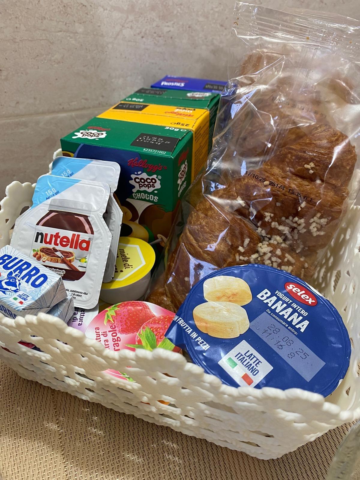 La colazione a La Piccola Dimora è pensata per offrire agli ospiti una partenza dolce e rilassata. Ogni mattina viene allestito un buffet con una selezione di prodotti confezionati, ideali per chi desidera una soluzione pratica e sicura. A disposizione c’è una macchina per il caffè e un bollitore per preparare tisane e tè, sempre disponibili per una pausa calda in qualsiasi momento della giornata.