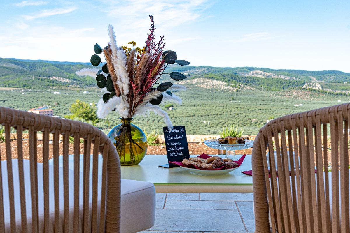 Our rooms with views of the olive groves offer a unique and unforgettable experience, immersing you in the natural beauty of the Gargano National Park, especially at sunset. From the windows of the rooms, you can admire the expanse of centuries-old olive trees that stretch to the horizon, in a breathtaking landscape that will make you feel in harmony with nature.