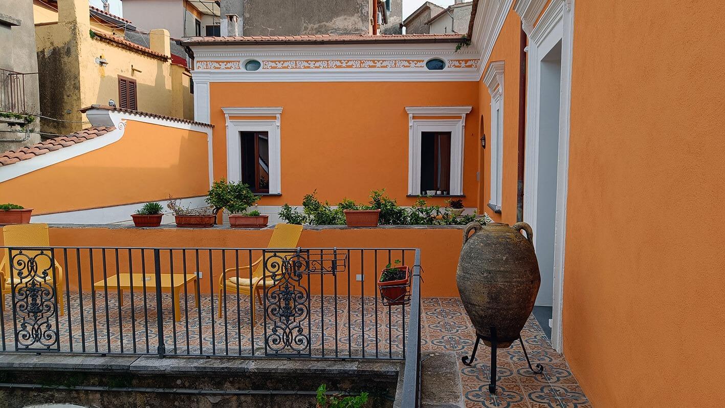 In the heart of the charming village of Camerota, the Residence of the Baron provides a stay that blends elegance with authenticity. Housed in a historic building featuring a yellow-ochre Liberty-style façade, adorned with neoclassical details and Art Nouveau decorations, this establishment welcomes guests into a refined and timeless atmosphere.