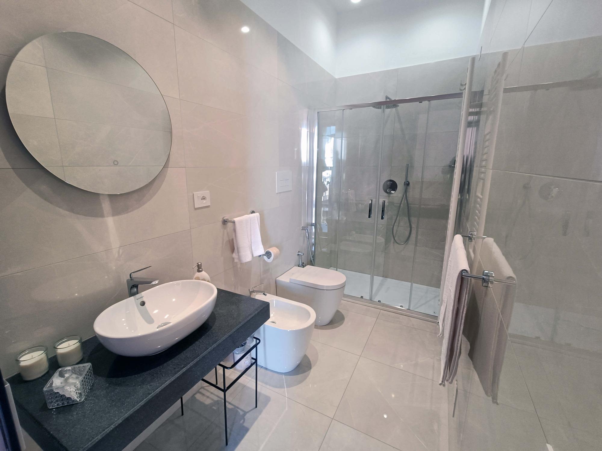 Elegant and welcoming, the Standard Room of our B&B in Camerota seamlessly combines historic charm with modern comfort. Located in a heritage building, it features high ceilings and marble floors that reflect the natural light from the inner courtyard, creating a warm and relaxing atmosphere. The refined furnishings blend classic elements with contemporary details, while the spacious double bed is designed to ensure perfect rest. The carefully designed bathroom includes a chromotherapy shower, ideal for a moment of pure relaxation. For a stress-free stay, we offer parking passes for Marina di Camerota, perfect for reaching Lentiscelle Beach or strolling along the seafront and through the historic fishing village. Additionally, our guests can take advantage of complimentary private transfers to and from the train stations (upon prior request) and free public shuttle subscriptions, making it easy to explore the entire municipality of Camerota.