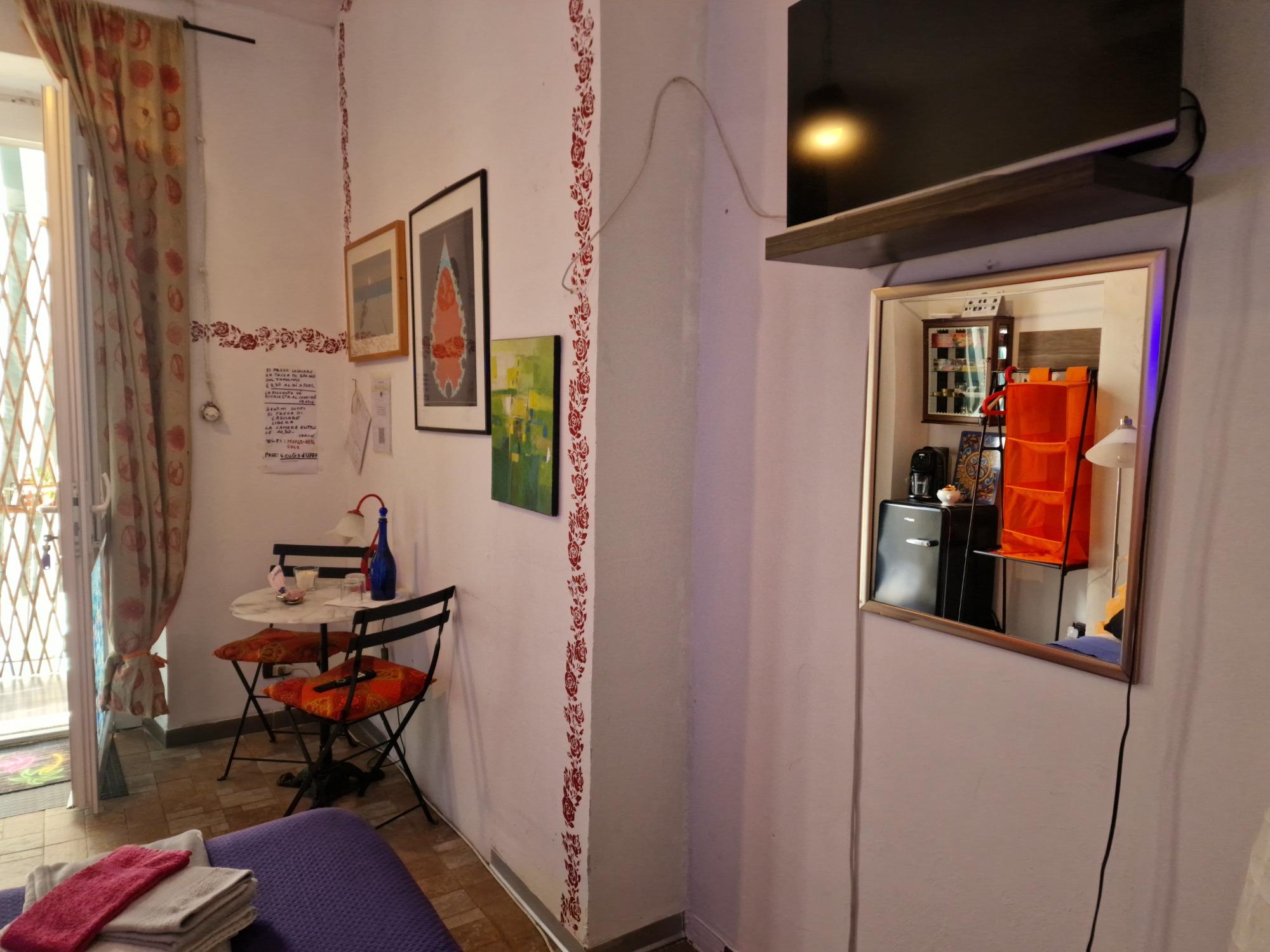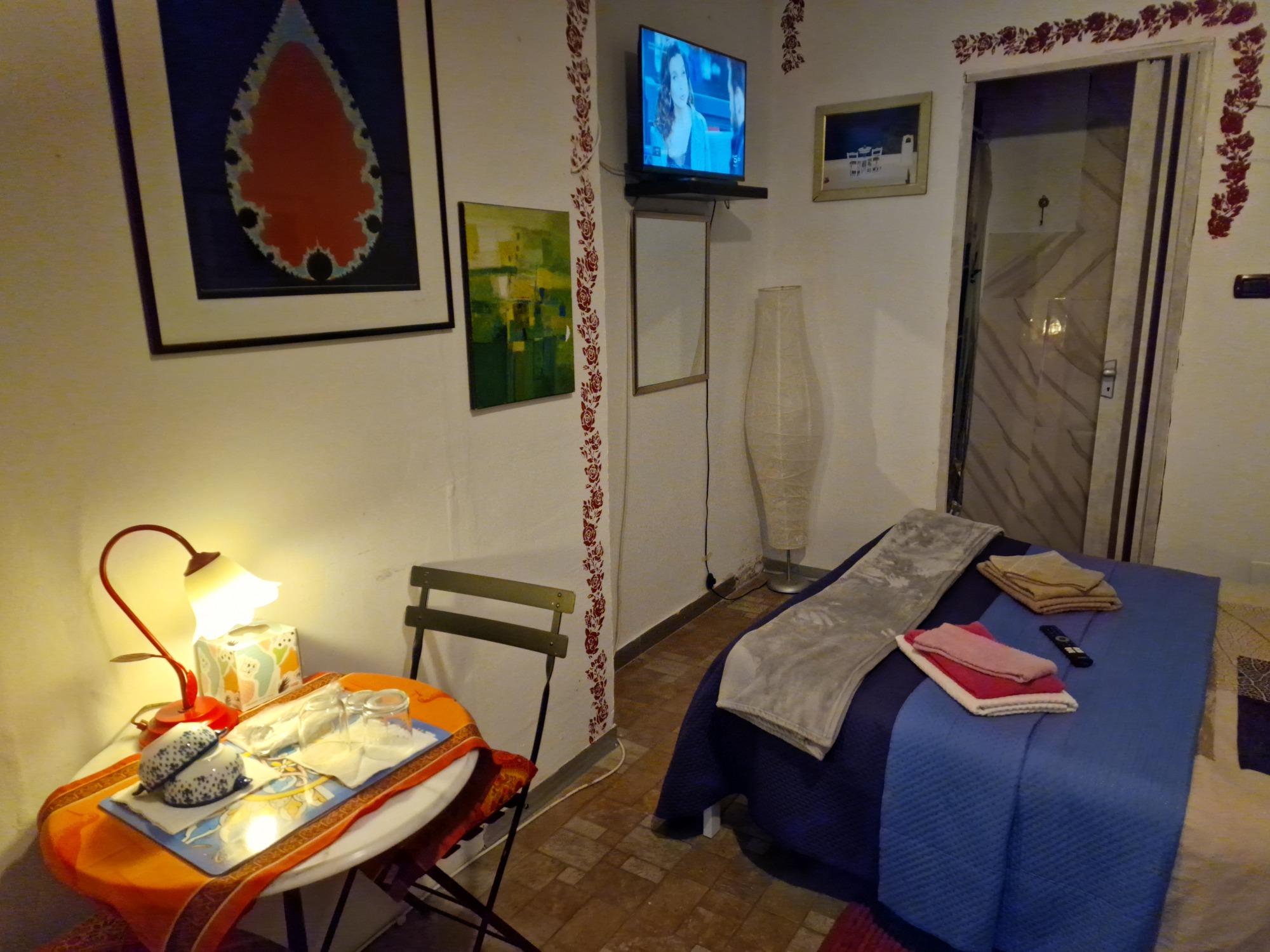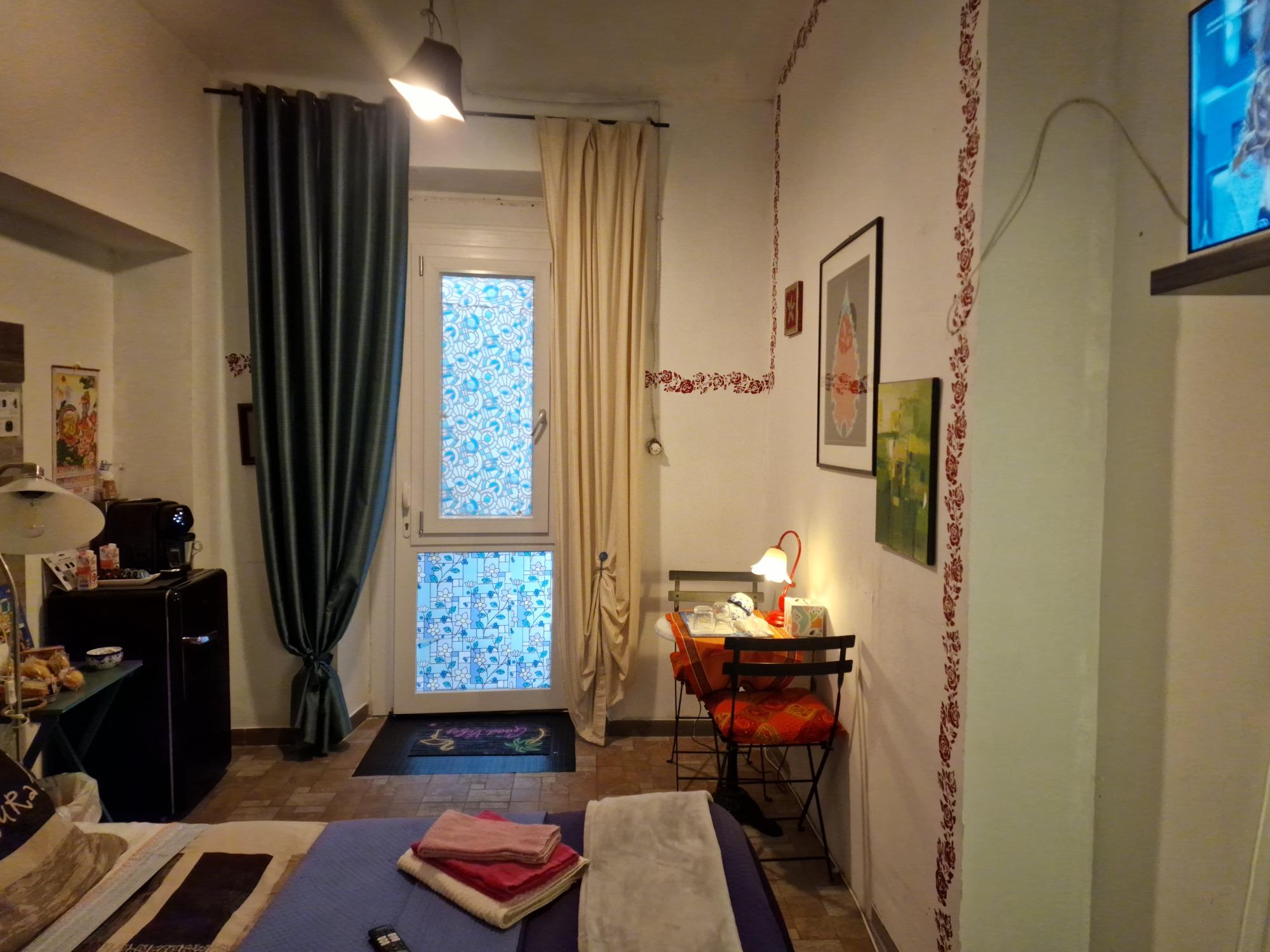 Beautiful and welcoming room, equipped with a separate entrance. The only thing you share is the main access to the balcony with the property. You will find a comfortable double bed for two people. The bathroom has an en-suite shower and you will also find a coffee machine. Upon request, we can provide you with a portable induction stove.