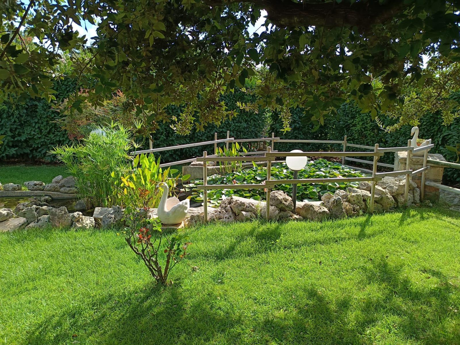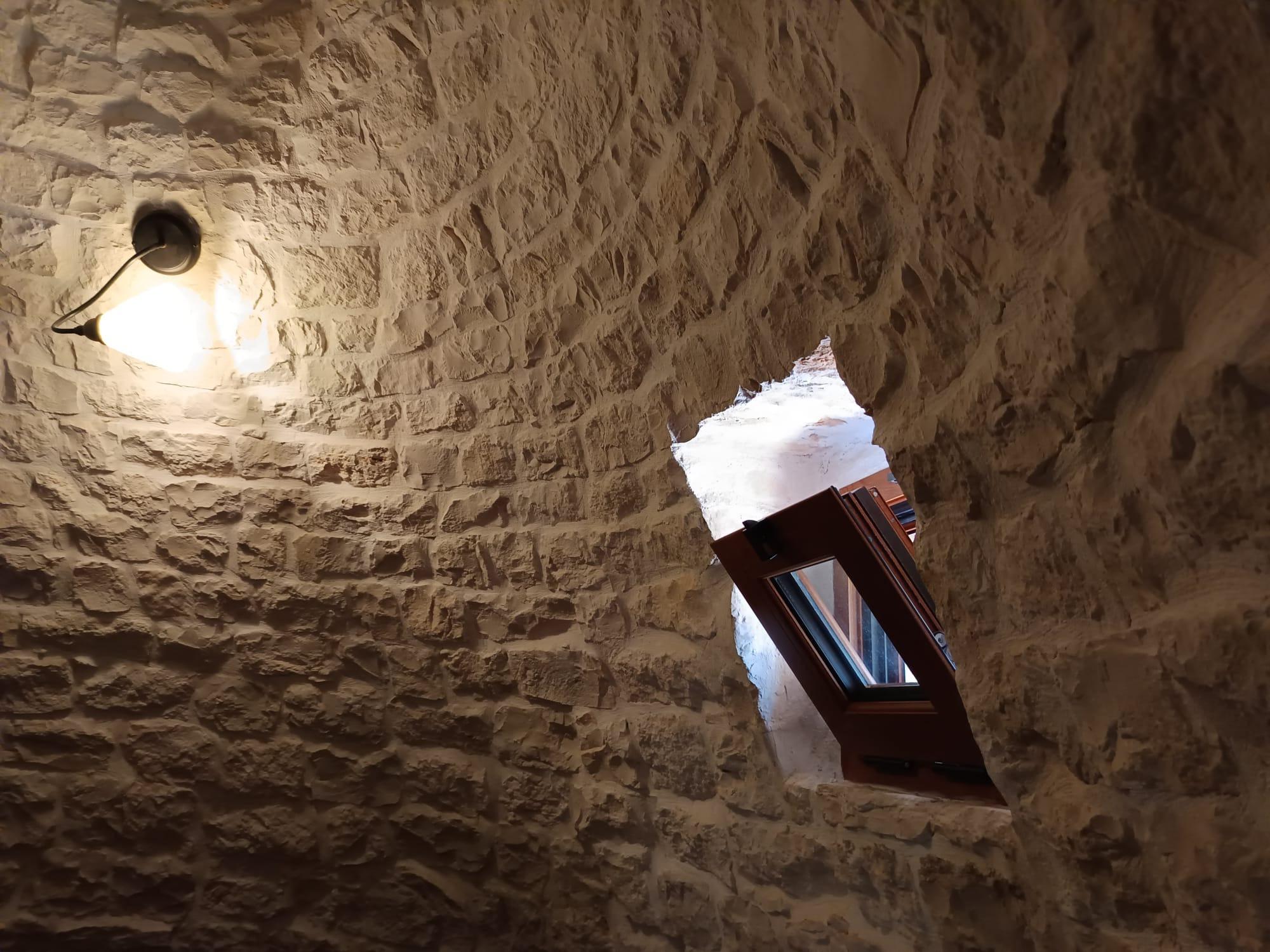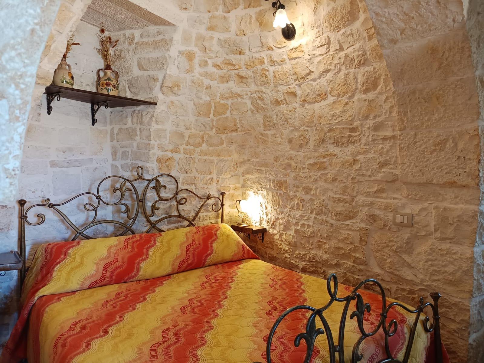 It has a double bed in the loft of the "trulli" and a comfortable sofa bed for two children.