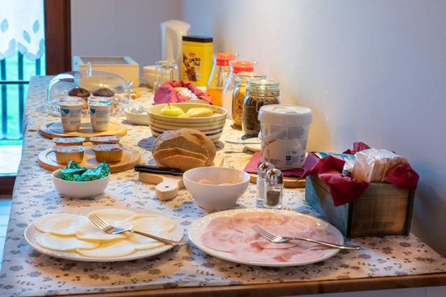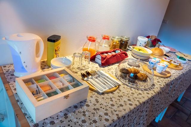 Upon request, we offer gluten-free products and lactose-free beverages. From May to September, breakfast is served buffet-style with staff present, while from October to April, breakfast is ready in the room with a good variety of products (cookies, rusks, Nutella, jam, pastries, preserves/fruit, butter, yogurt), fruit juices, and hot beverages (tea, coffee, herbal teas).