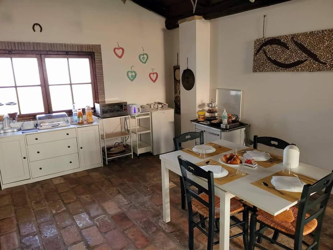 En la mañana, podrás disfrutar de un abundante desayuno buffet dulce y salado en el porche con vistas al jardín. Pasteles, galletas, cruasanes, mermelada, nutella, yogur, sándwiches, bocadillos, embutidos, jugos de frutas y pan. Todas las delicias que se sirven para el desayuno son preparadas en casa con productos tradicionales de kilómetro cero.