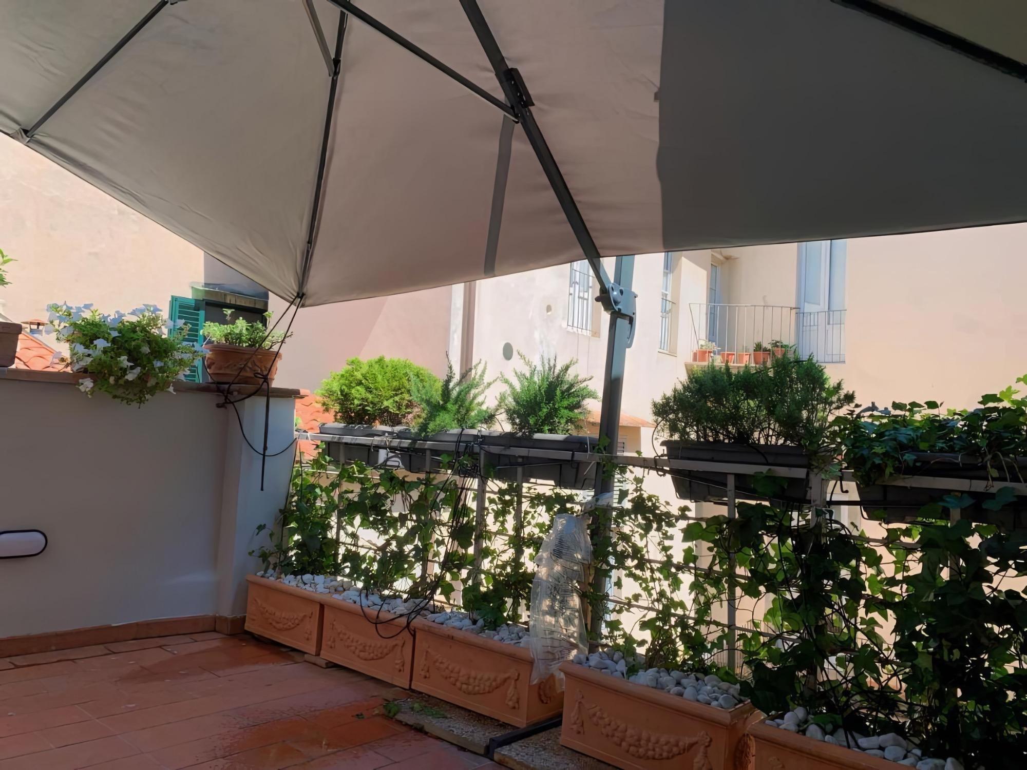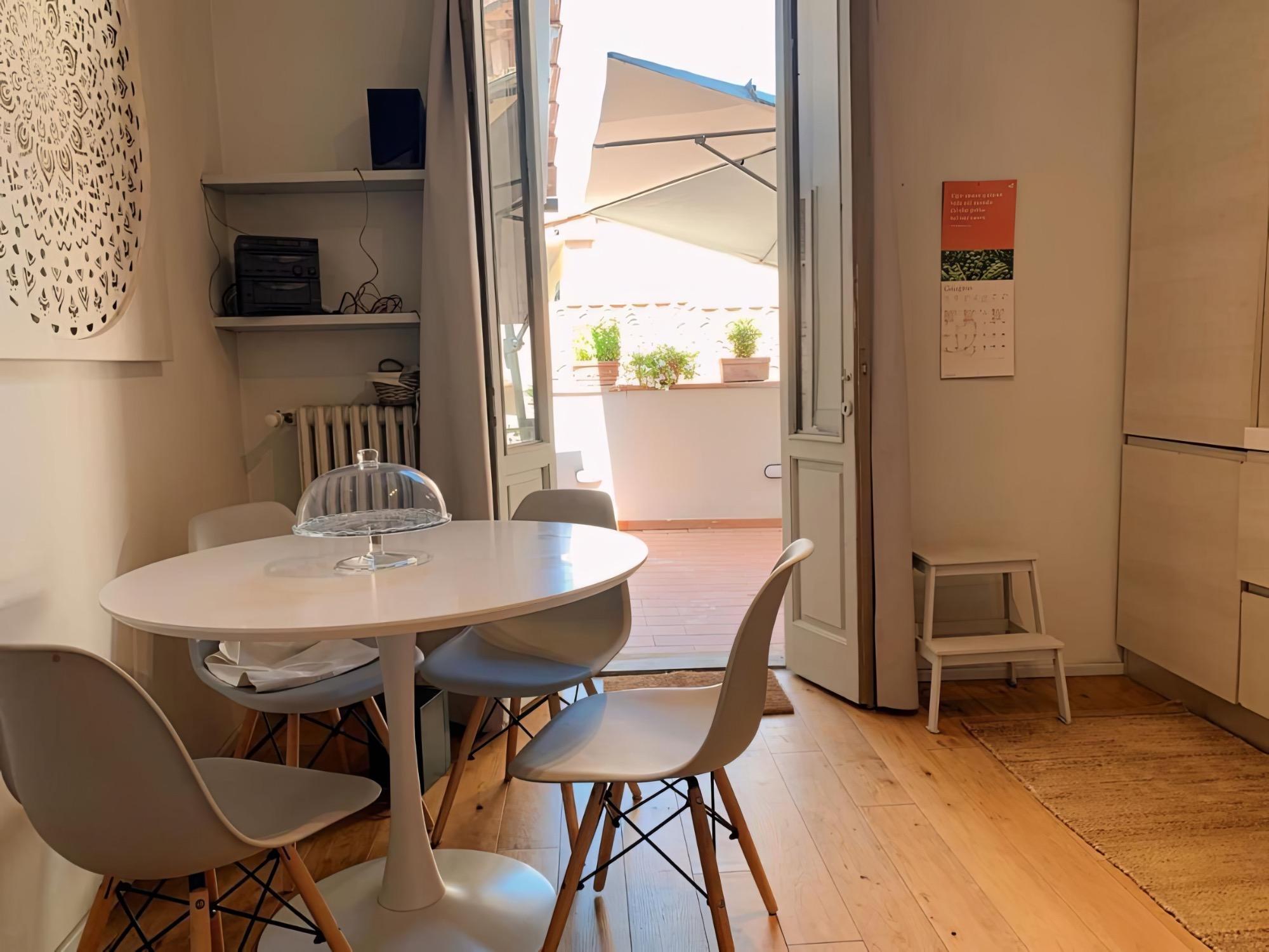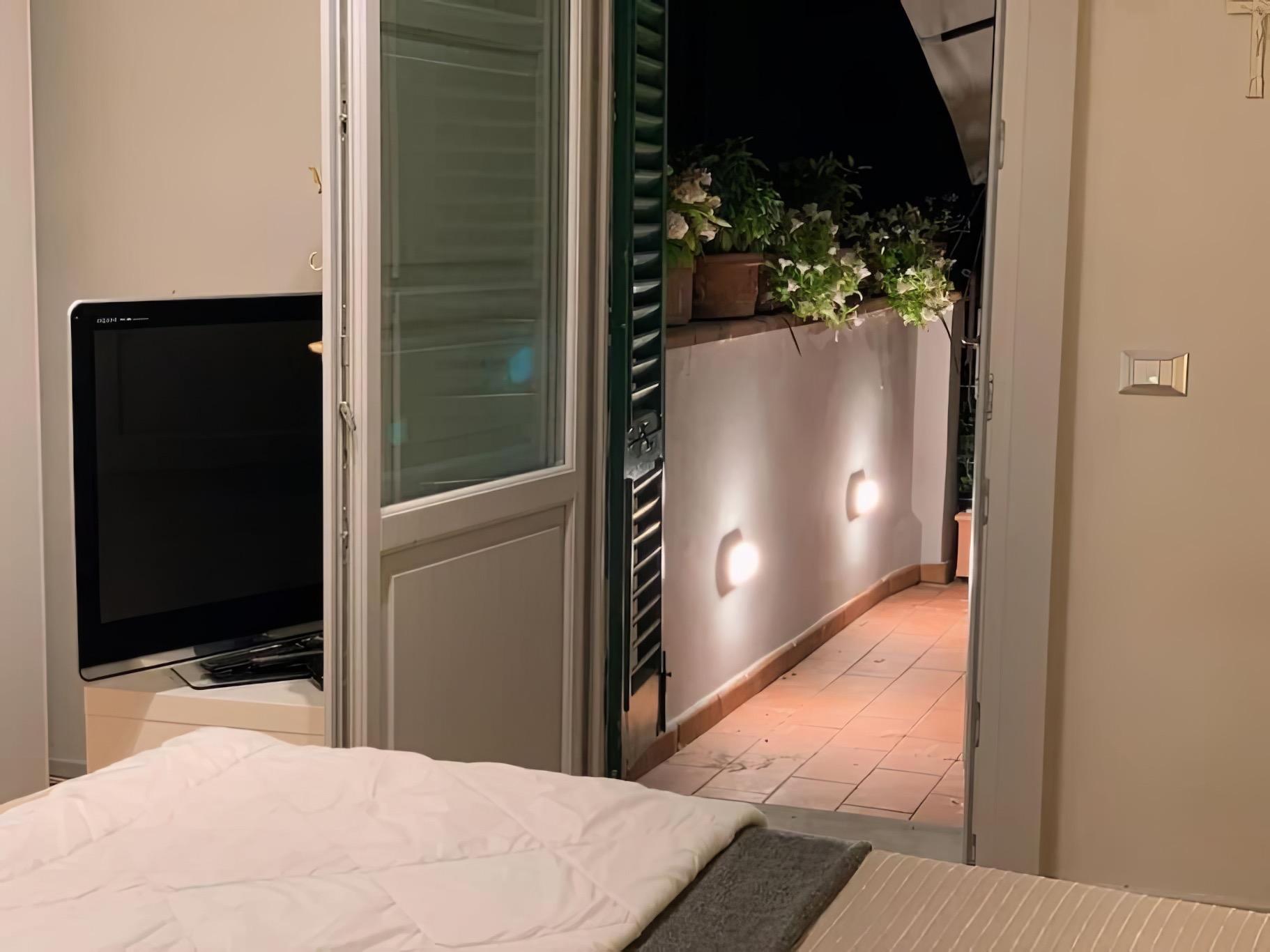 La terrazza è uno degli spazi più apprezzati della casa: arredata con lettino, stereo e un tavolo per colazione, pranzo o cena all’aperto, offre un angolo riservato e rilassante con vista sui tetti del centro storico.