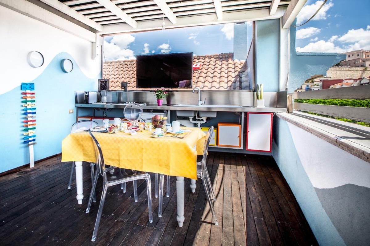 "La Terrazza sul Porto" is located in a historic building with an elevator and spans two levels. Specifically, the third floor is dedicated to the rooms, bathrooms, and a freely accessible living area. On the attic floor, there is a Wi-Fi internet station and a large panoramic terrace, entirely available to guests. A special little corner, with a view of the historic neighborhood of Castello and the Port of Cagliari, ideal for relaxing and soaking up some sun.