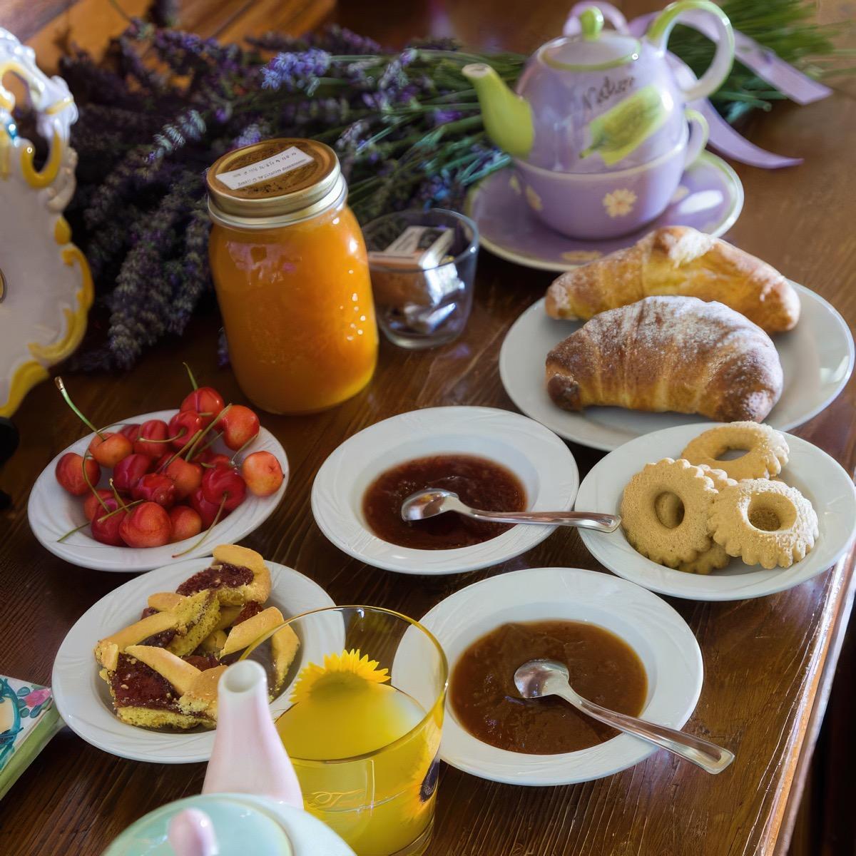 Breakfast is deliciously served in the bright kitchen or in the delightful garden, where you can relax in the shade of broom and fruit trees. Our breakfast is always highly appreciated and abundant, featuring genuine local specialties. You will find pastries, cookies, and honey from the Parco del Conero, as well as tasty homemade jams made with high-quality fruits, all accompanied by fresh bread. Additionally, you can savor freshly picked fruits such as medlars, cherries, blackberries, apricots, plums, and persimmons, which are naturally produced and ripened according to the season.
