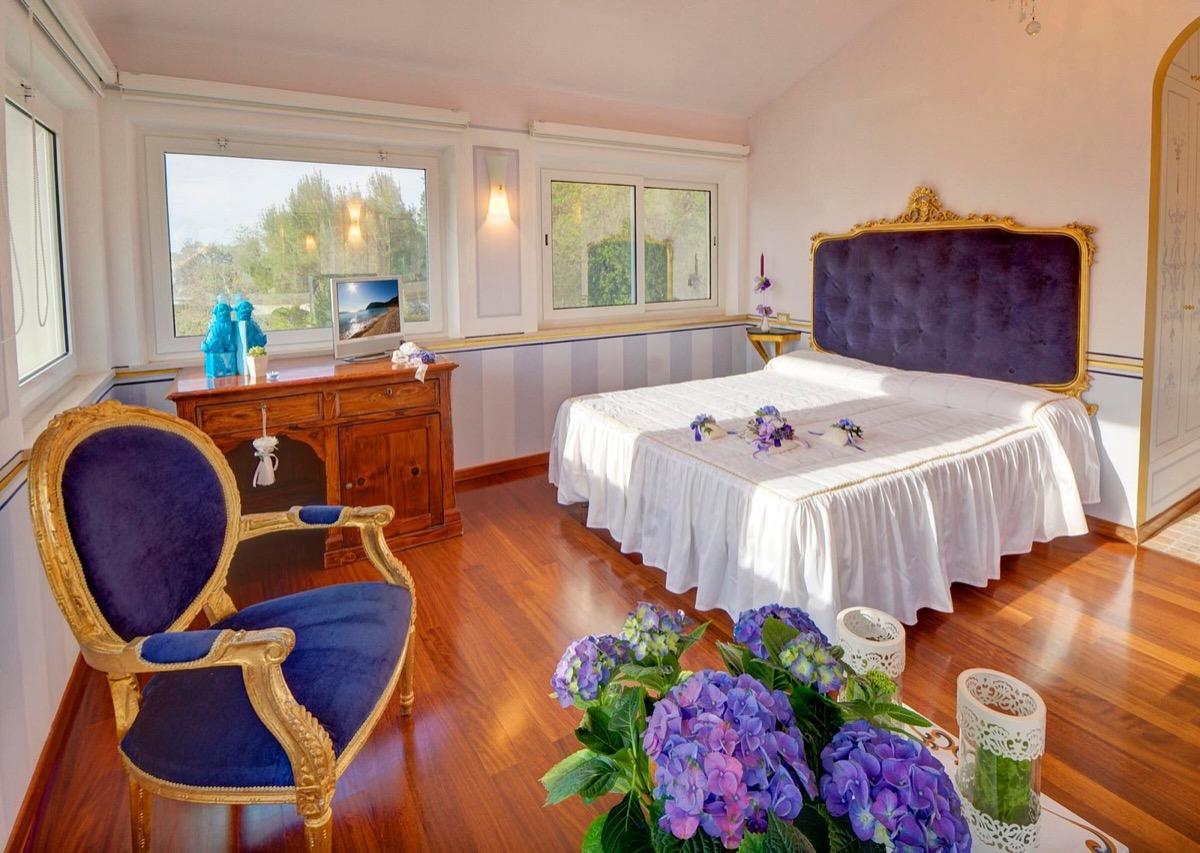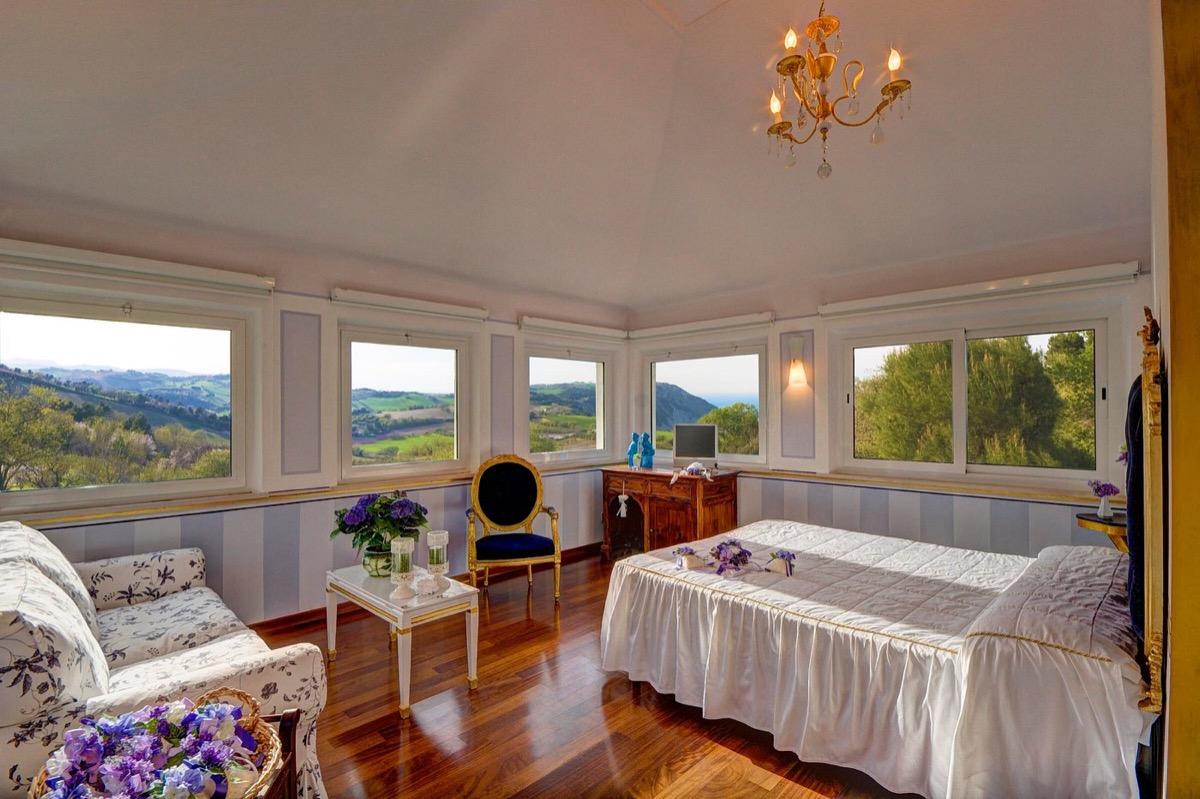 On the upper floor of the Tower, you will find a 25 sqm suite with a private bathroom, parquet flooring, and luxury finishes, which represents the flagship of the property. From the large windows, you can admire the picturesque landscape of Conero, with the beautiful Mezzavalle bay. This elegant suite also features a refrigerator, air conditioning, LCD TV, and many other amenities for a pleasant and relaxing stay.