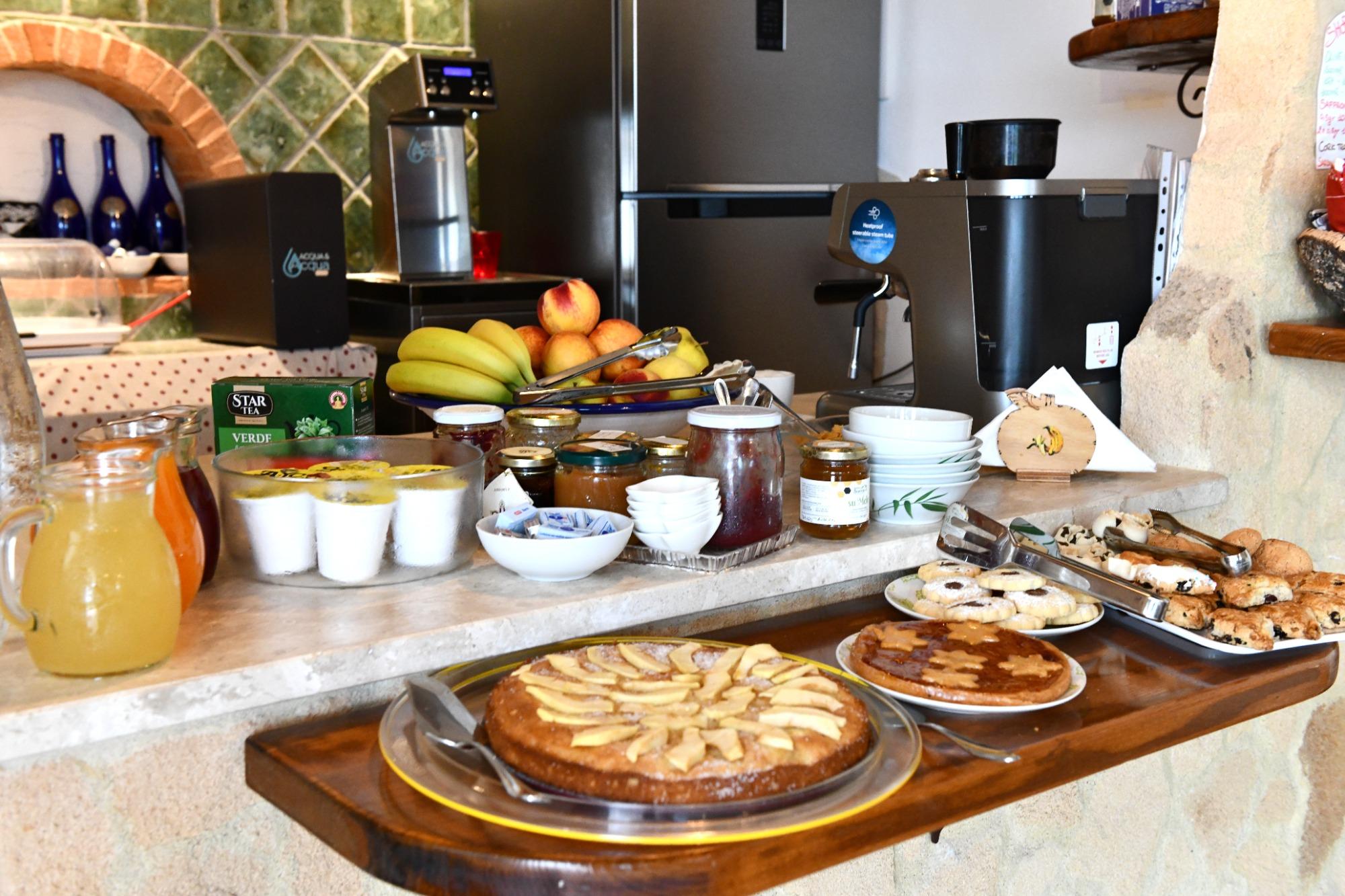 Every morning, a buffet breakfast is offered featuring fresh and authentic products sourced directly from the garden and the farm animals, providing a wide selection of both sweet and savory options.
