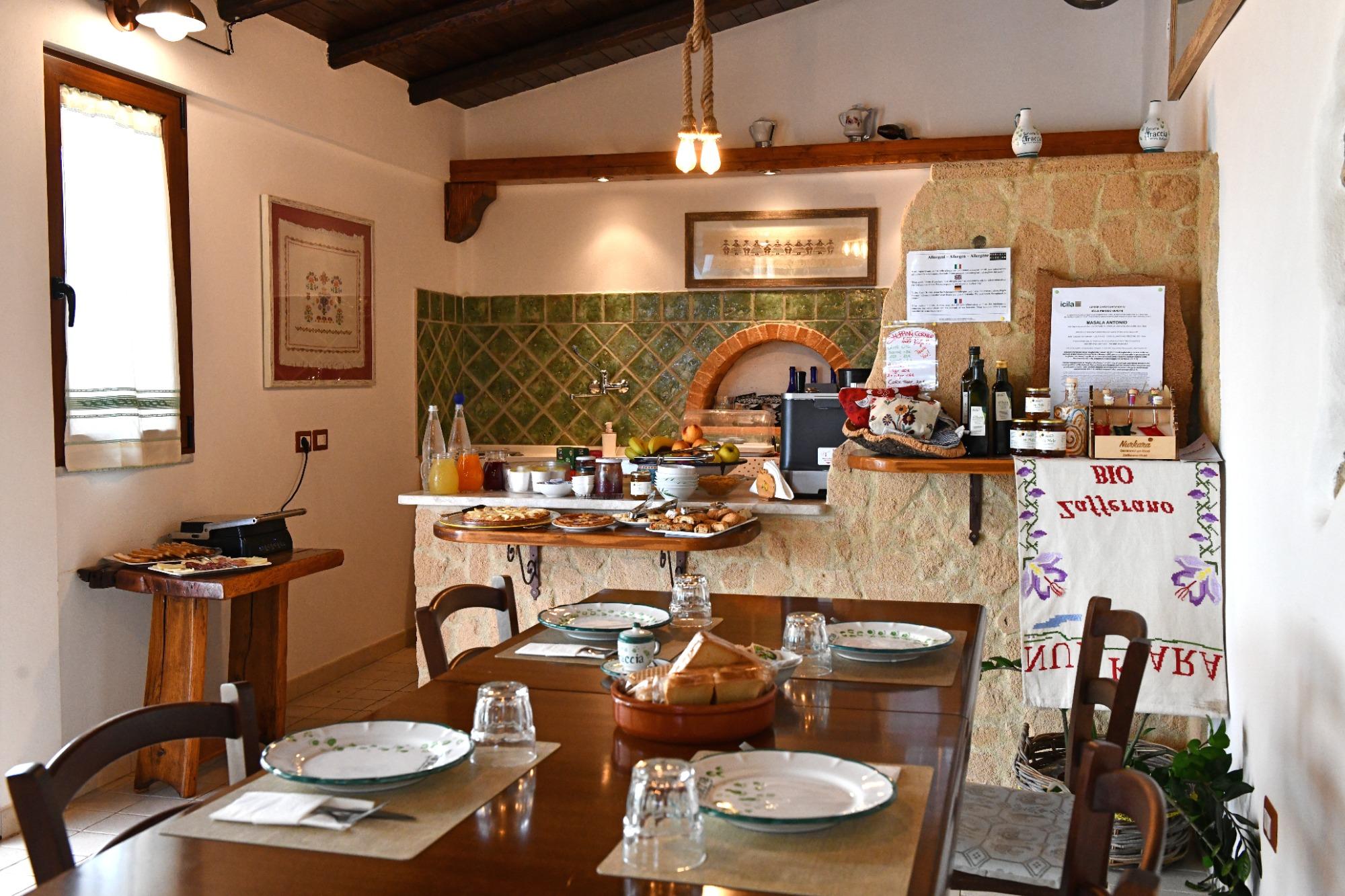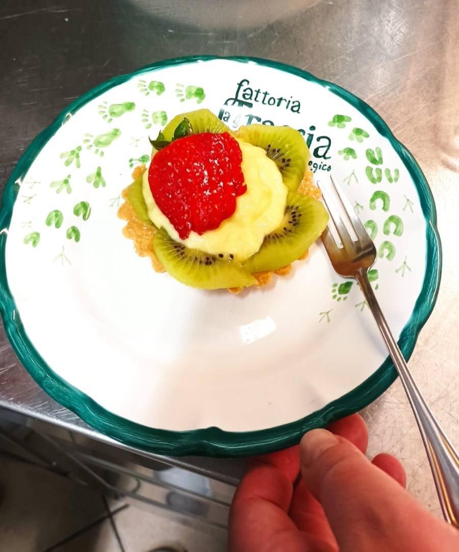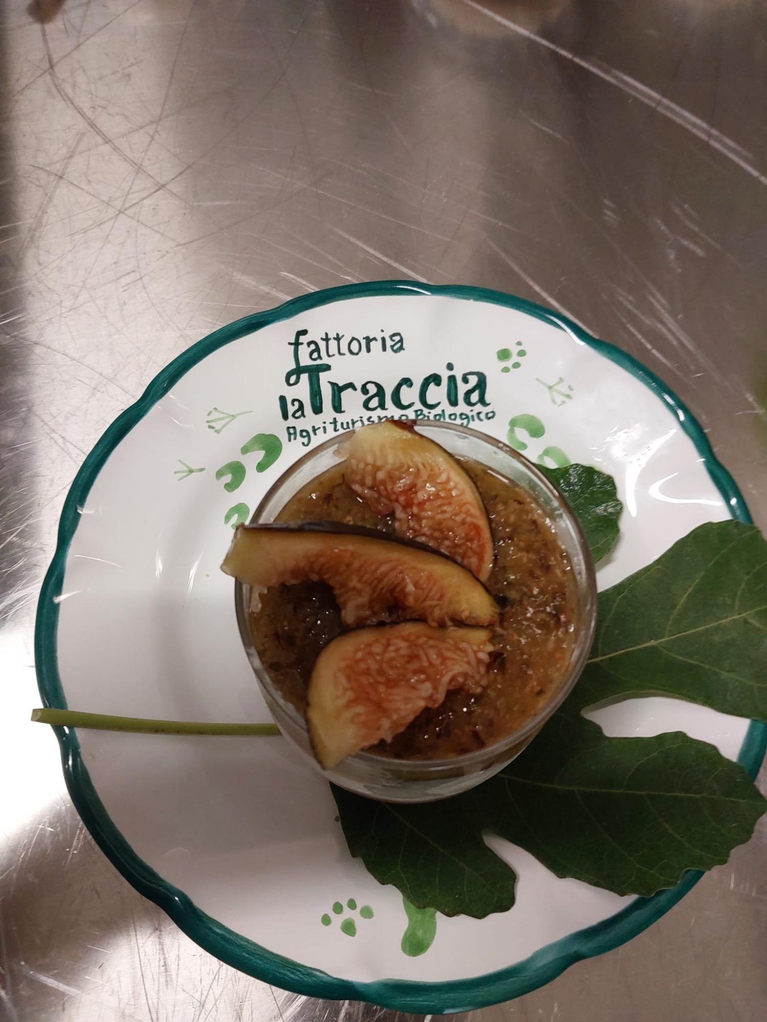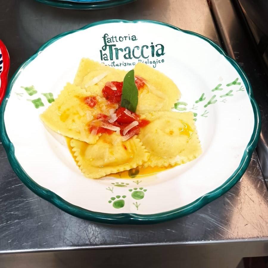 Fattoria La Traccia provides a dining service exclusively for guests staying at the facility. Dinner, available by reservation in a half-board option, features a fixed menu that includes a first course, a second course, and a dessert or fruit, served with water, all for a price of €30 per person. The cuisine is traditional, mainly organic, and uses ingredients that are either homegrown or carefully selected.