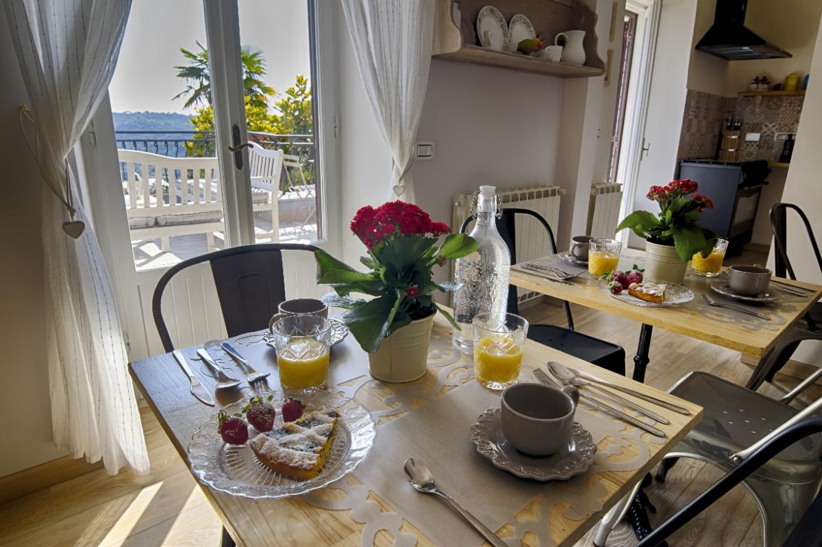 Our buffet breakfast service offers a variety of hot and cold beverages, delicious local cakes, homemade jams, honey, cereals, croissants, cookies, fresh bread, yogurt, and savory toast, along with other delicacies. In the winter months, you can enjoy breakfast in our cozy dining room, while in the summer months, you have the chance to do so on the terrace, surrounded by a charming view of the Tiber Valley.