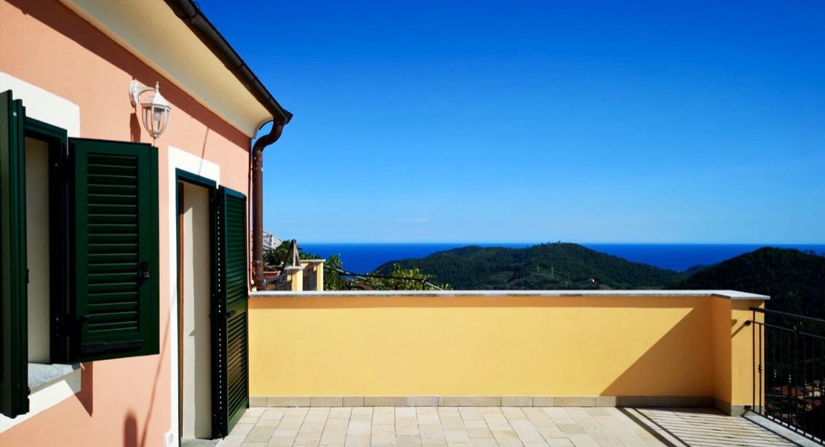 The agriturismo is spread over two floors. On the ground floor, there is the living area, with a lounge and a porch, perfect for enjoying a splendid view of the Riviera di Ponente, and a room with private access. On the upper floor, there are 5 double rooms, one of which is accessible to disabled guests, all with a terrace or private garden and a sea view. On the upper floor, there is a common space equipped with small appliances, to make the stay even more comfortable for all guests.