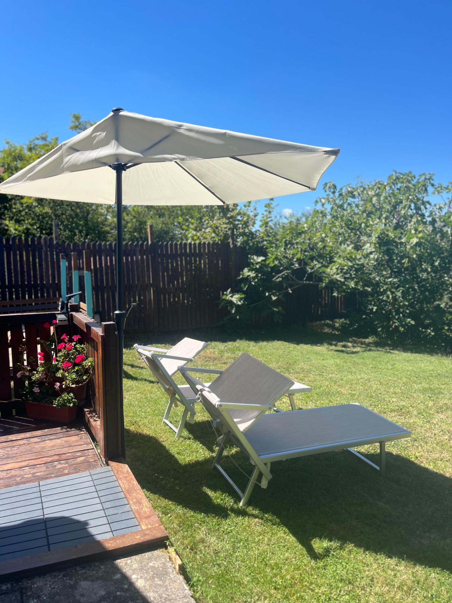 The apartment also includes two bathrooms, one of which has both a bathtub and a separate shower. Guests can enjoy peaceful moments on the private terraces and in the cozy garden that extends both at the front and back of the house. For cycling enthusiasts, a spacious and well-equipped garage is available.