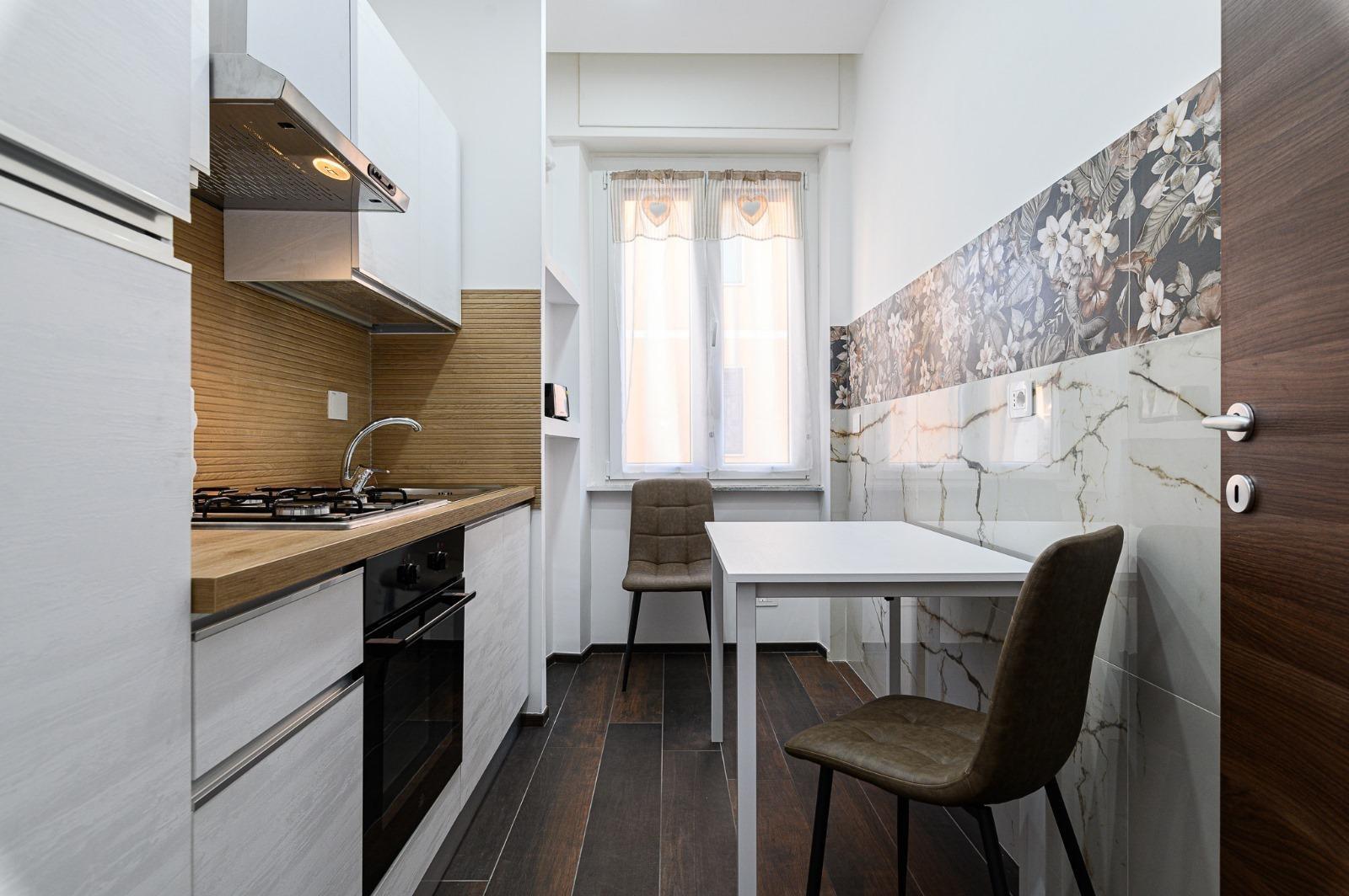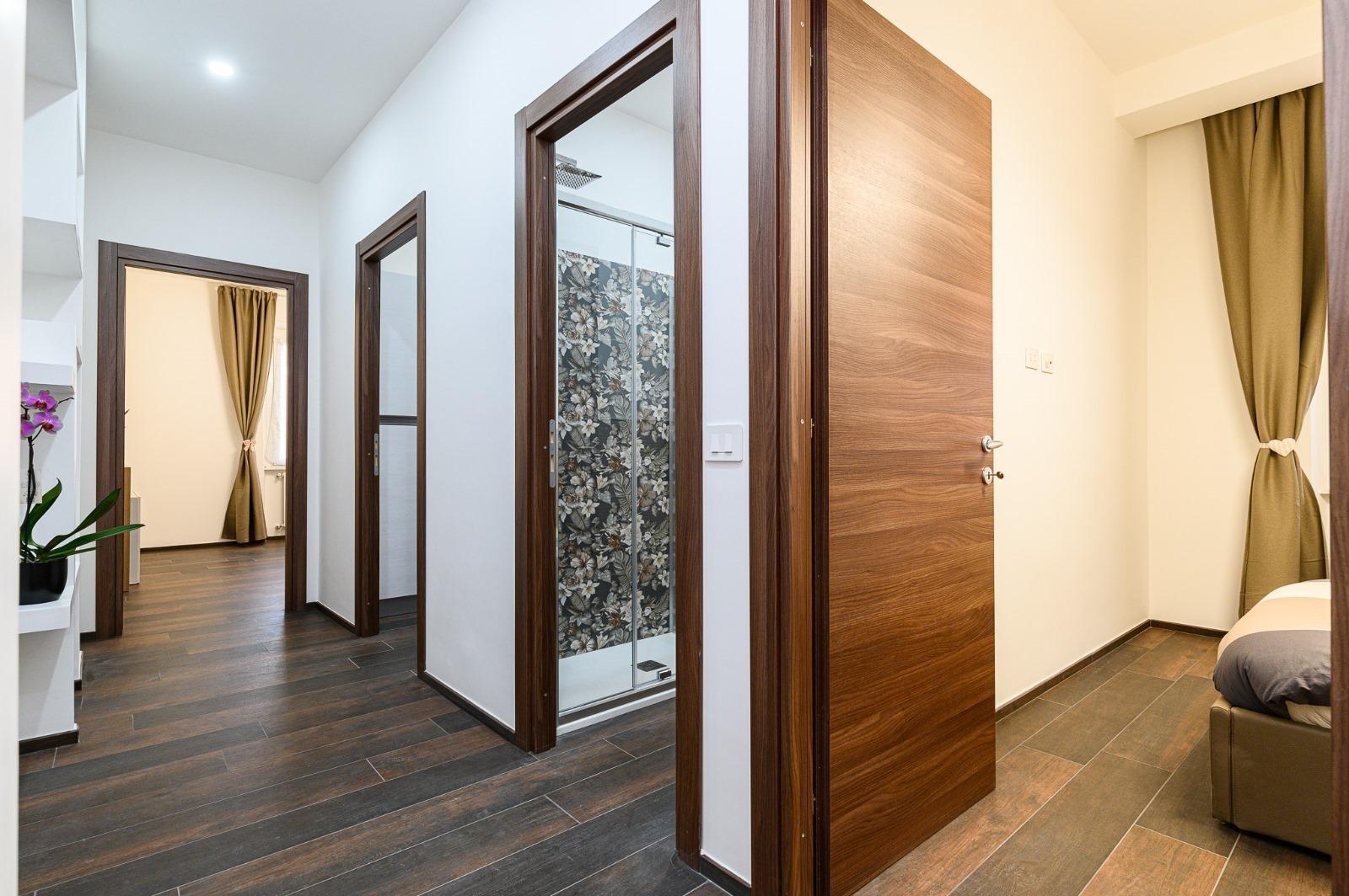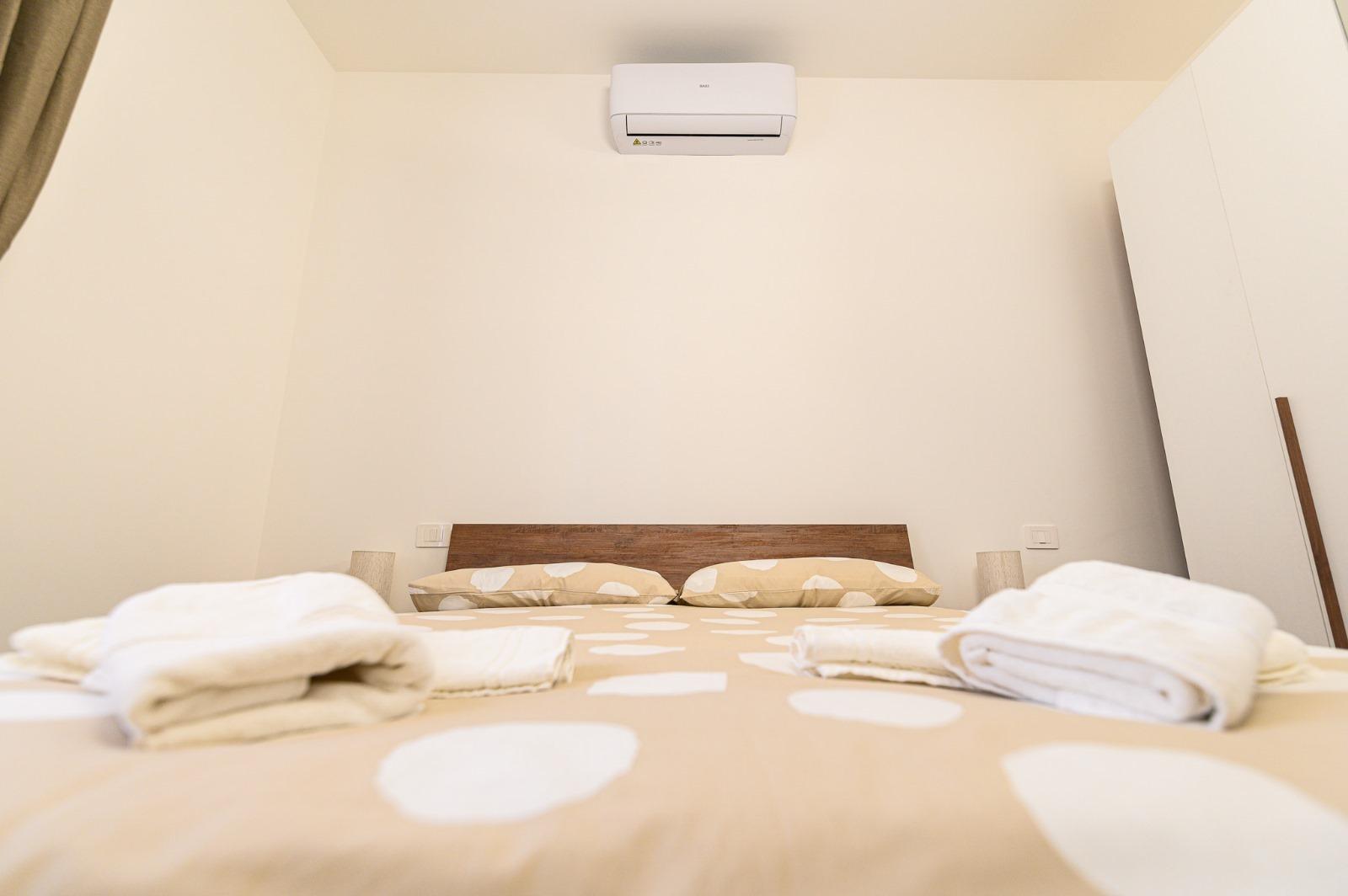 L’appartamento, recentemente ristrutturato, offre ambienti spaziosi e confortevoli: un ampio ingresso, due camere da letto, un salone luminoso, cucina attrezzata e bagno. È dotato di riscaldamento autonomo e aria condizionata nelle camere, per garantire il massimo comfort in ogni stagione. Situato al primo piano e non servito da ascensore, permette agli ospiti di accedere liberamente a tutte le aree della casa.