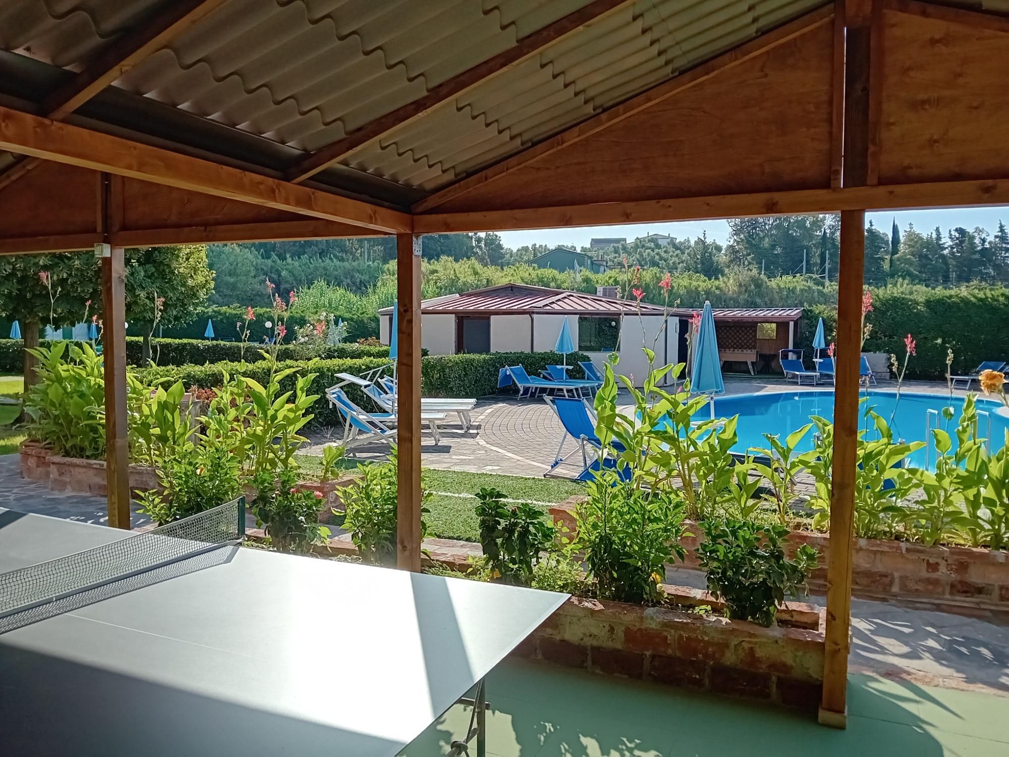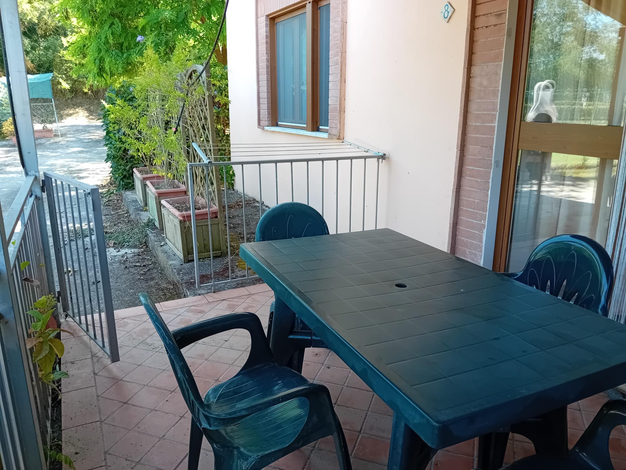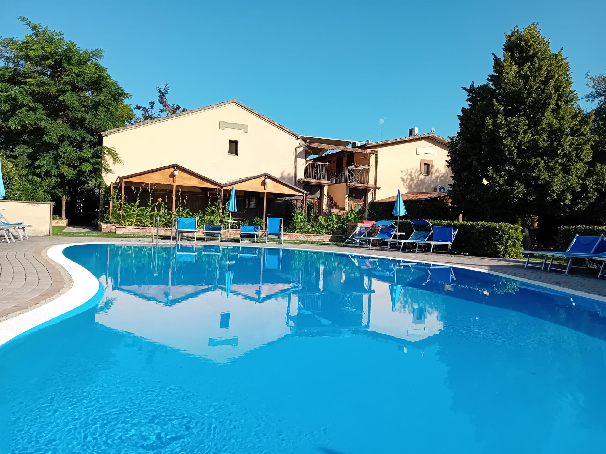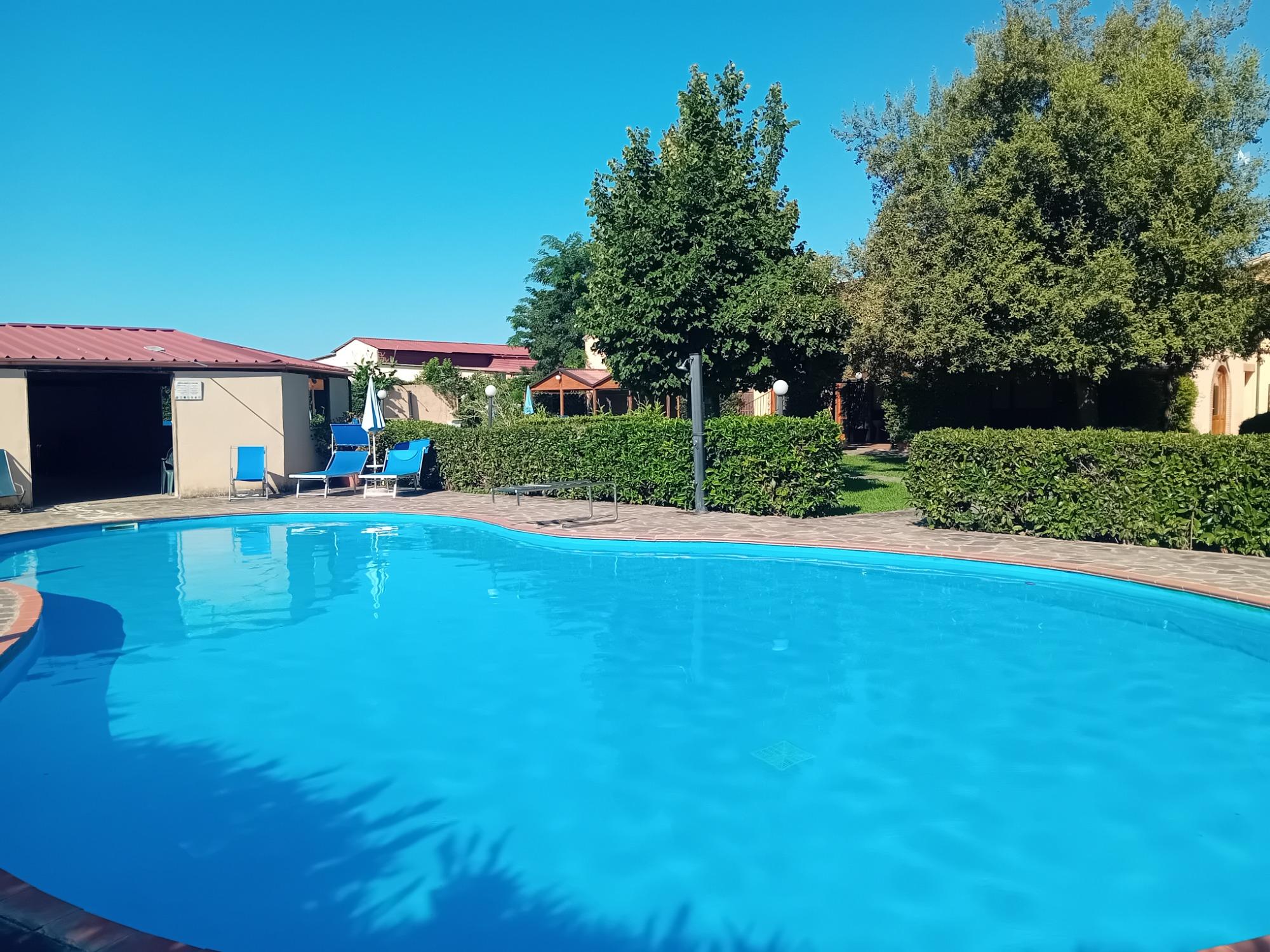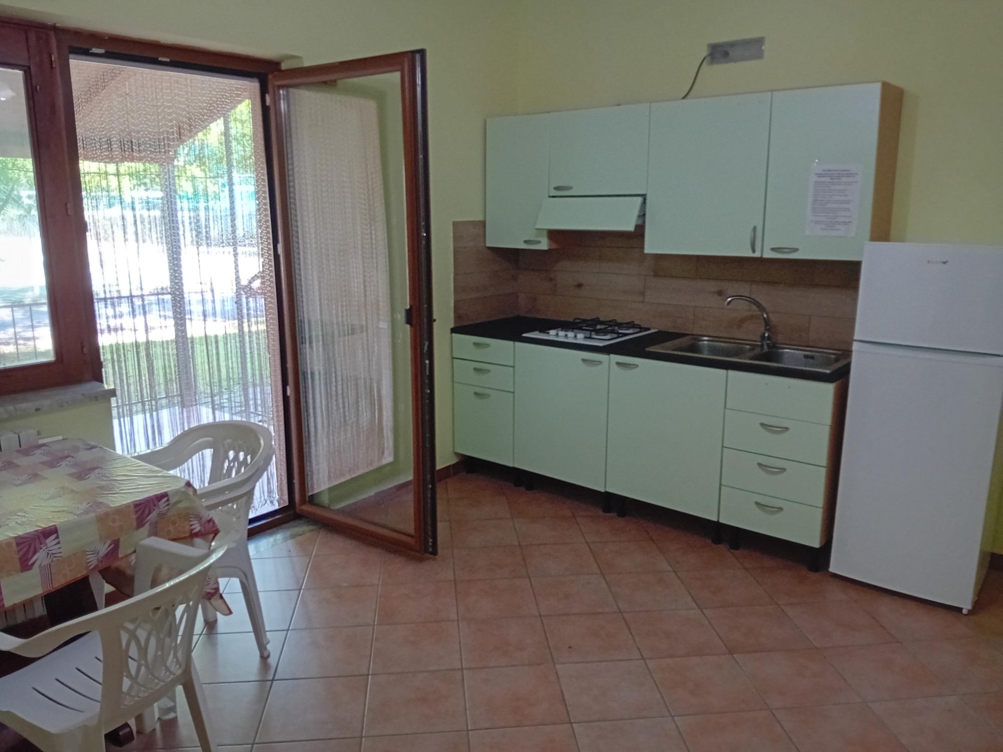The residence offers guests comfortable apartments that accommodate between 2 to 6 people, each equipped with a fully equipped kitchen, air conditioning, and an outdoor porch. There are also two swimming pools with sunbathing areas, sun loungers, and umbrellas reserved for each unit, along with a bar and leisure areas featuring a soccer field, ping pong, and foosball.