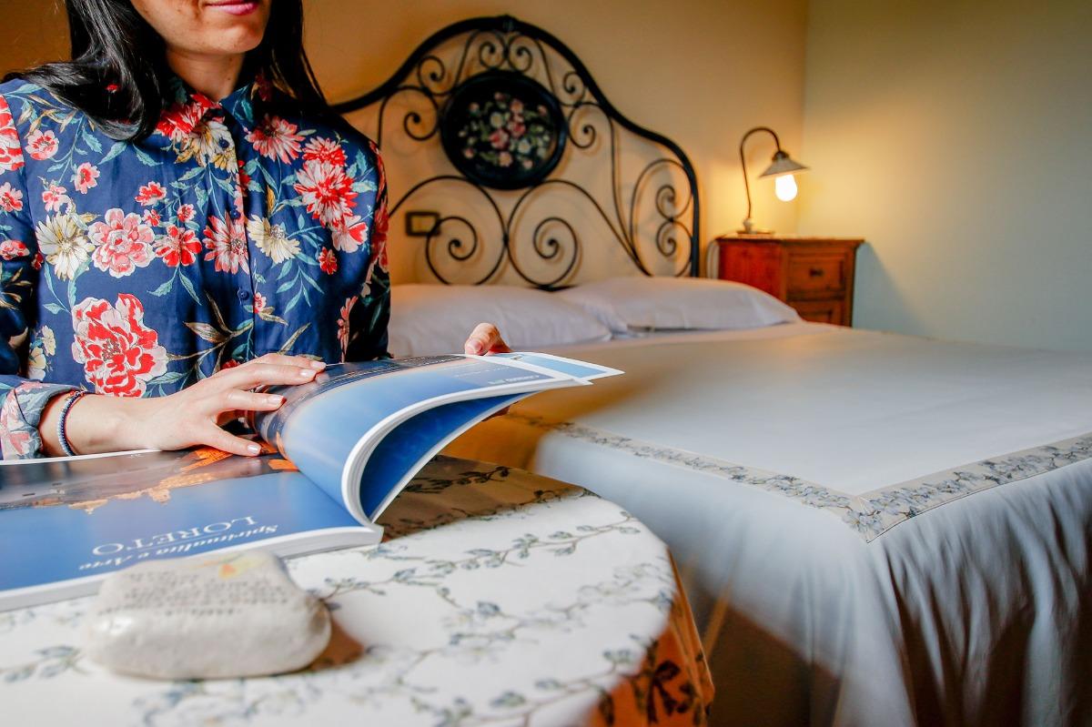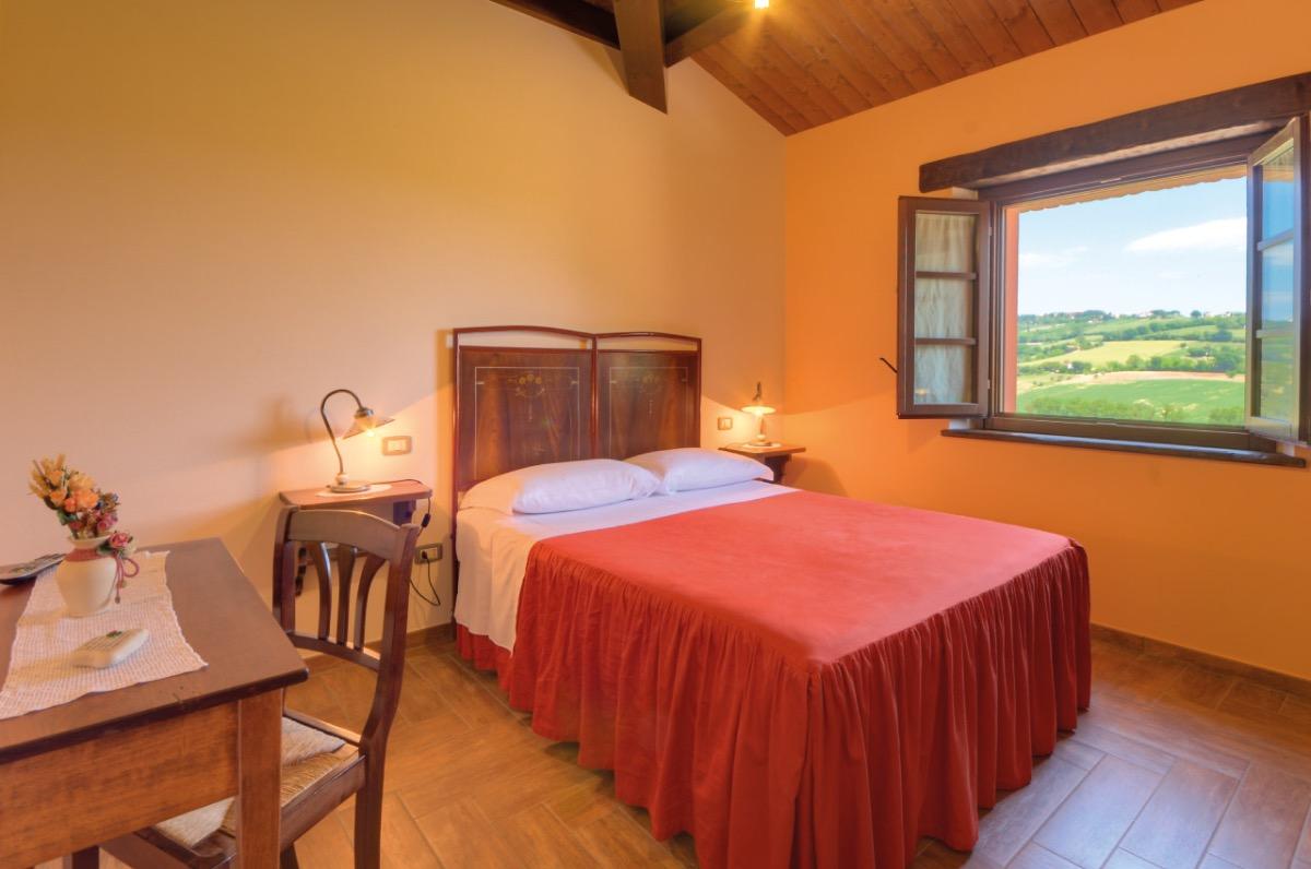 The rooms, located on the upper floor of our charming bed and breakfast, offer a picturesque view of the lush hills of the province of Ancona. The decor evokes traditional rural art, with terracotta floors, ceilings with exposed wooden beams, and delightful wrought iron beds.