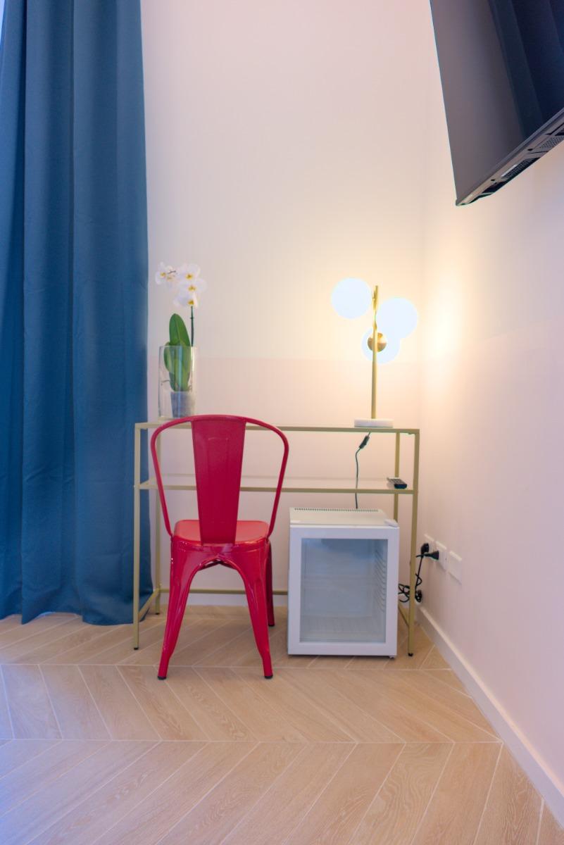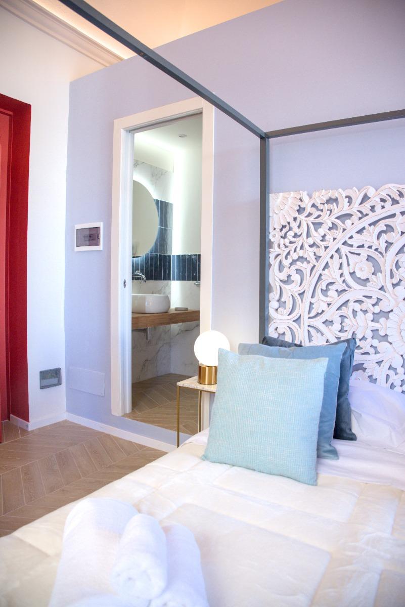 Ampia camera matrimoniale con bagno privato e balcone su corte interna. La camera dispone di doccia cromoterapica ed è dotata di ogni comfort: tv led, bollitore con selezione di the/tisane, climatizzazione autonoma, phon, frigobar e biancheria da letto e da bagno. Su richiesta è possibile usufruire di cucina privata e di un ulteriore letto matrimoniale su mansarda.