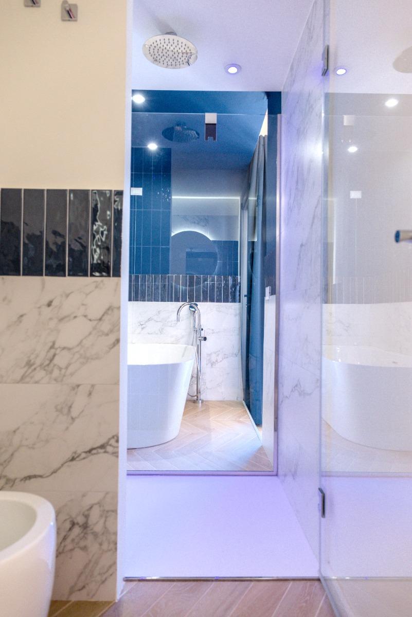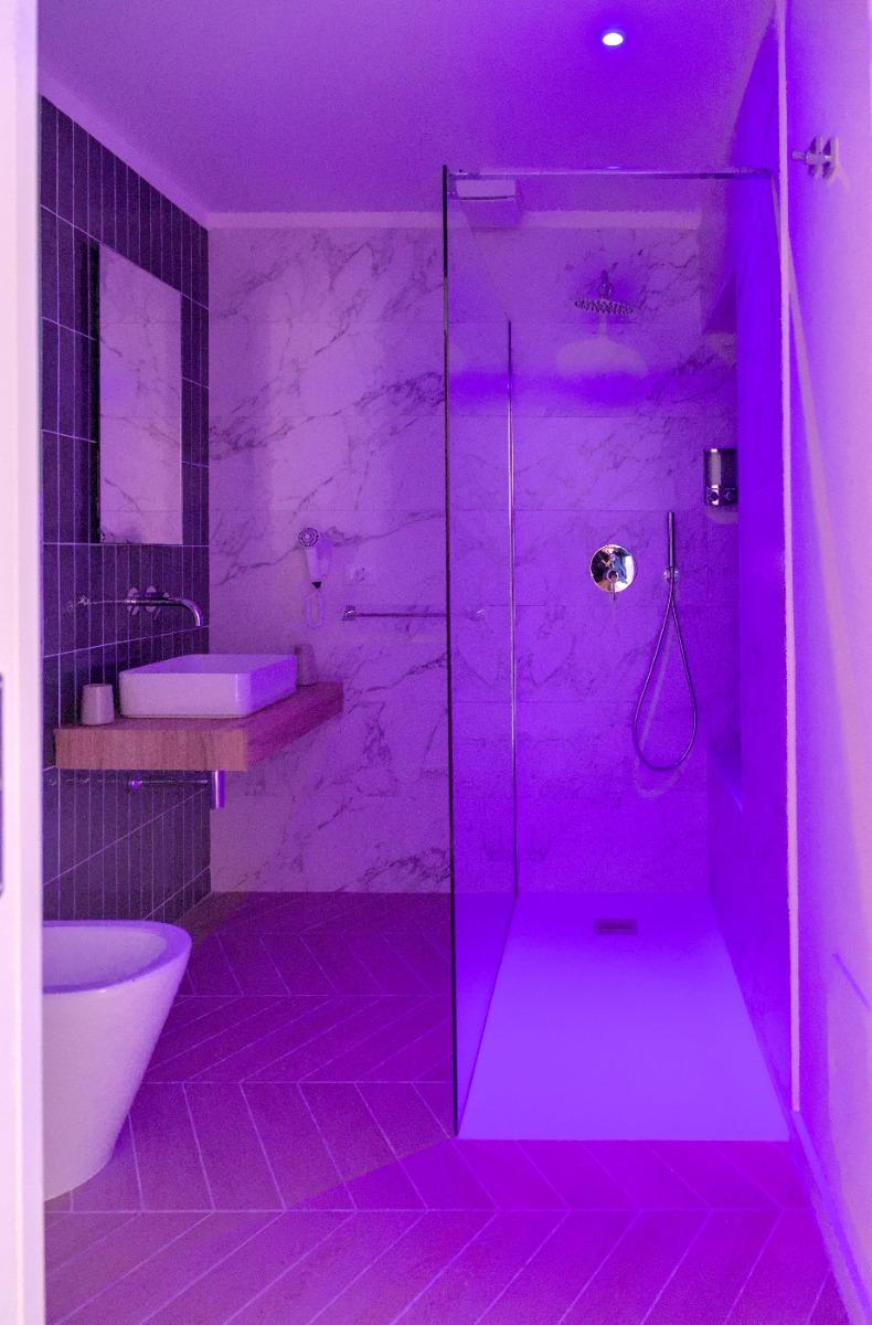 Camera matrimoniale con bagno privato con balcone. Ampia area doccia con cromoterapia. La camera dispone di una cabina armadio e di ogni comfort: tv led, bollitore con selezione di the/tisane, climatizzazione autonoma, phon, frigobar e biancheria da letto e da bagno.