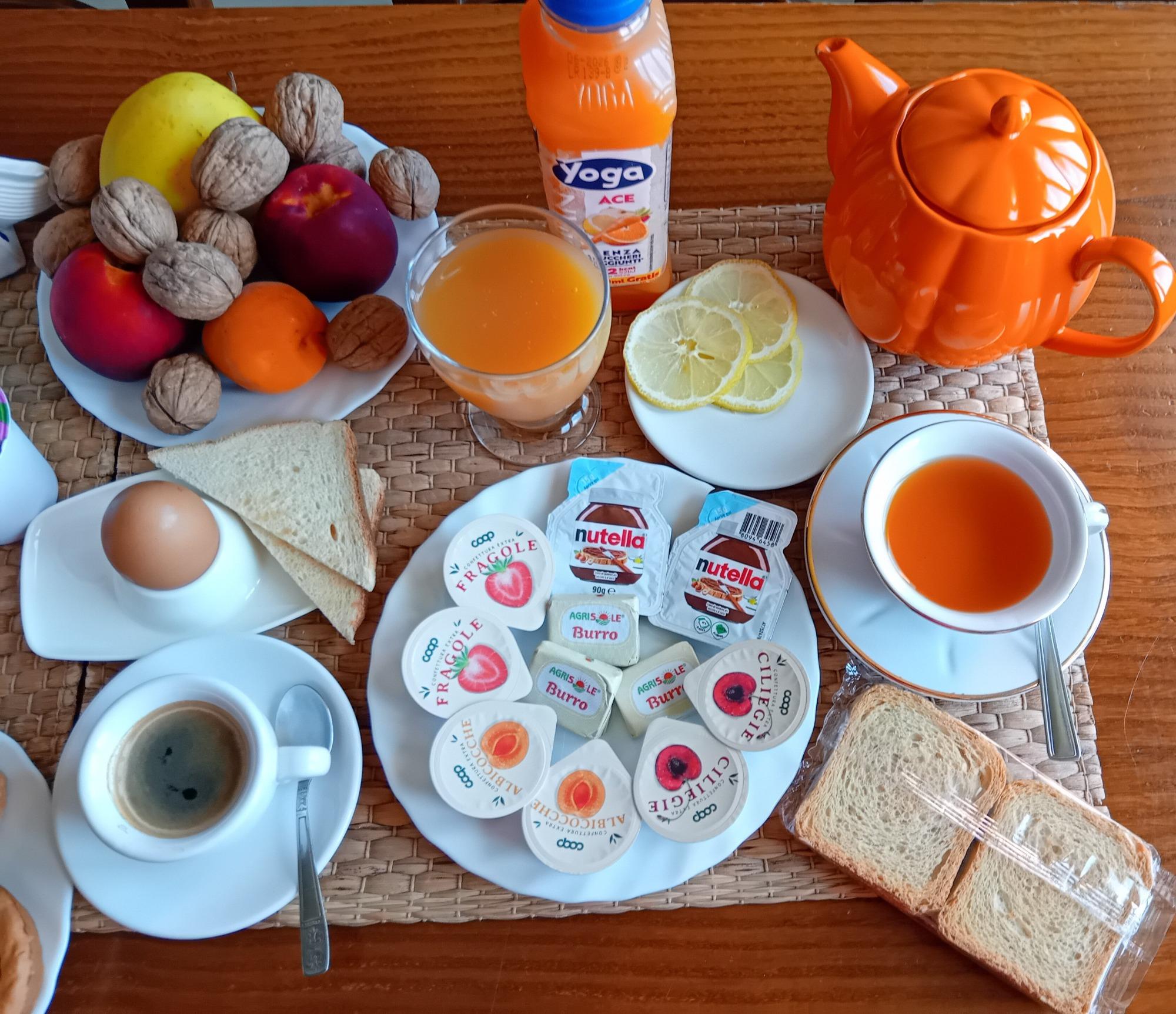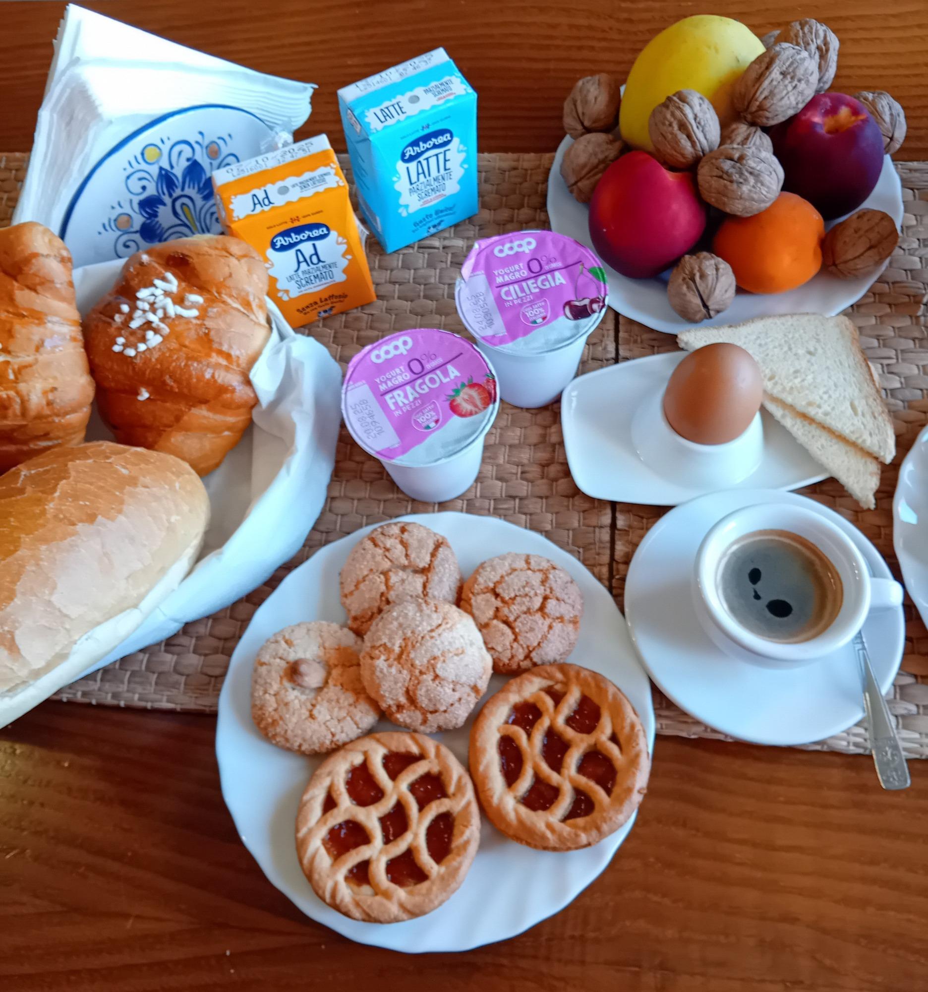 El desayuno se ofrece cada mañana por la señora María e incluye bebidas calientes, una máquina de café con cápsulas y un hervidor disponibles, acompañados de productos dulces y salados. Si se solicita, se puede adaptar la oferta a necesidades dietéticas específicas, para comenzar el día de una manera agradable y personalizada.