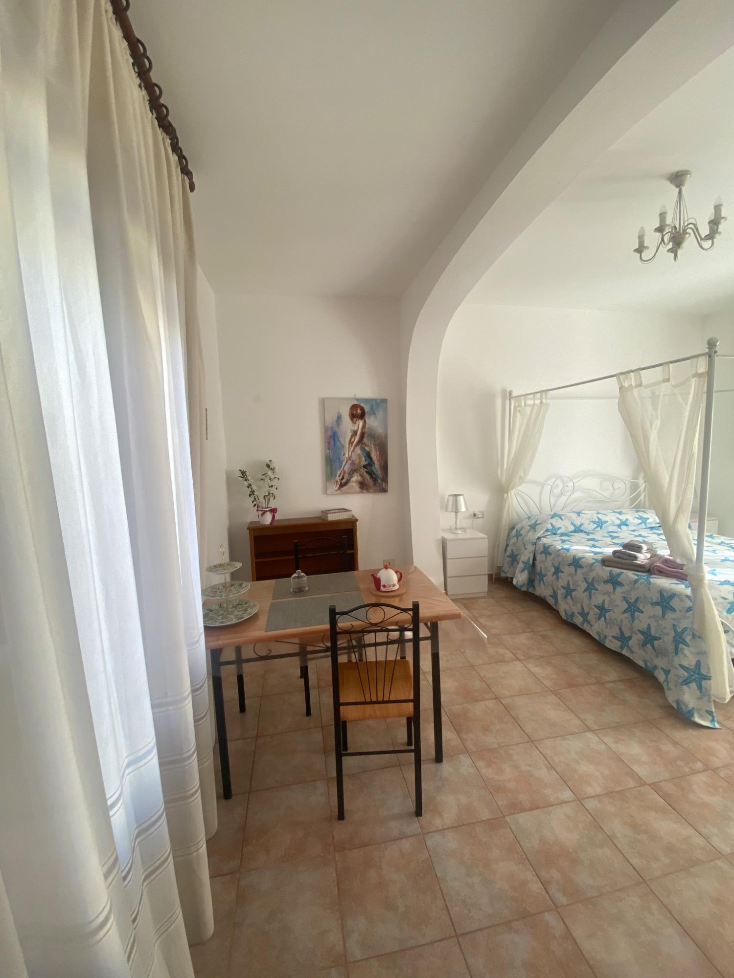 Le Petunie offers three rooms in a delightful typical Sardinian house with an ancient pink courtyard. The rooms are tastefully furnished, spacious, bright, and equipped with all the comforts. It is an eco-sustainable structure that makes more effective use of natural resources, with a view to reducing waste, enhancing ecosystems, favoring intergenerational economic policies and using clean and renewable energy sources. It uses renewable energy sources such as photovoltaic and solar energy. Each studio is very comfortable and equipped with a kitchenette with induction hob, microwave oven, fridge and dishes. Angela is the full-time manager of the B&B, but the whole family is welcoming and happy to collaborate in making your vacation enjoyable and full of new experiences.
