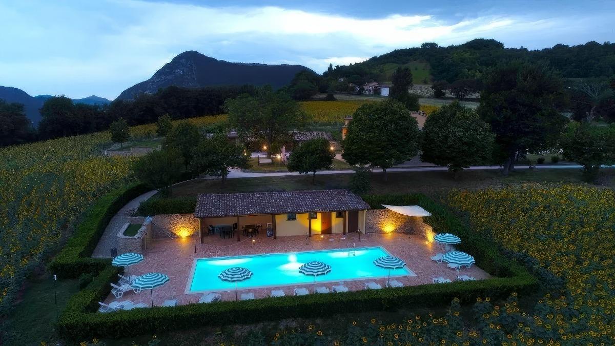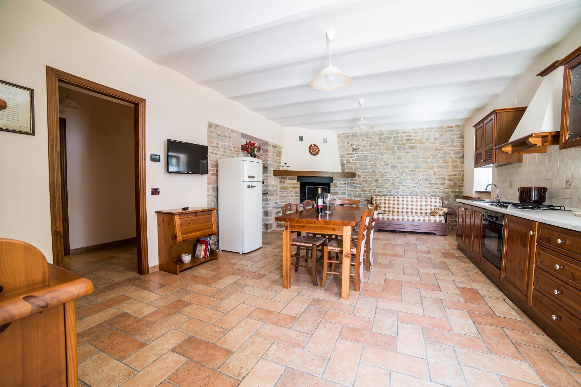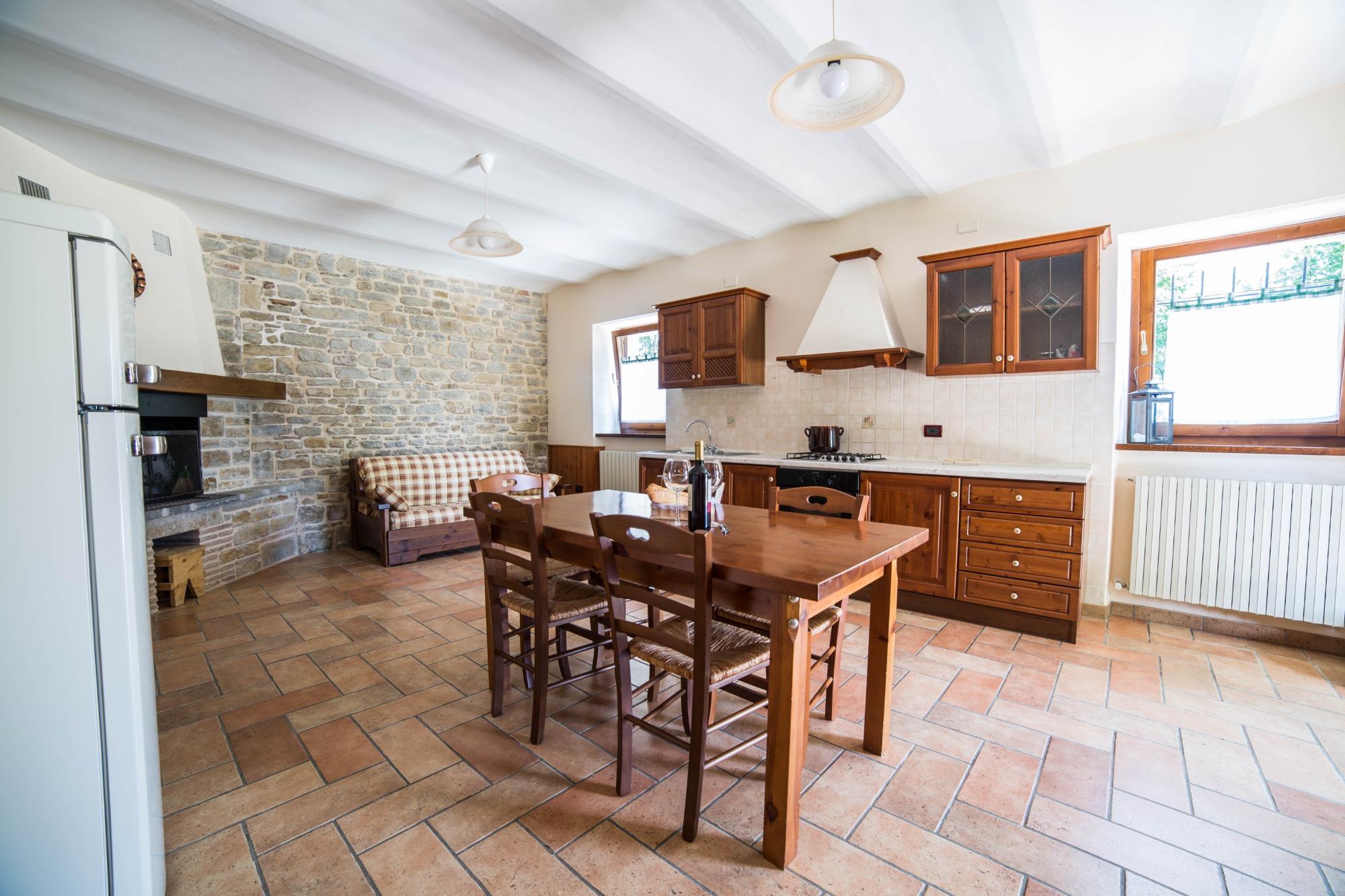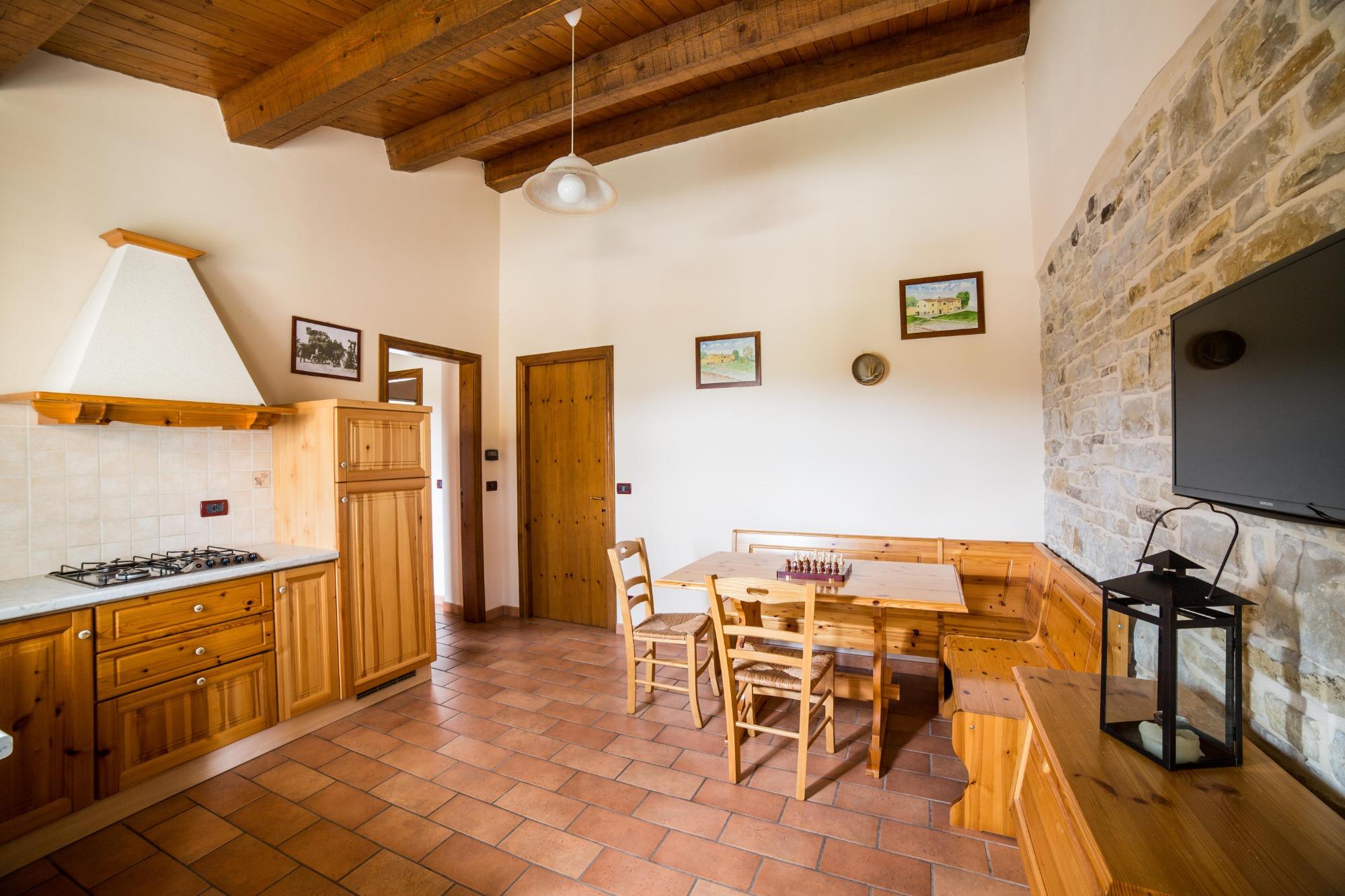 Tra gli spazi comuni spicca la piscina panoramica con solarium, affacciata sulla vallata, perfetta per momenti di relax nelle giornate di sole. Il grande giardino invita a trascorrere ore all’aria aperta, magari con una grigliata di carne locale, mentre i bambini possono divertirsi in sicurezza. Le biciclette messe a disposizione consentono di esplorare i dintorni su due ruote, lungo sentieri e percorsi tra natura e paesaggi coltivati.