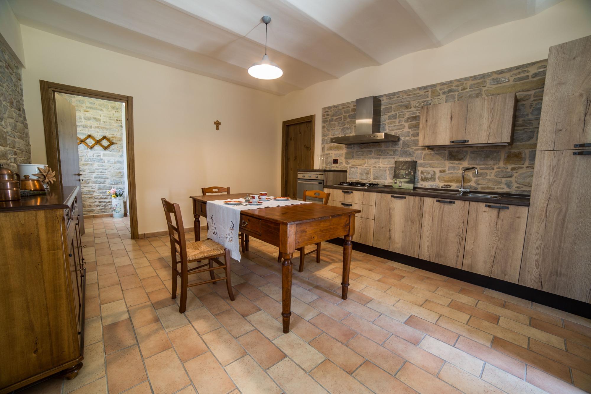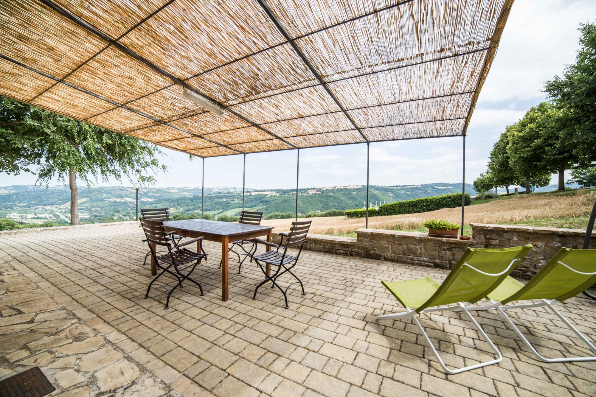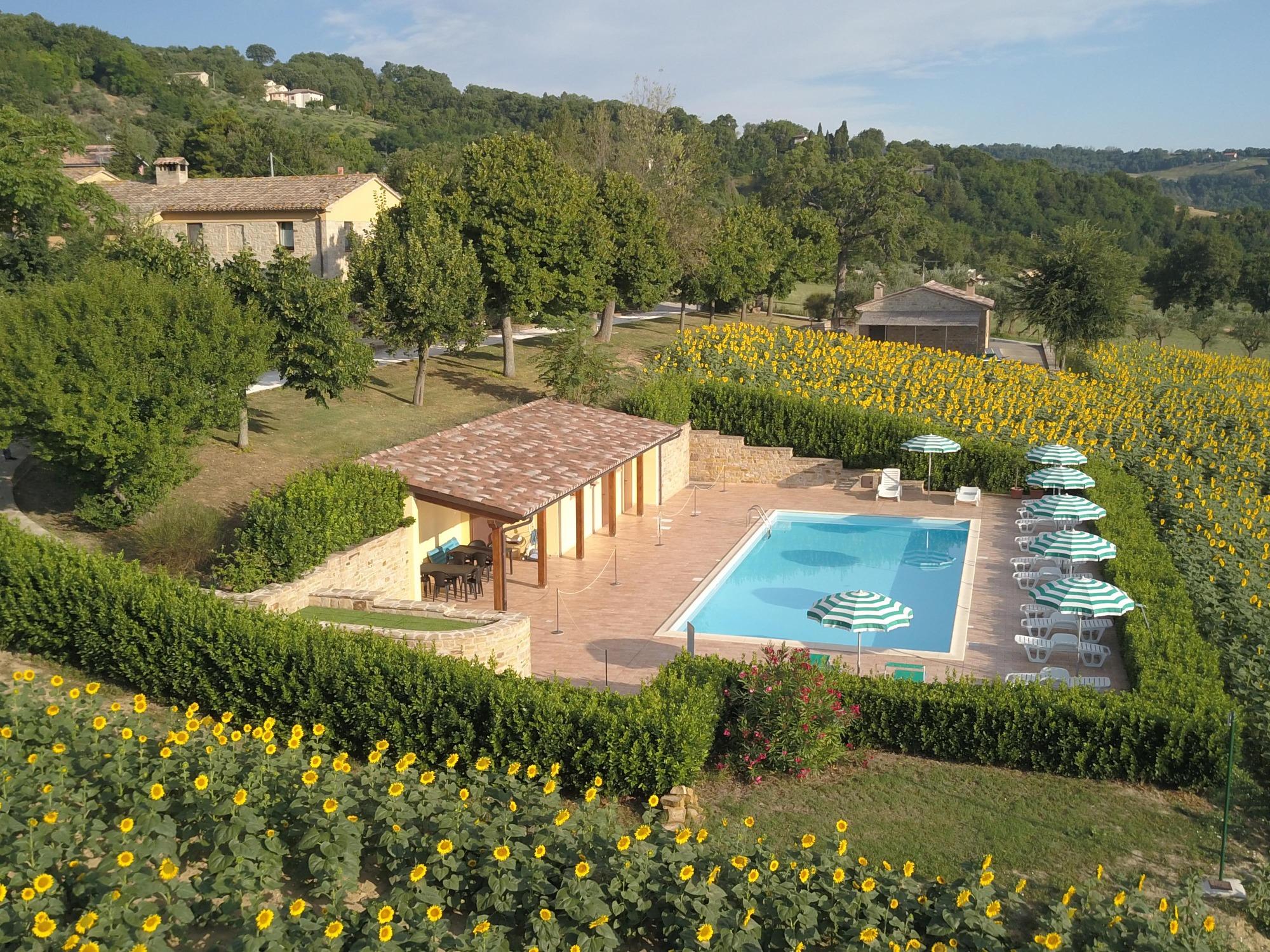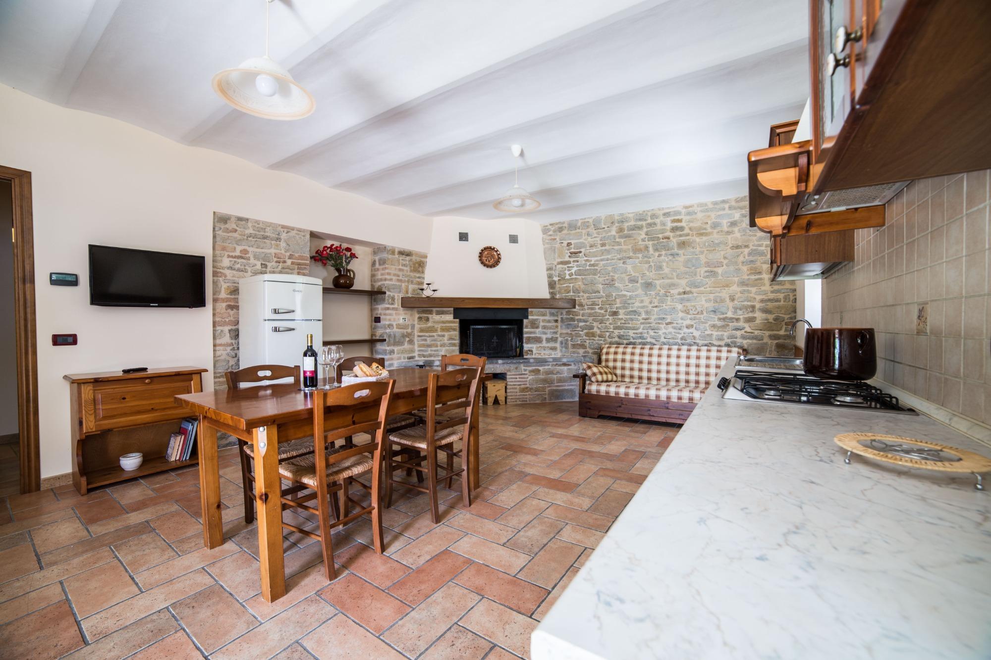 Tra gli spazi comuni spicca la piscina panoramica con solarium, affacciata sulla vallata, perfetta per momenti di relax nelle giornate di sole. Il grande giardino invita a trascorrere ore all’aria aperta, magari con una grigliata di carne locale, mentre i bambini possono divertirsi in sicurezza. Le biciclette messe a disposizione consentono di esplorare i dintorni su due ruote, lungo sentieri e percorsi tra natura e paesaggi coltivati.