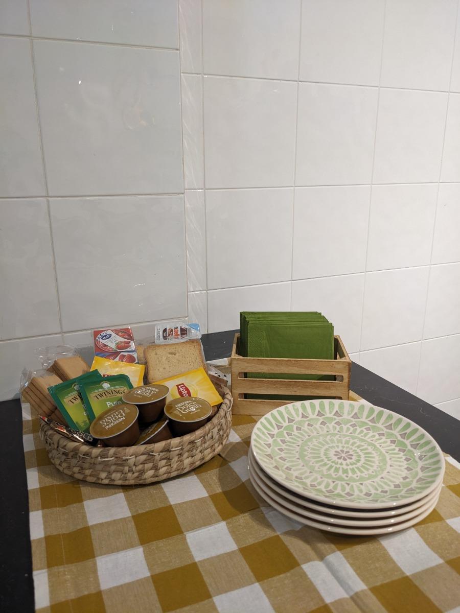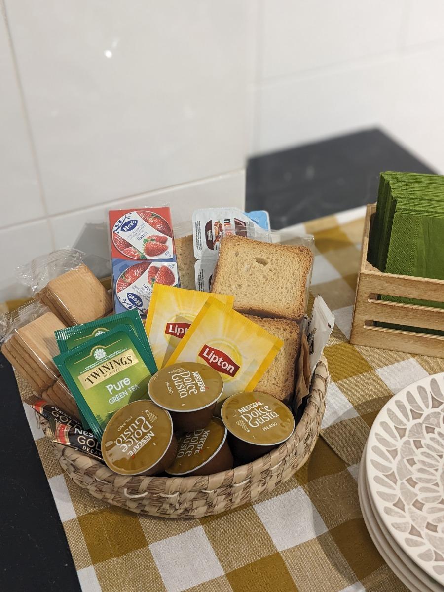 To our dear guests, we will provide a delightful welcome kit for breakfast, as you can see in the picture, to start your day with flavor. The nearest bar is just a 3-minute drive from your accommodation.