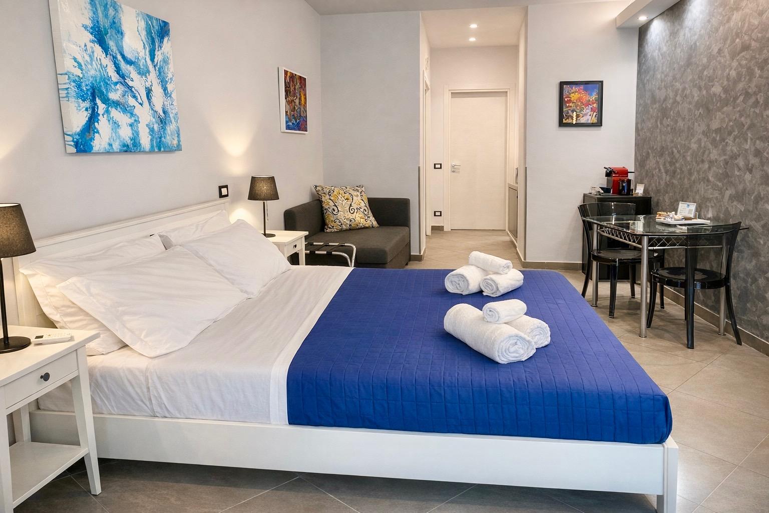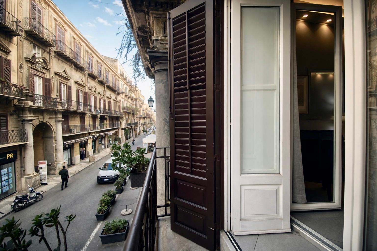 Gli appartamenti sono situati in uno dei più antichi e prestigiosi palazzi della nobiltà palermitana, risalente al XVIII secolo. Recentemente ristrutturato con uno stile moderno e di design, gli interni hanno elementi che richiamano la storia del luogo. Il suggestivo balcone si affaccia sulla famosa Via Vittorio Emanuele (Cassaro), la via più antica della città che collega il Palazzo Reale, la Cattedrale e i Quattro Canti al mare.