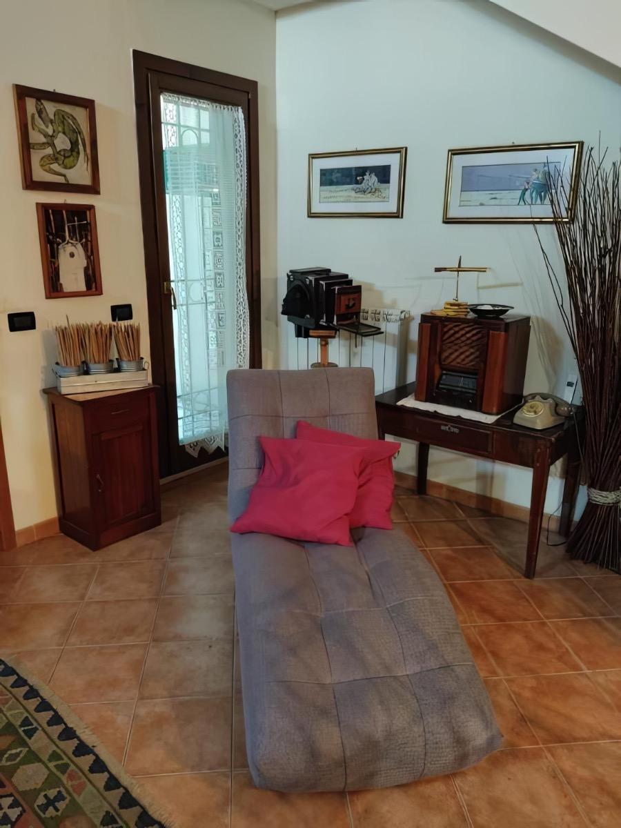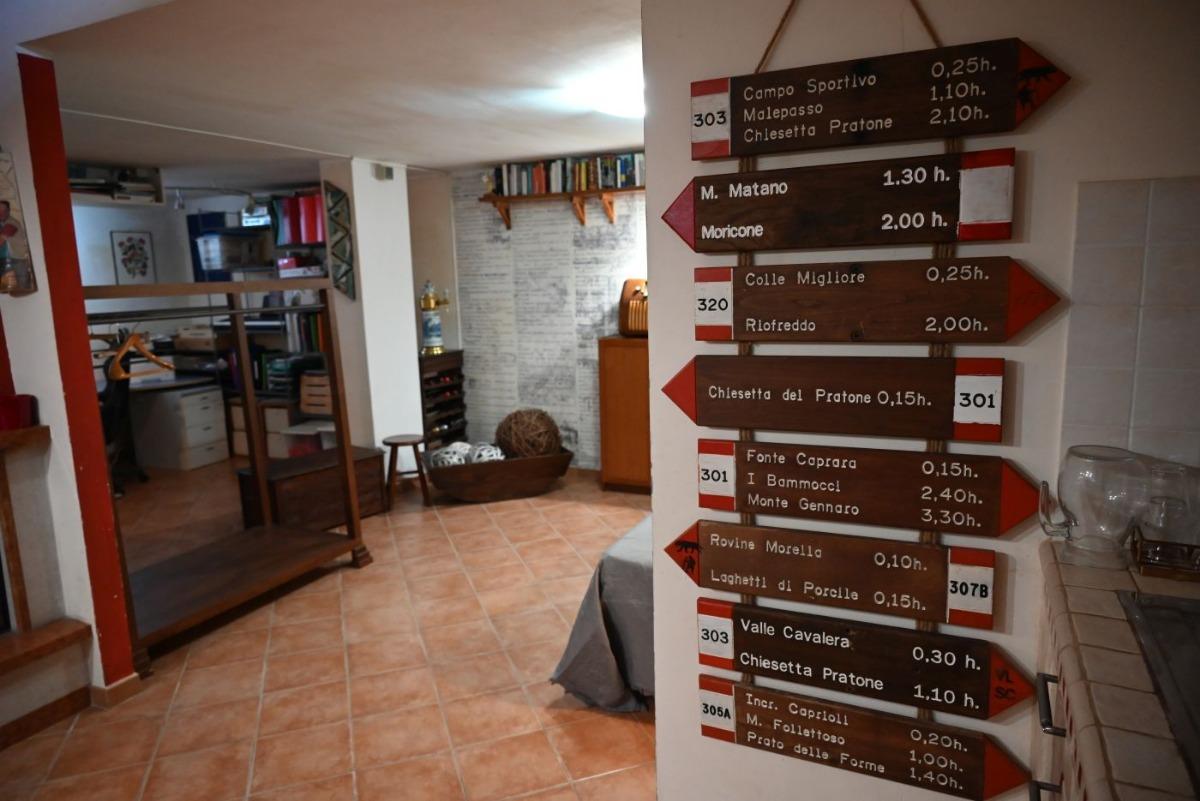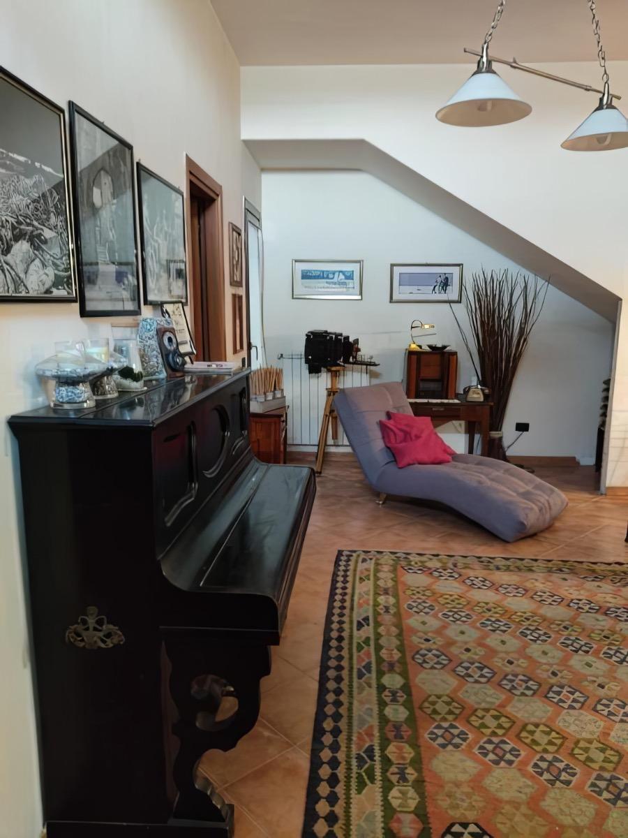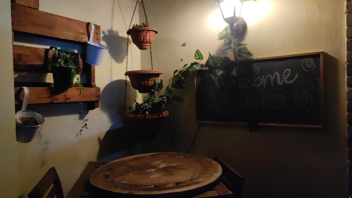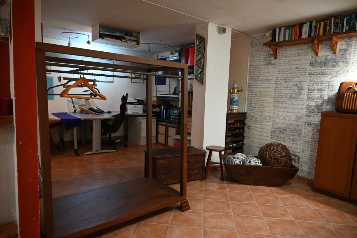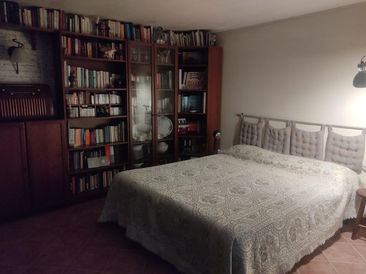 The apartment is nestled in a quiet residential area, easily accessible from street level via a staircase. It consists of a spacious single room of over 80 square meters, equipped with a large fully equipped kitchen with electric oven, 5-burner hob, microwave, tables, chairs, armchairs, TV with streaming services, a PC available to guests, WIFI connection, a vast library, a fireplace, a bathroom with shower and washing machine, a double bed, and a comfortable double sofa bed. Outside, you can enjoy a lovely garden with trees and a bench, from which you can admire breathtaking views with colorful sunsets and lush countryside.