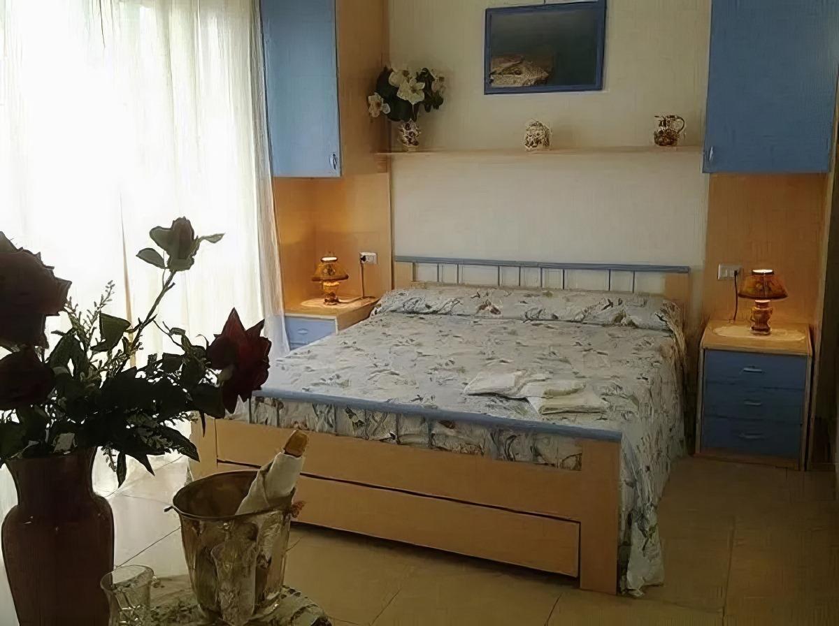 La struttura dispone di cinque camere accoglienti, arredate con cura e tutte dotate di bagno privato, aria condizionata, TV e balcone con vista sul mare. Sono disponibili sistemazioni doppie, triple e quadruple, adatte a coppie, famiglie o piccoli gruppi. Gli ospiti hanno accesso a una cucina completamente attrezzata e a una terrazza panoramica con solarium, ideale per momenti di relax al rientro dal mare.