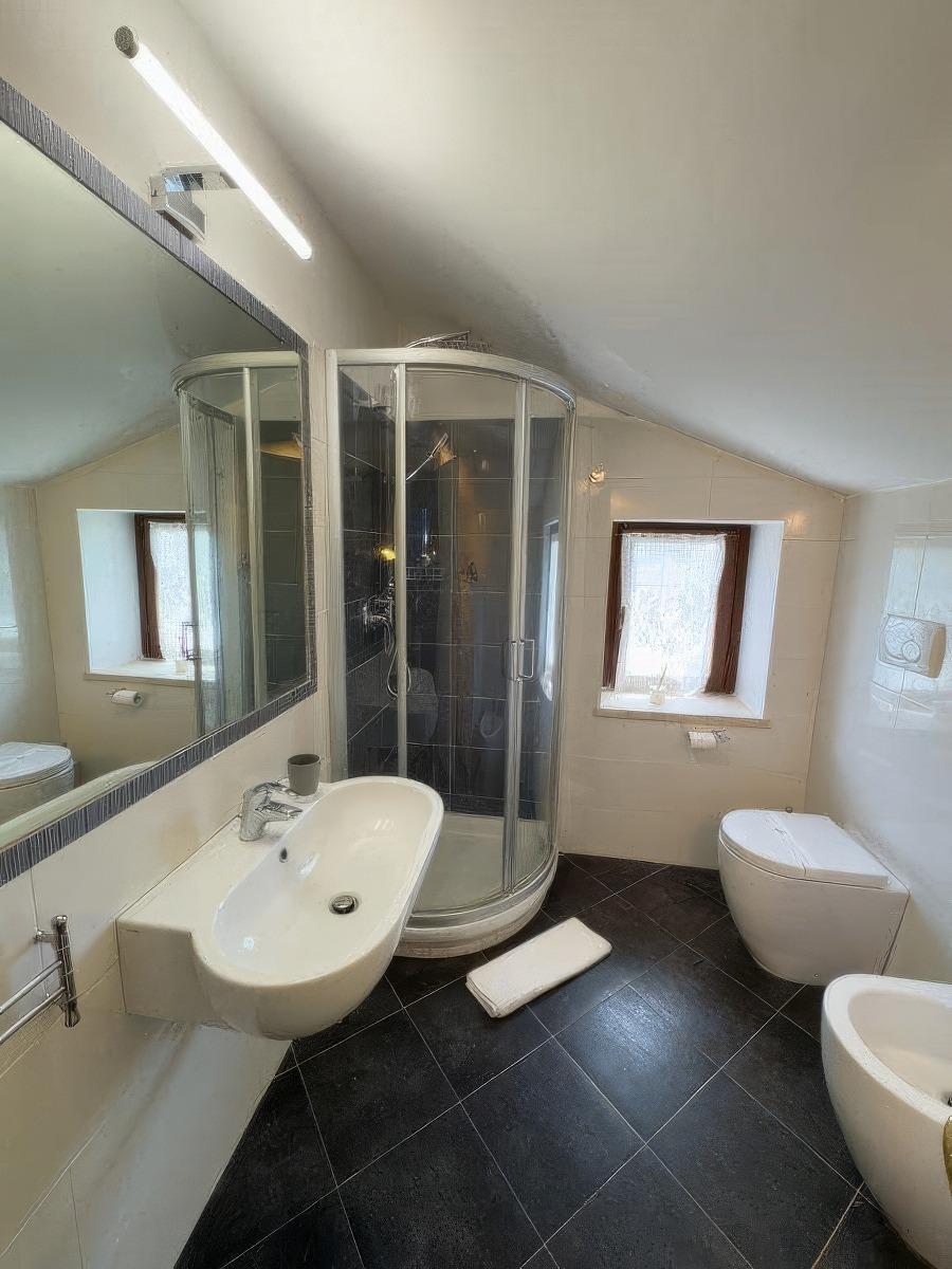 Every morning, guests can kick off their day with a hearty buffet breakfast made from fresh, local ingredients. It is served in the common room, which is air-conditioned and furnished with antique furniture, creating a warm, homely atmosphere. During the summer months, guests have the option to enjoy their breakfast outdoors in the peaceful inner courtyard, surrounded by the tranquility of the village and offering views of the charming landscapes of Sutri.
