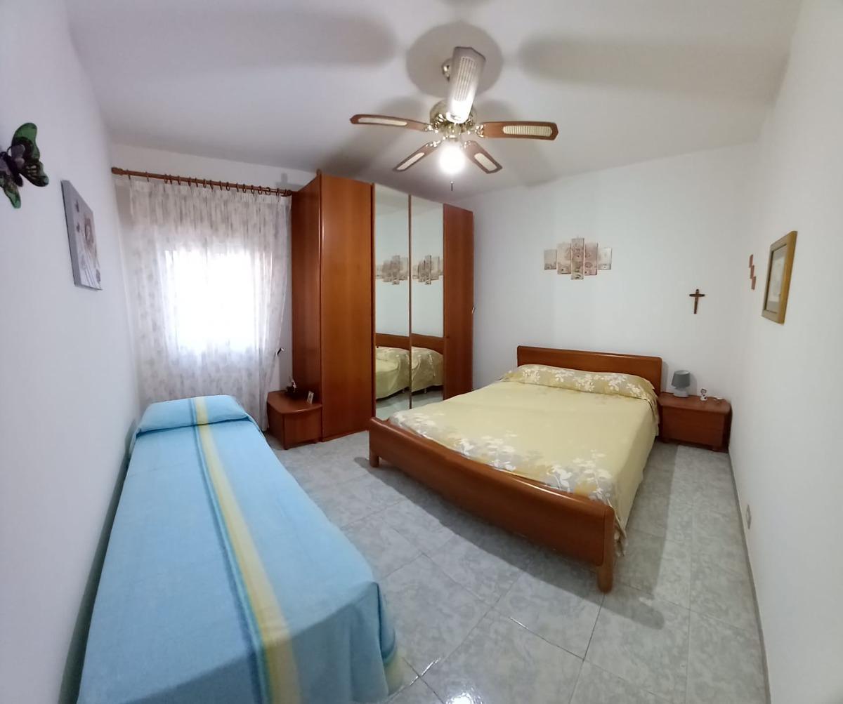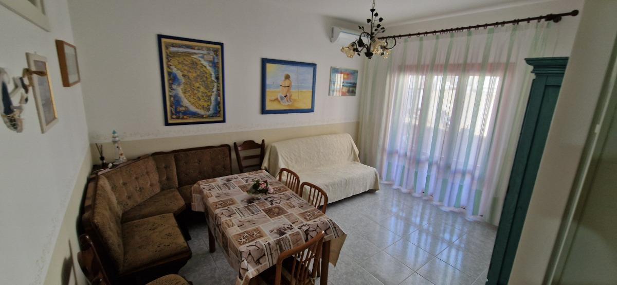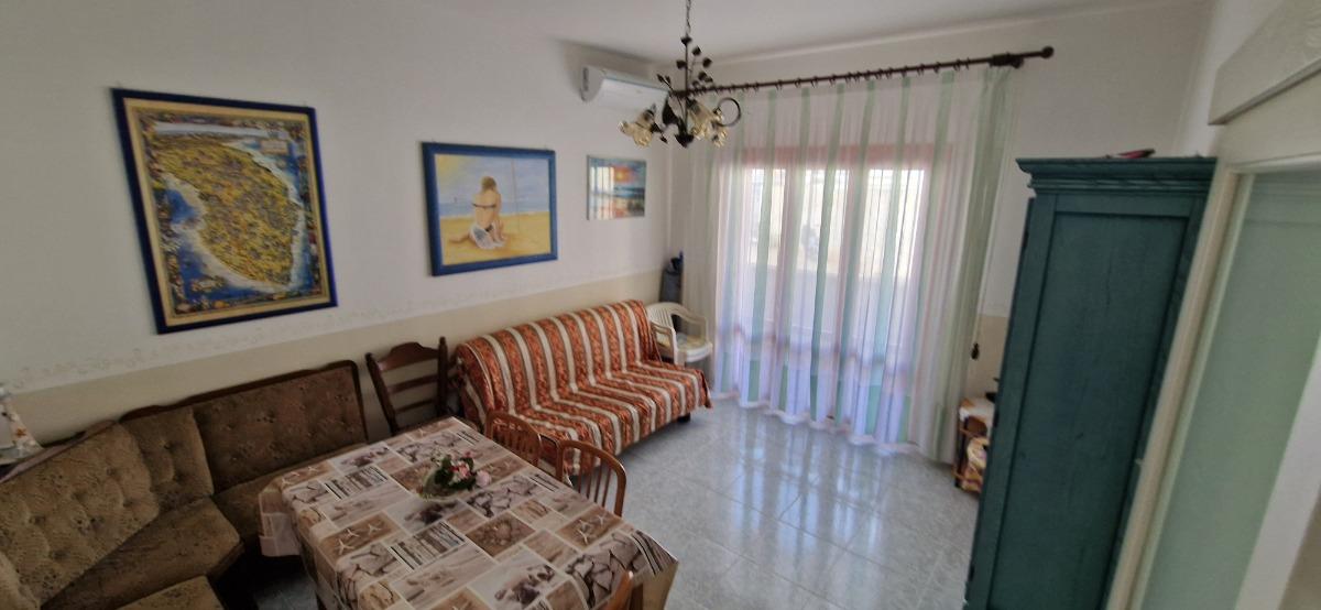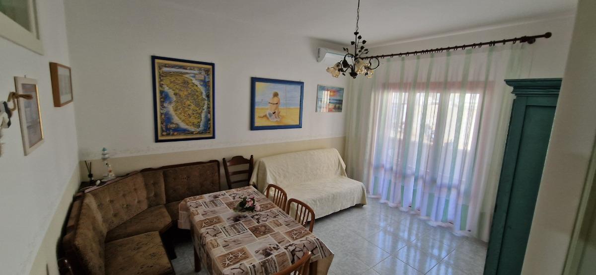 Appartamento di 70 metri quadrati, 2 vani a circa 150 metri dal mare. Cucina attrezzata, lavatrice, stereo, terrazzo-balcone, arredato con gusto. Una camera matrimoniale con possibilità di letto aggiunto; un divano letto matrimoniale nel soggiorno; bagno con doccia.