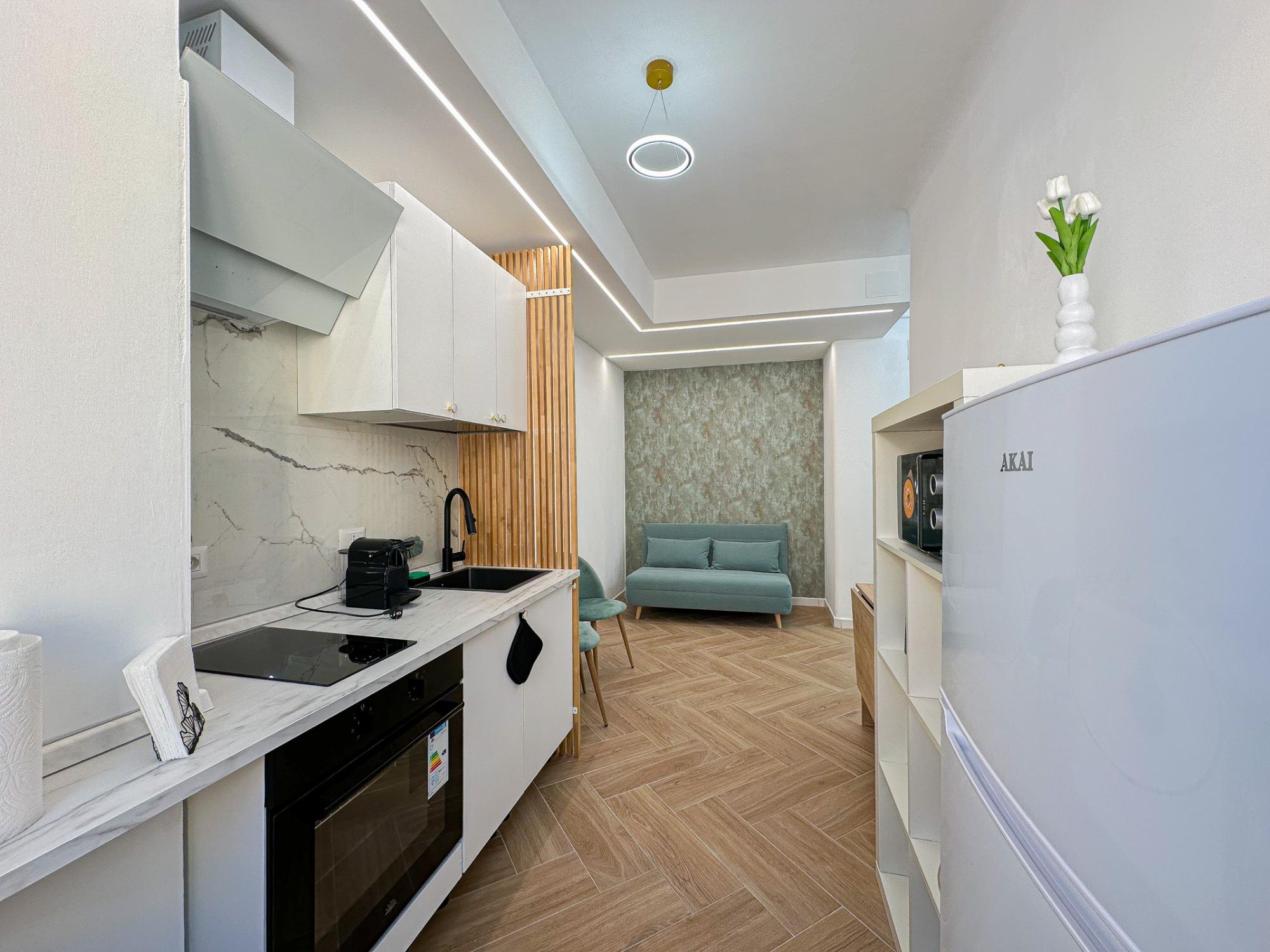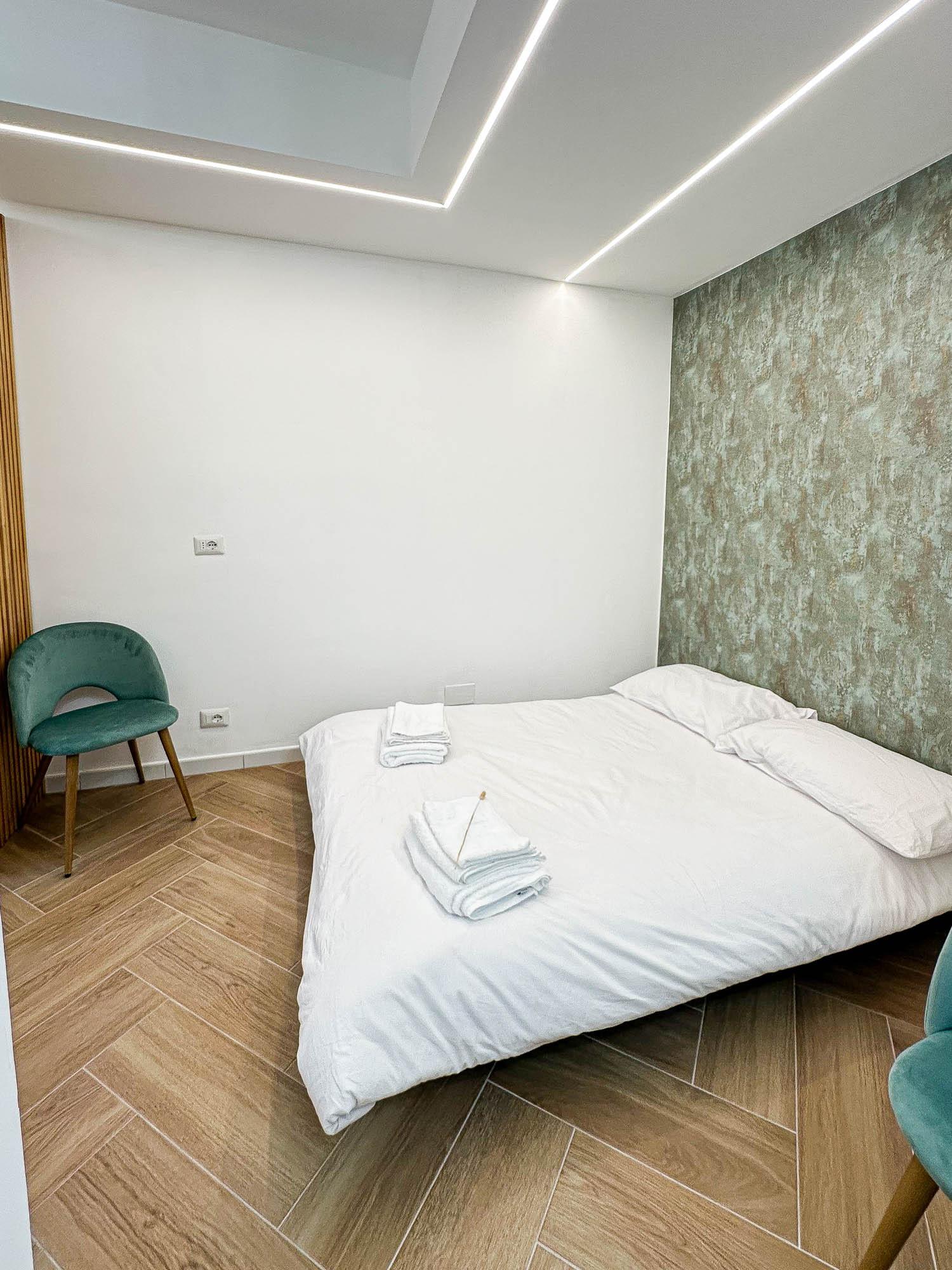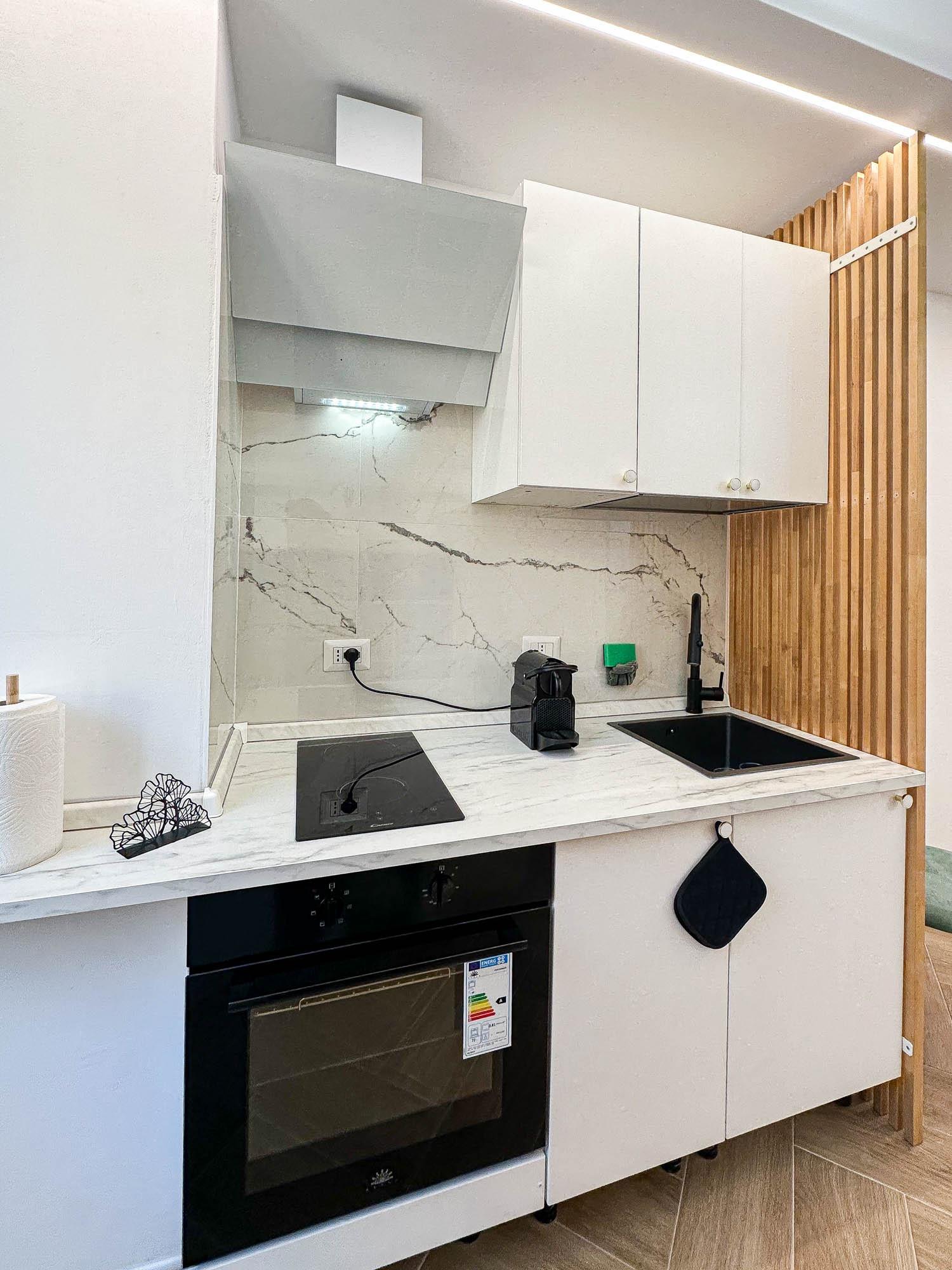 L’appartamento è un bilocale raffinato, composto da una spaziosa camera da letto, un bagno moderno e una luminosa zona giorno con cucina a vista, attrezzata con elettrodomestici di qualità. L’ambiente è pensato per garantire il massimo del comfort: climatizzazione, connessione Wi-Fi in fibra ottica, smart TV da 50 pollici con Netflix e macchina Nespresso con cialde a disposizione. All’arrivo, gli ospiti troveranno una bottiglia di acqua fresca in frigorifero e tutto l’occorrente per prepararsi una colazione leggera o un pasto in autonomia.