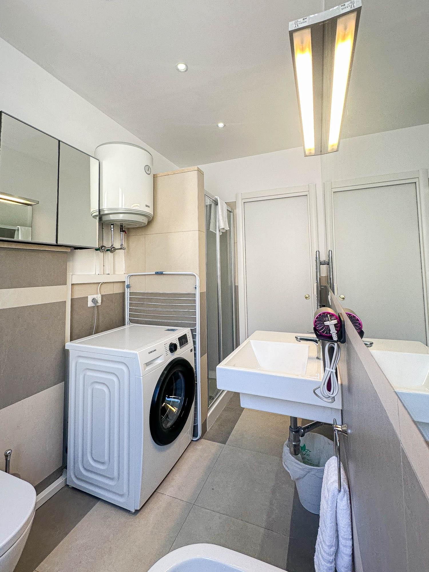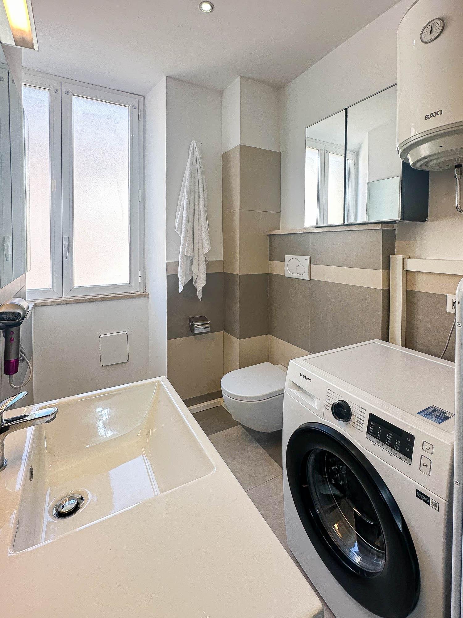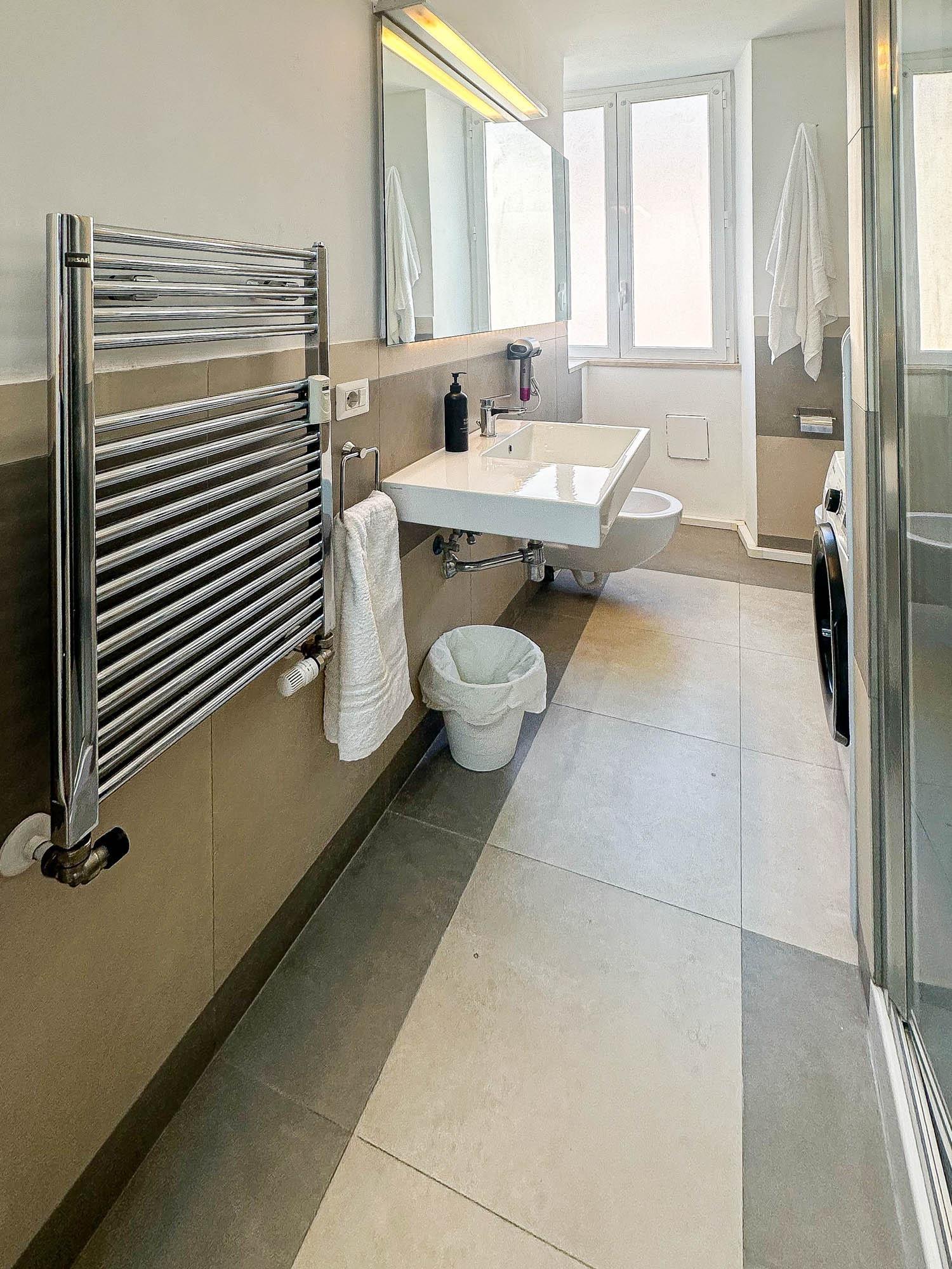 L’appartamento è un bilocale raffinato, composto da una spaziosa camera da letto, un bagno moderno e una luminosa zona giorno con cucina a vista, attrezzata con elettrodomestici di qualità. L’ambiente è pensato per garantire il massimo del comfort: climatizzazione, connessione Wi-Fi in fibra ottica, smart TV da 50 pollici con Netflix e macchina Nespresso con cialde a disposizione. All’arrivo, gli ospiti troveranno una bottiglia di acqua fresca in frigorifero e tutto l’occorrente per prepararsi una colazione leggera o un pasto in autonomia.