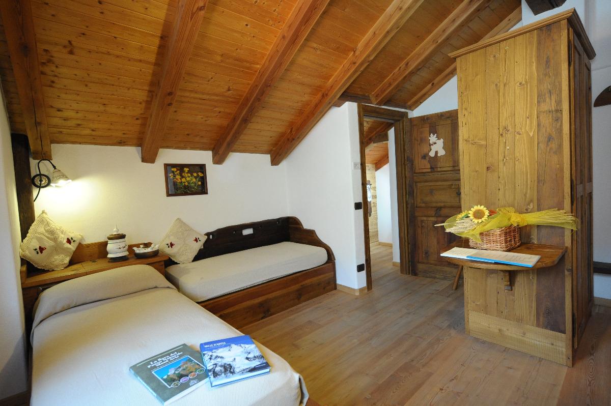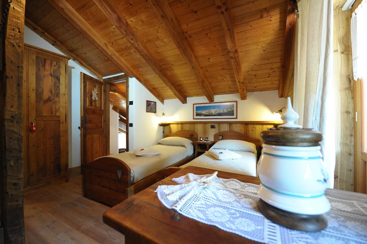 La Pensée: is the room with a balcony. It has two single beds that can be joined if necessary. This room is perfect for those seeking the tranquility and serenity of a typical mountain environment like that of Valle d'Aosta, with an unforgettable atmosphere. A room that will stay in your heart.