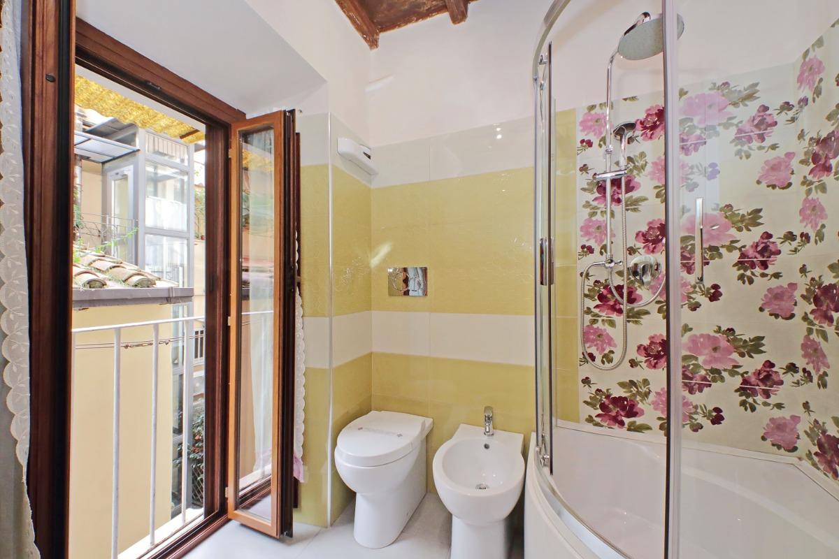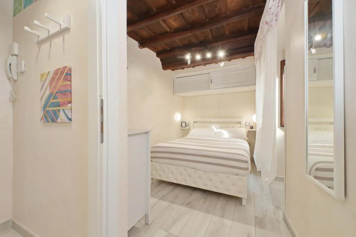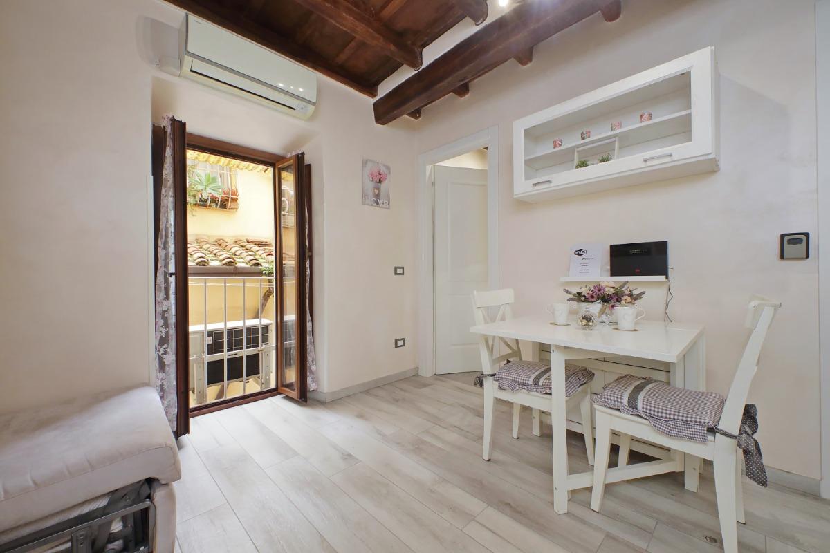 Le finestre dell’appartamento si affacciano all’interno del palazzo, garantendo un’atmosfera silenziosa e rilassante in tutti gli ambienti, perfetta per rigenerarti dopo una giornata trascorsa a scoprire le meraviglie di Roma. Un soggiorno indimenticabile ti attende nel cuore della città eterna.