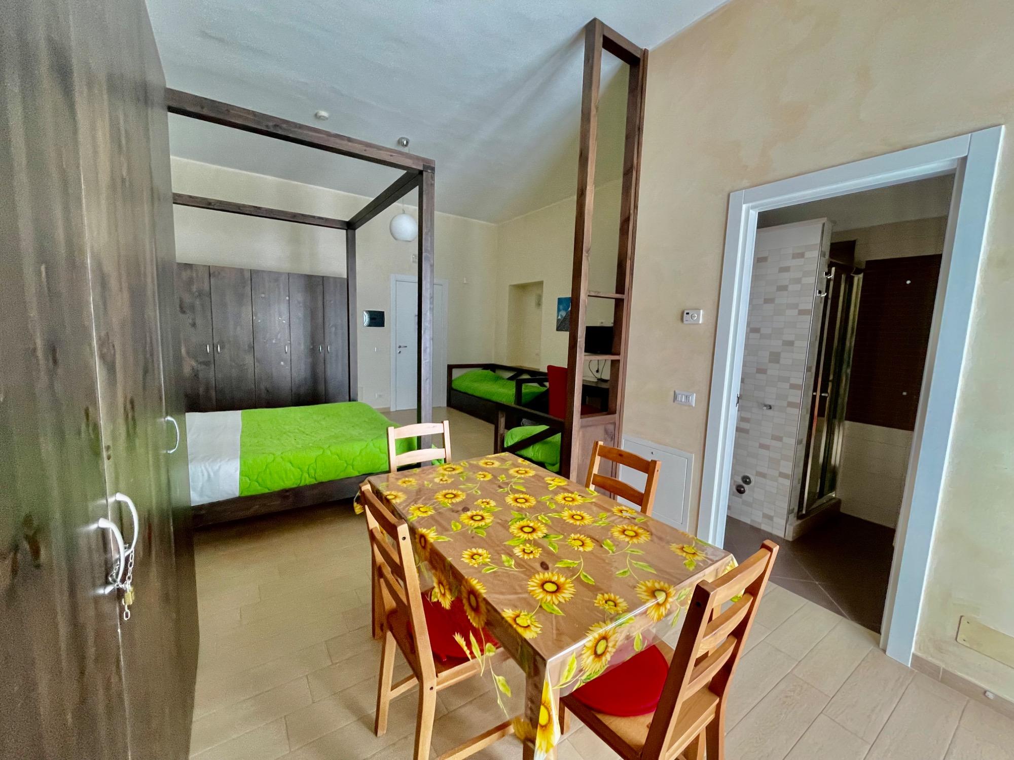 La nostra camera tripla è perfetta per le famiglie, con un comodo letto matrimoniale e un letto singolo. Dispone di un ampio terrazzo ideale per il relax e di un grande bagno con doccia, accessibile anche alle persone con difficoltà motorie. Inoltre, troverete una scrivania, un armadio, un frigorifero e un sistema di riscaldamento e aria condizionata indipendenti.