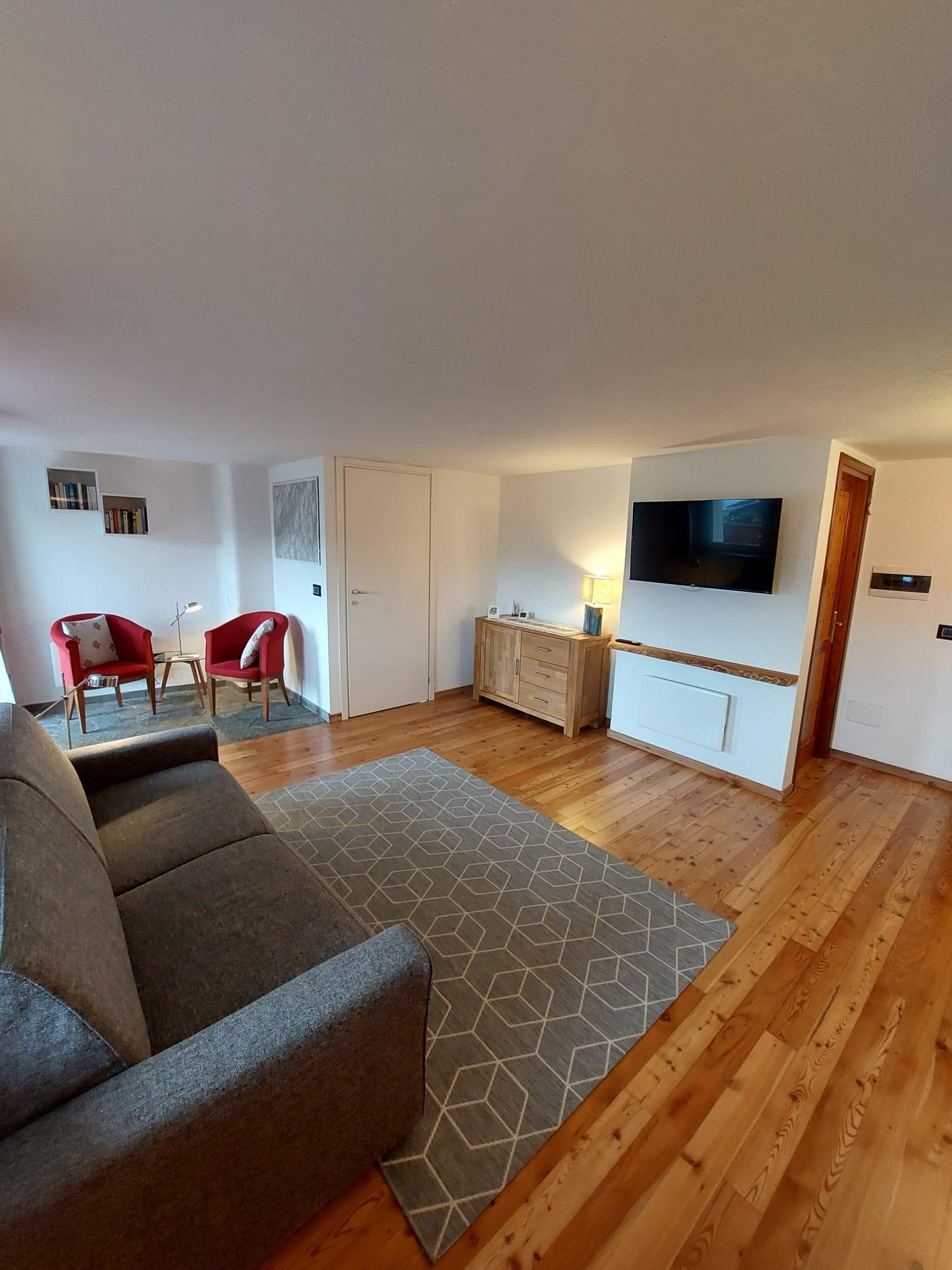 L'appartamento gode di una splendida vista panoramica a 180° sulle Alpi Graie.
