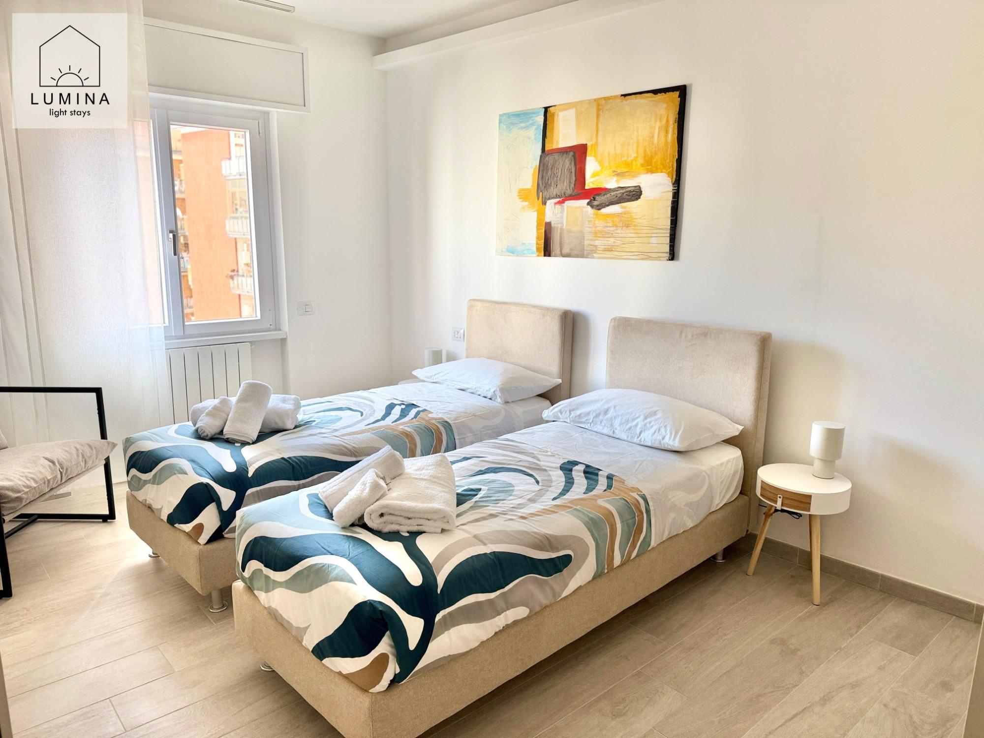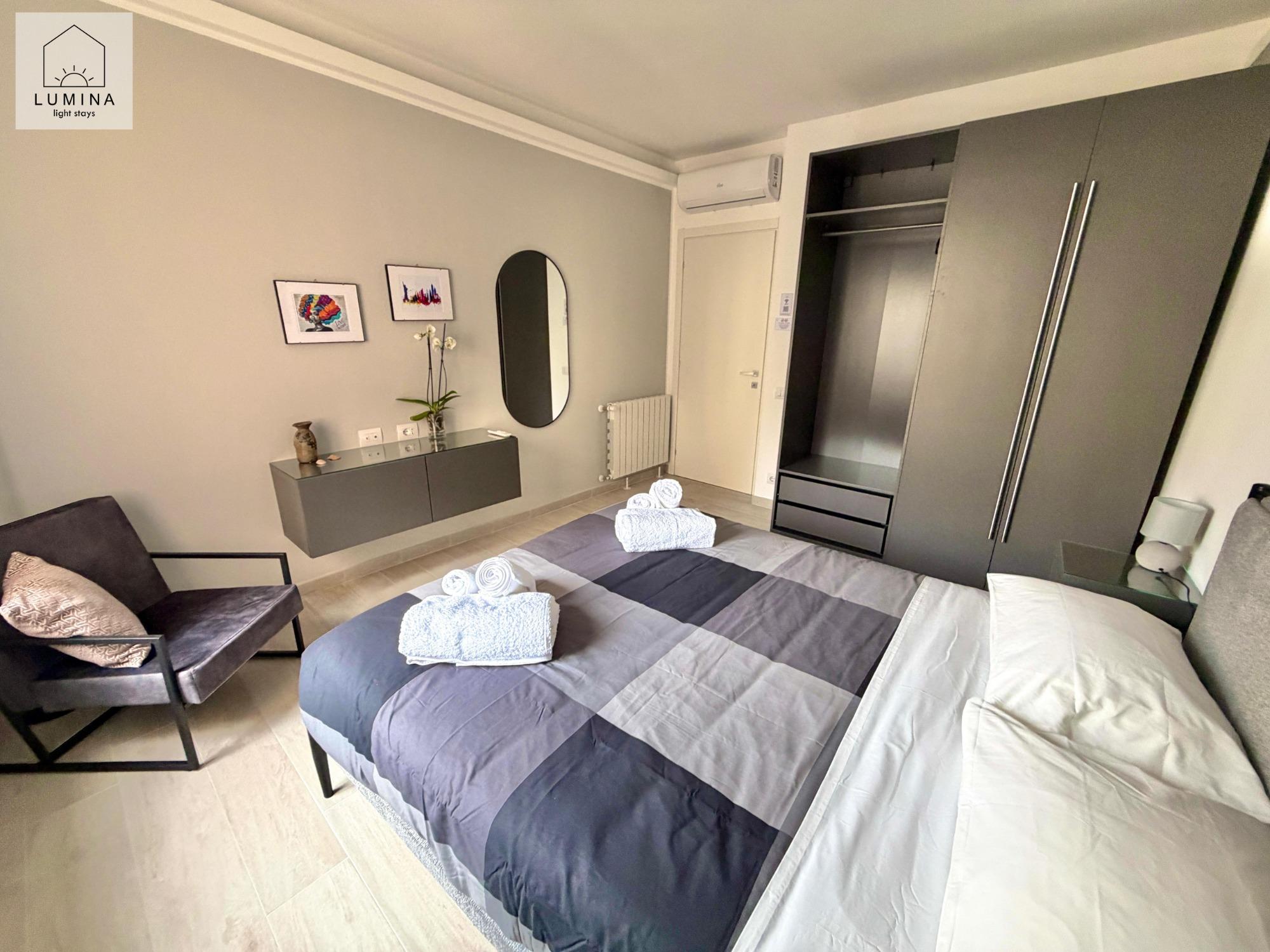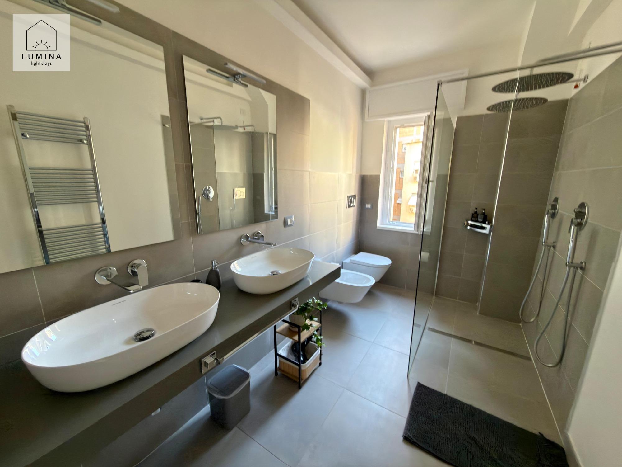 Lumina – Light Stays è un ampio appartamento di 95 metri quadrati appena ristrutturato, pensato per offrire un soggiorno elegante e rilassante nel cuore di Roma. Gli ambienti luminosi, le linee essenziali e lo stile minimal contemporaneo creano un’atmosfera accogliente e raffinata, ideale sia per soggiorni turistici sia per permanenze più lunghe. La posizione centrale e ben collegata consente di raggiungere facilmente le principali attrazioni della città, con mezzi pubblici, servizi e negozi comodamente nelle vicinanze.