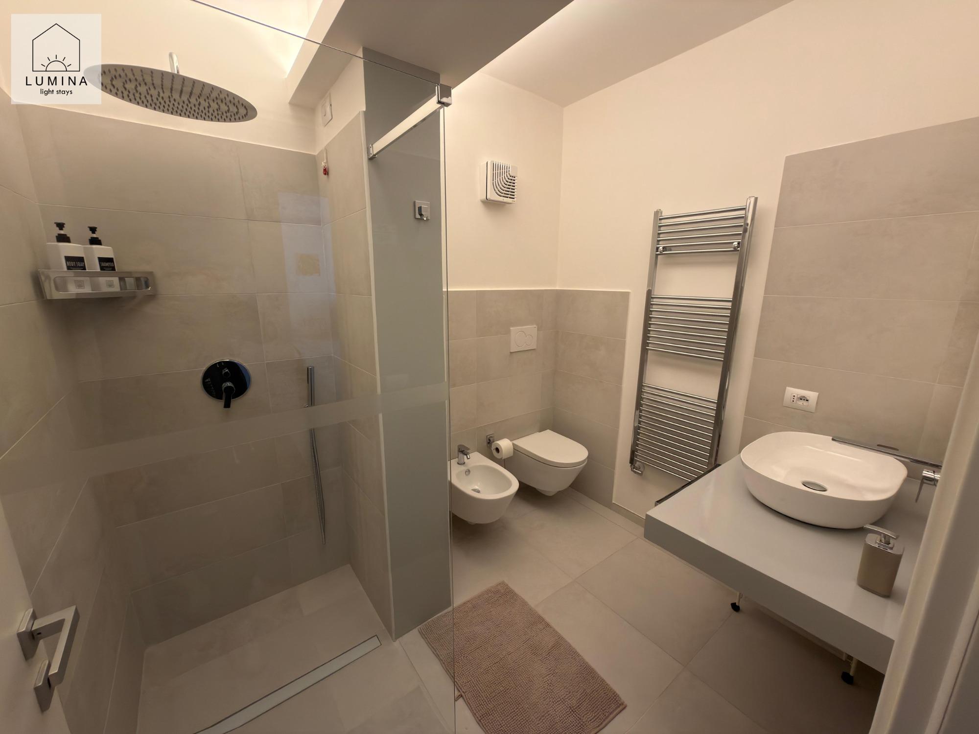Ogni ambiente è climatizzato e servito da connessione Wi-Fi veloce in fibra ottica, disponibile anche tramite rete cablata. Completa l’appartamento un comodo vano lavanderia con lavatrice, stendino, asse e ferro da stiro. Grande attenzione è dedicata anche alla sicurezza, con rilevatori di fumo, gas e CO? installati secondo normativa e presenza di estintore.