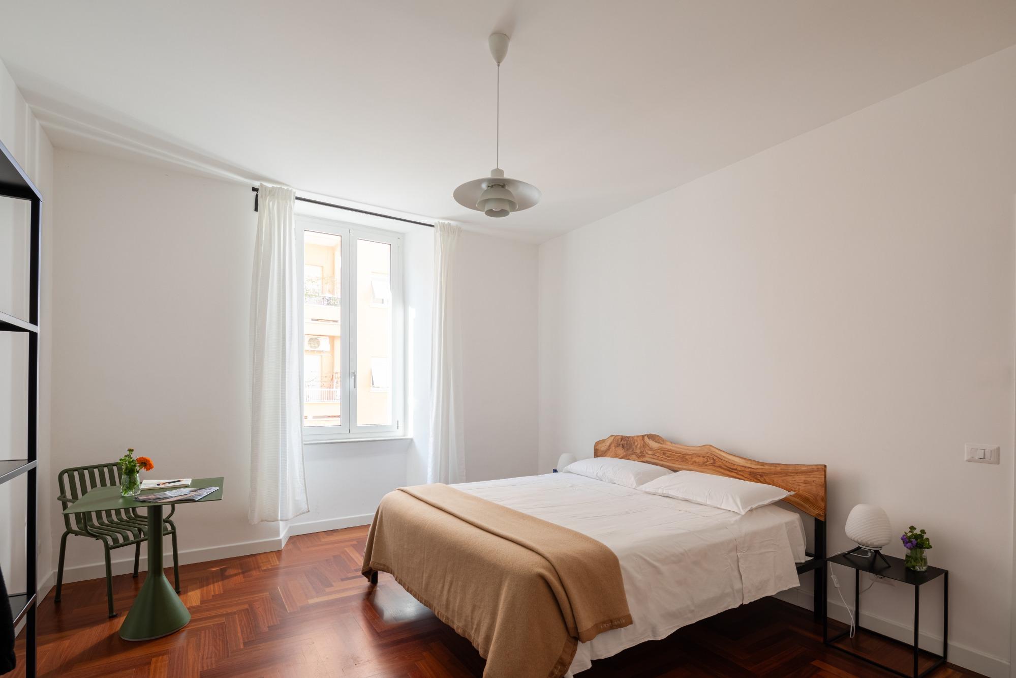 Lunaria Home Rome si contraddistingue per l'eccellenza e la professionalità dei suoi servizi, nonché per la sua posizione centrale nel cuore di Roma. L'abitazione è arredata con mobili unici, caratterizzati da un design raffinato e interamente made in Italy. Il letto è realizzato artigianalmente da un maestro romano, mentre la testiera è creata a mano utilizzando un pregiato legno di ulivo. Il materasso, il topper e i cuscini provengono dalle migliori marche presenti sul mercato, solitamente riservate alle dimore più eleganti e agli hotel di prestigio. Le dimensioni del letto sono di 180x200 cm, garantendo un comfort da re. Il tavolo e la sedia sono pezzi unici dal design esclusivo. Gli eleganti lampadari, anch'essi di design, sono realizzati interamente in Italia.