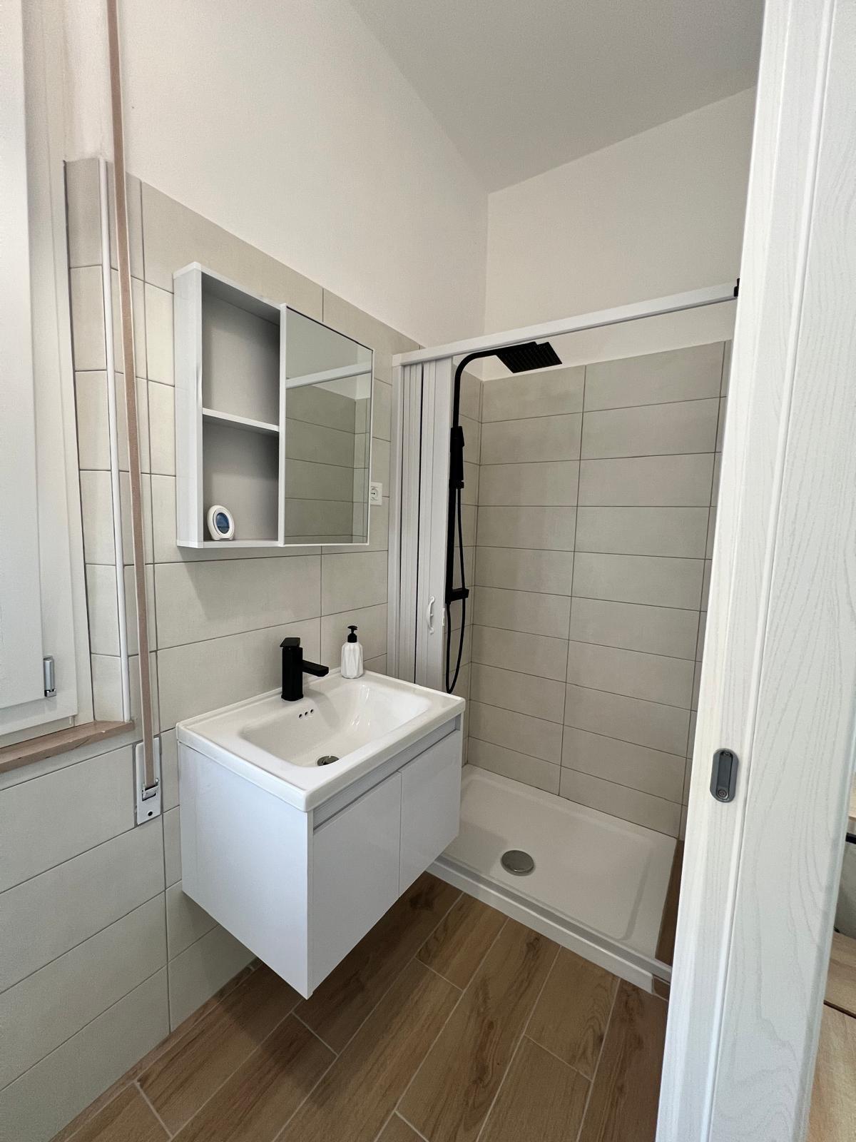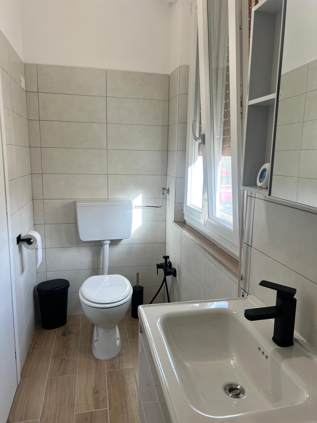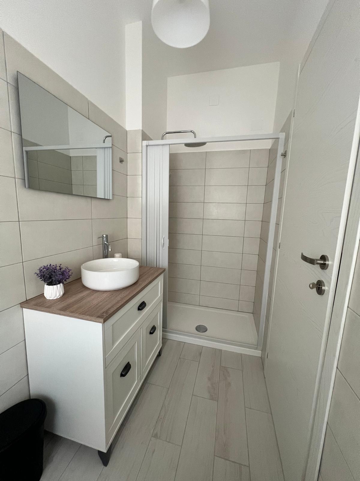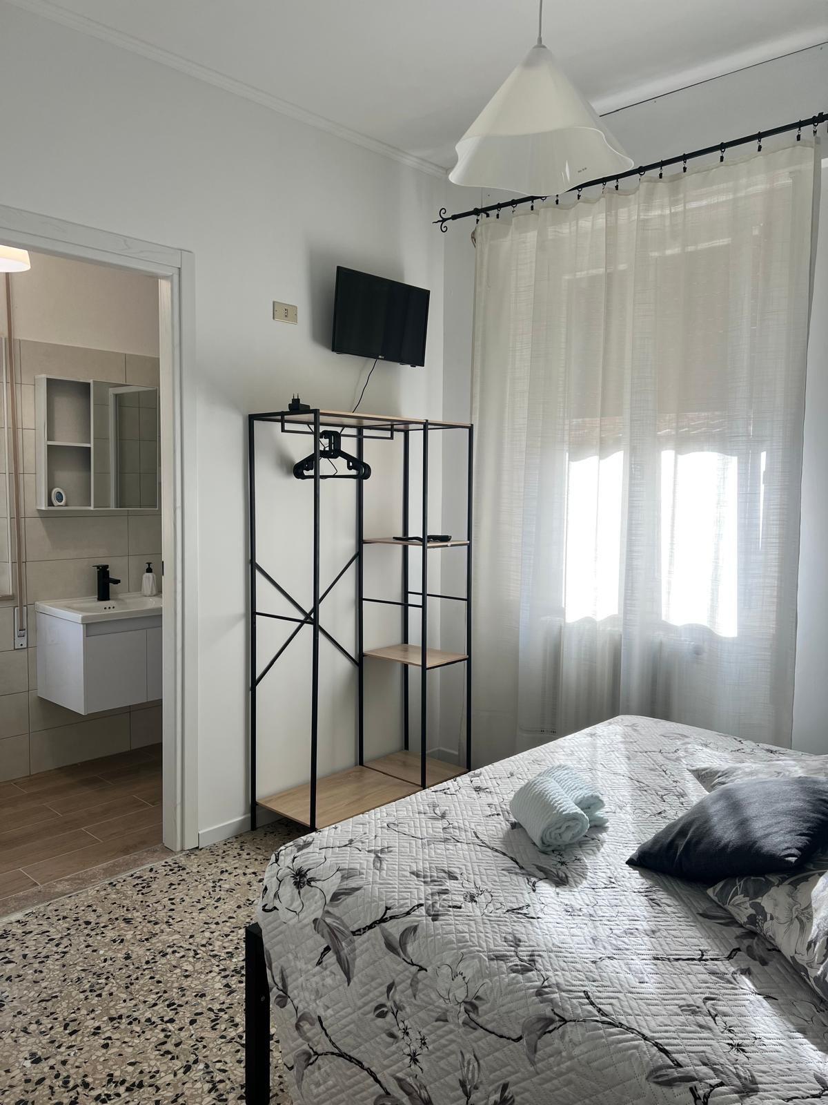 Camera matrimoniale molto luminosa, rella appendiabiti, TV bagno con doccia.